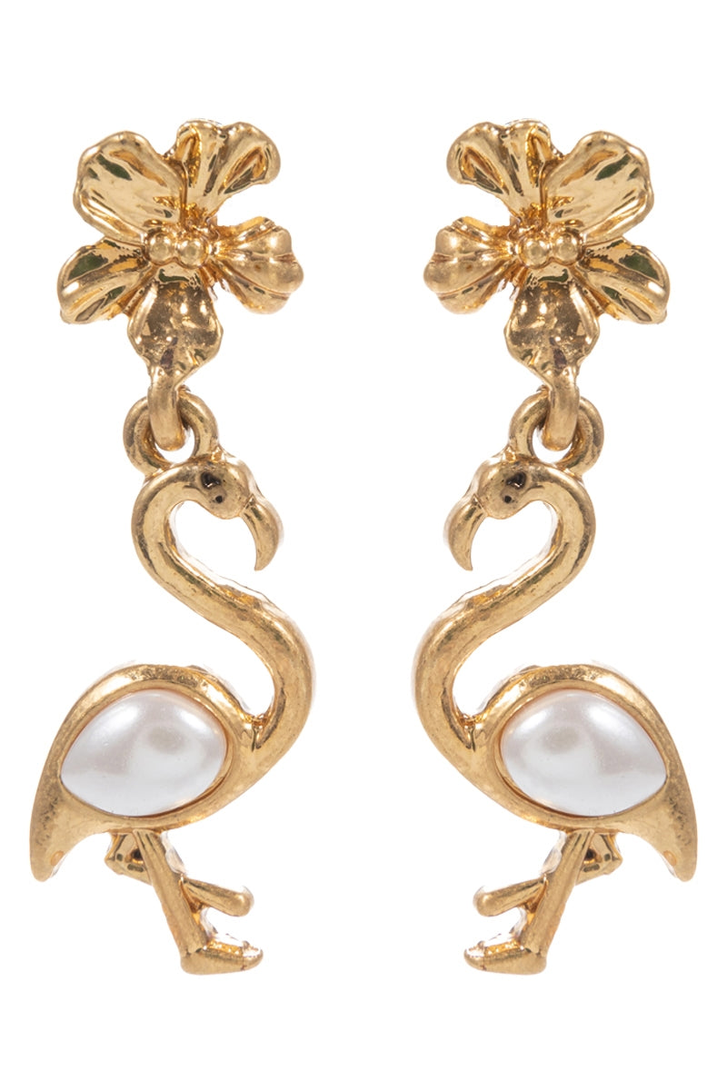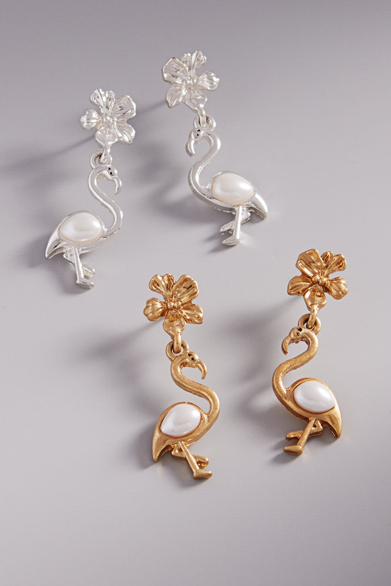 Flamingo Pearl Two Drop Titanium Post Earrings