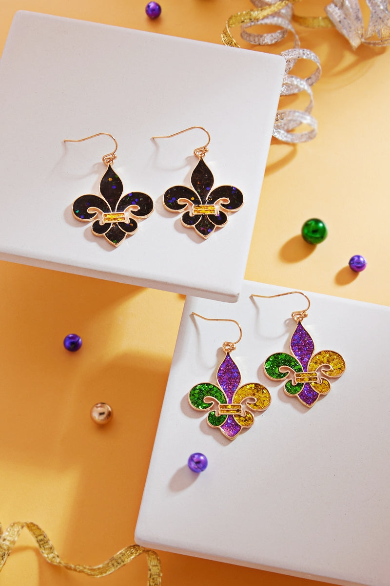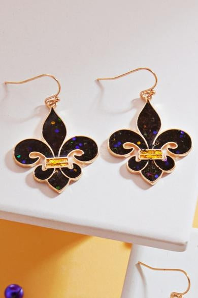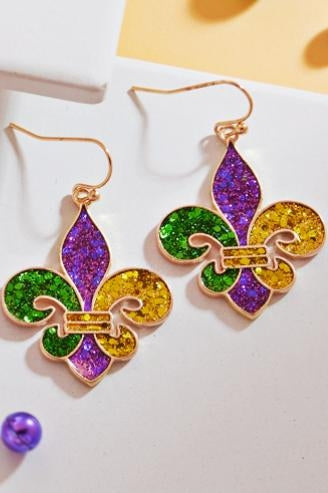 Fleur De Lis Glitter Mardi Gras Hook Earrings