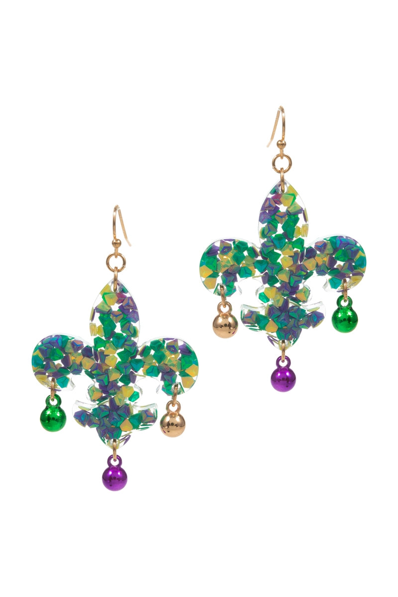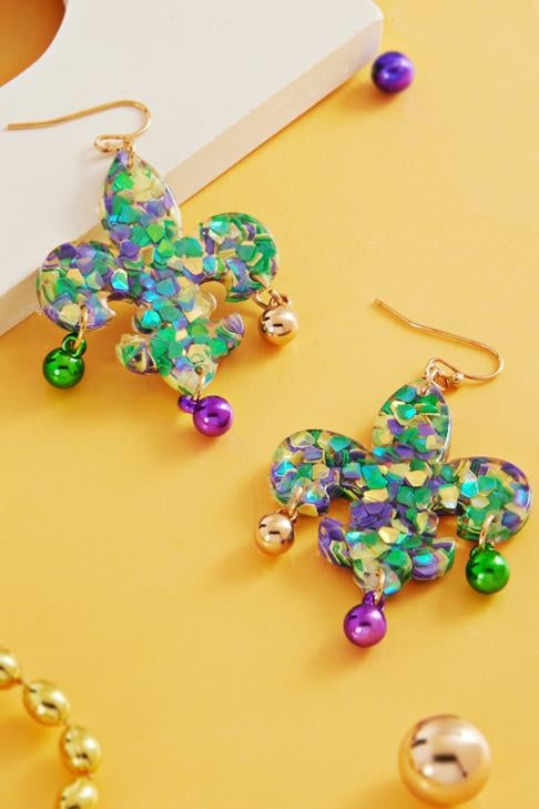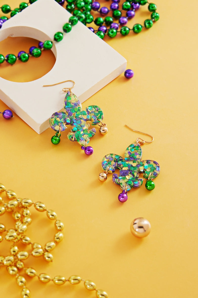 Fleur De Lis Shaped Mardi Gras Hook Earrings