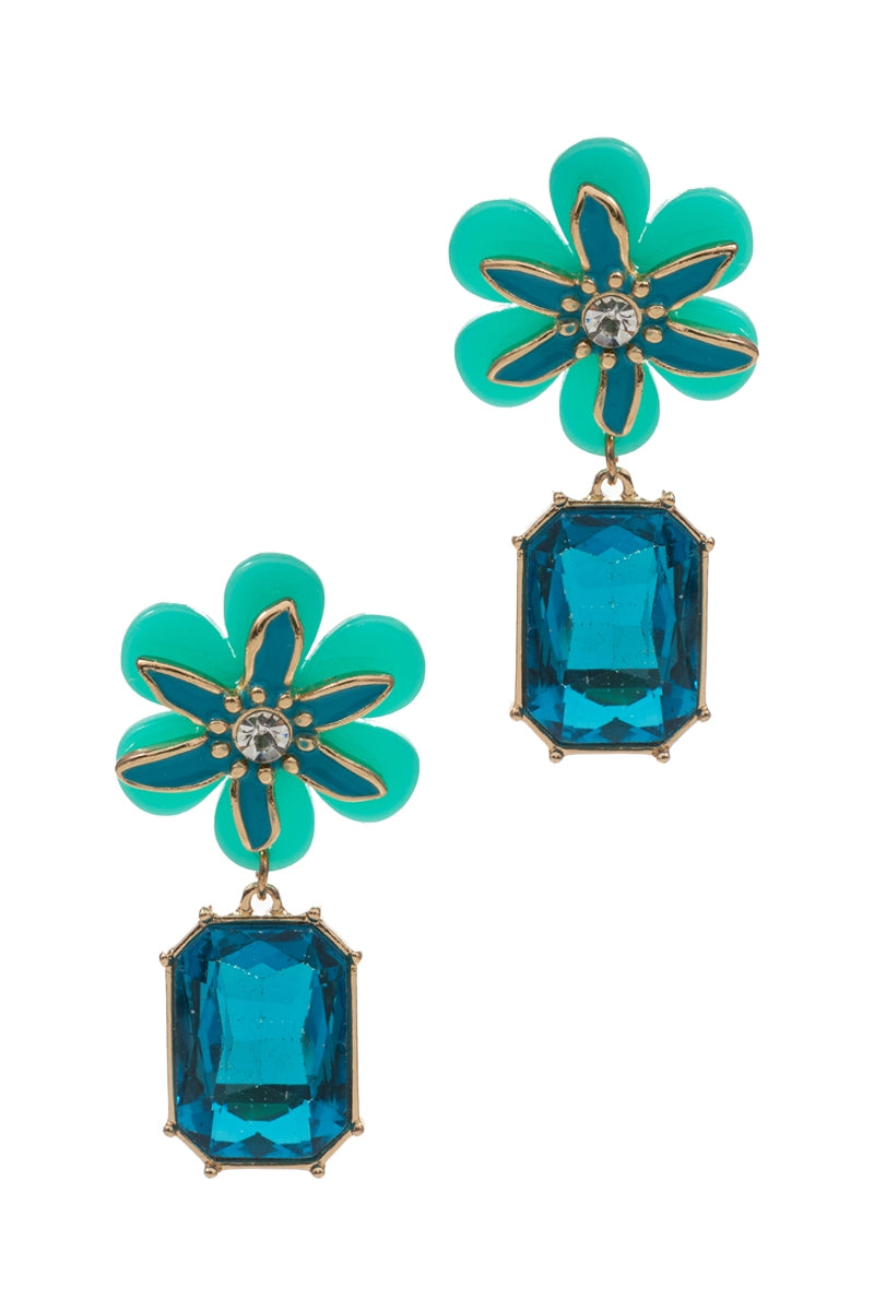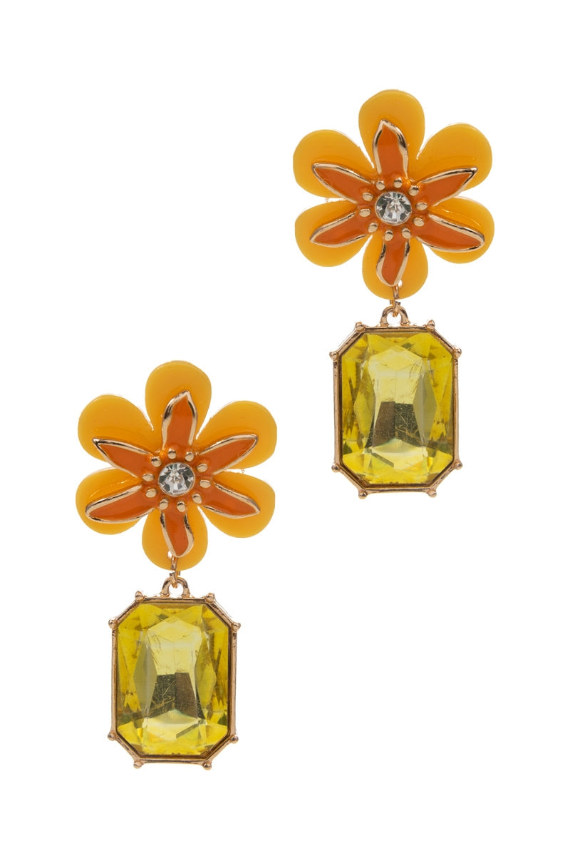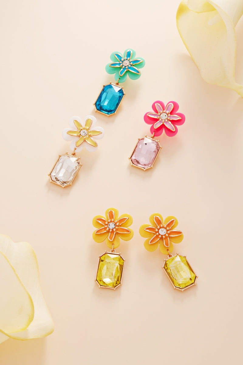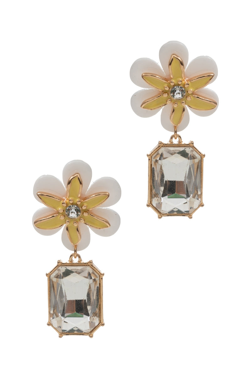 Flower Acetate Enamel And Rhinestone Post Earrings