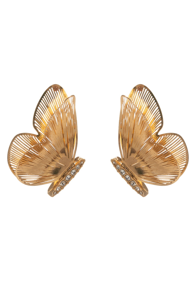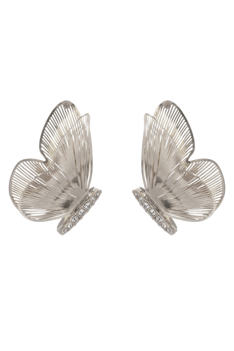 Flower Butterfly Metal W Rhinestone Post Earrings