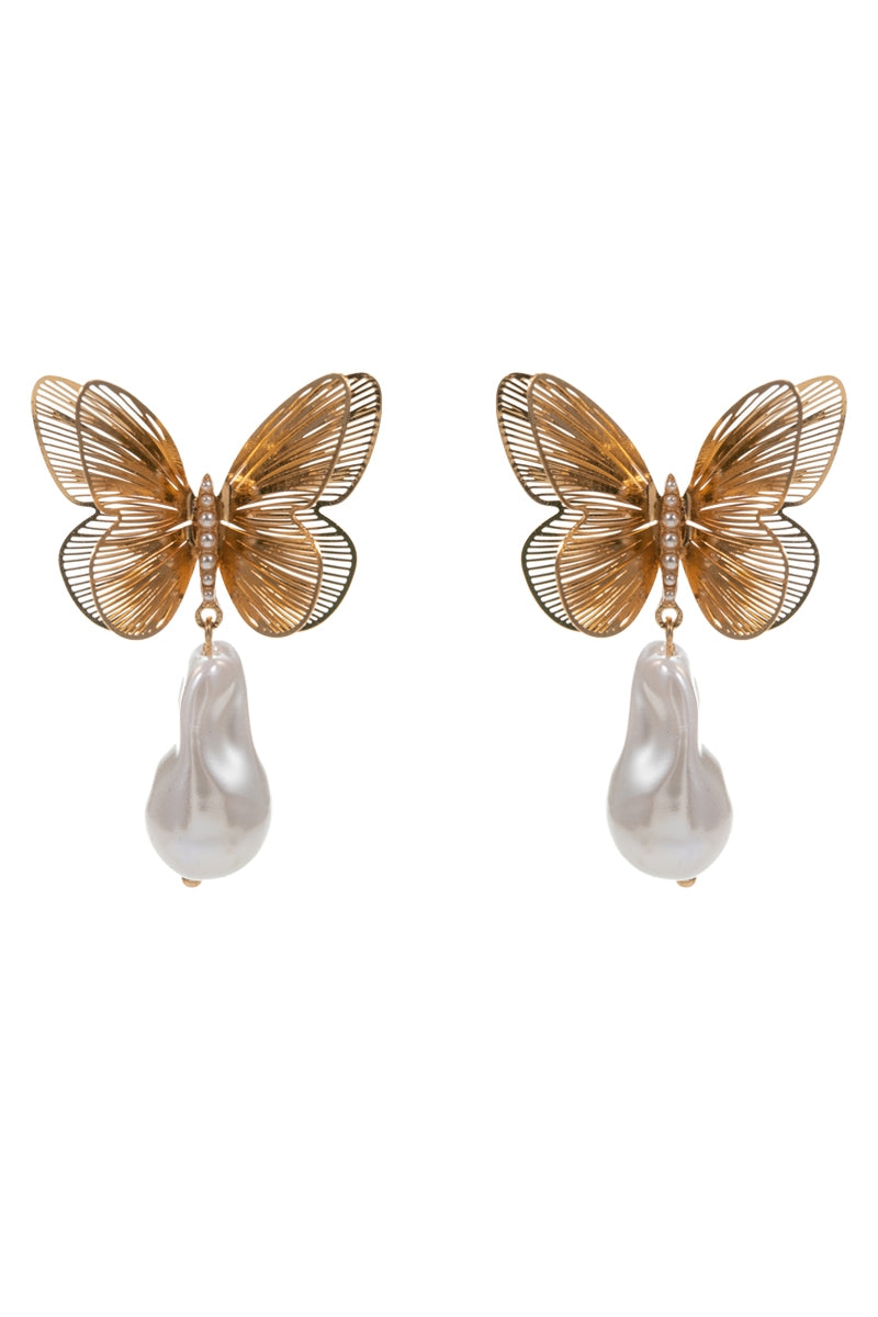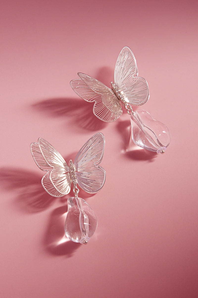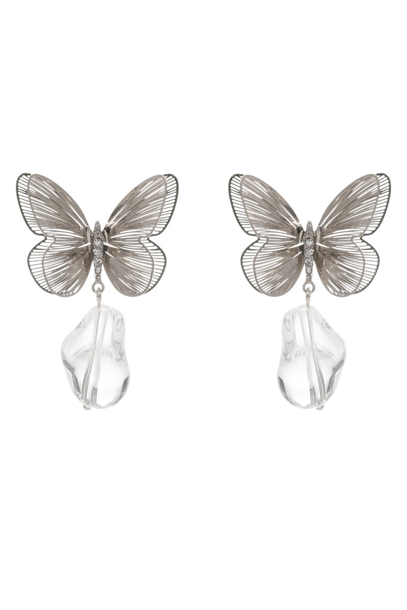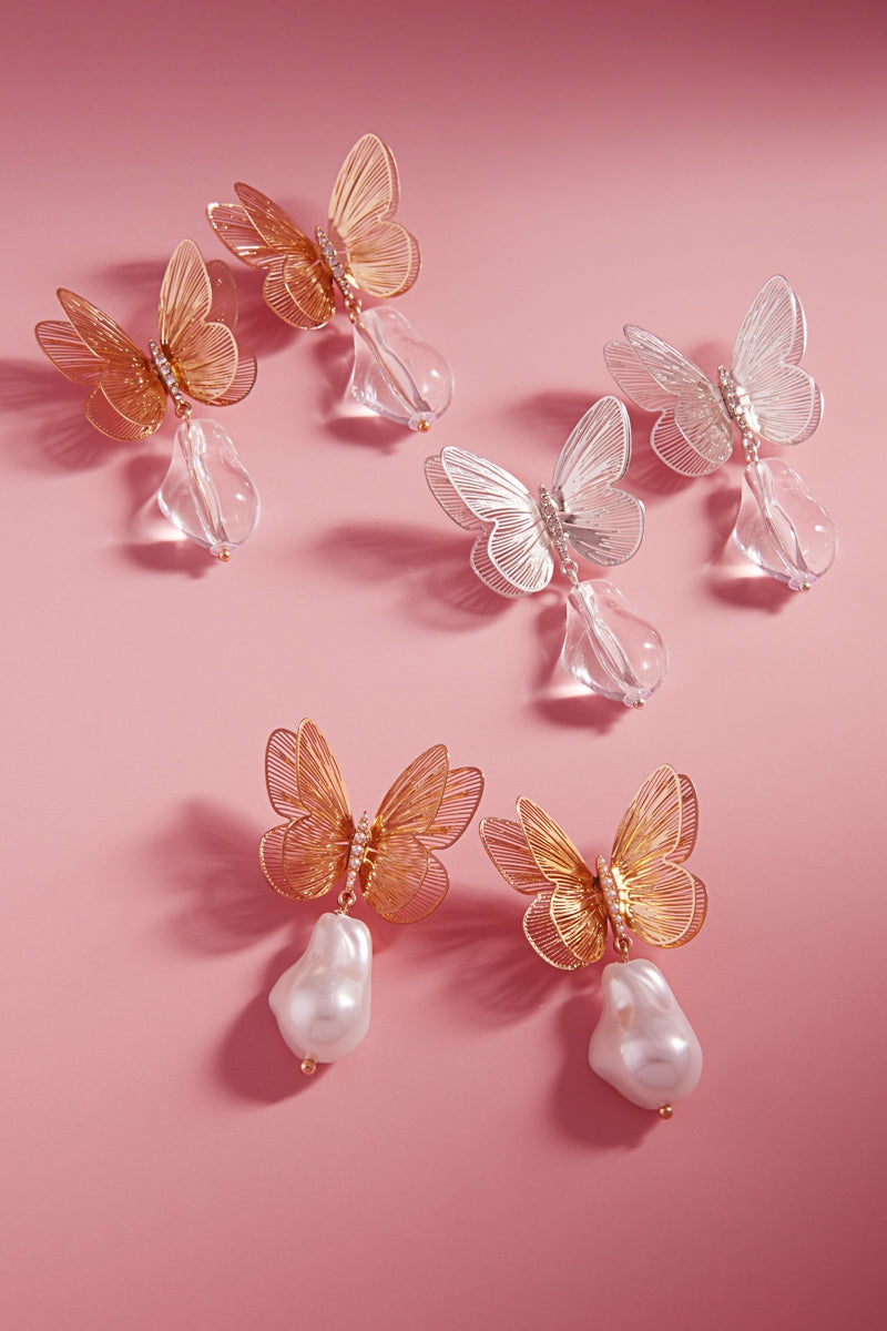 Flower Butterfly Metal W Teardrop Post Earrings
