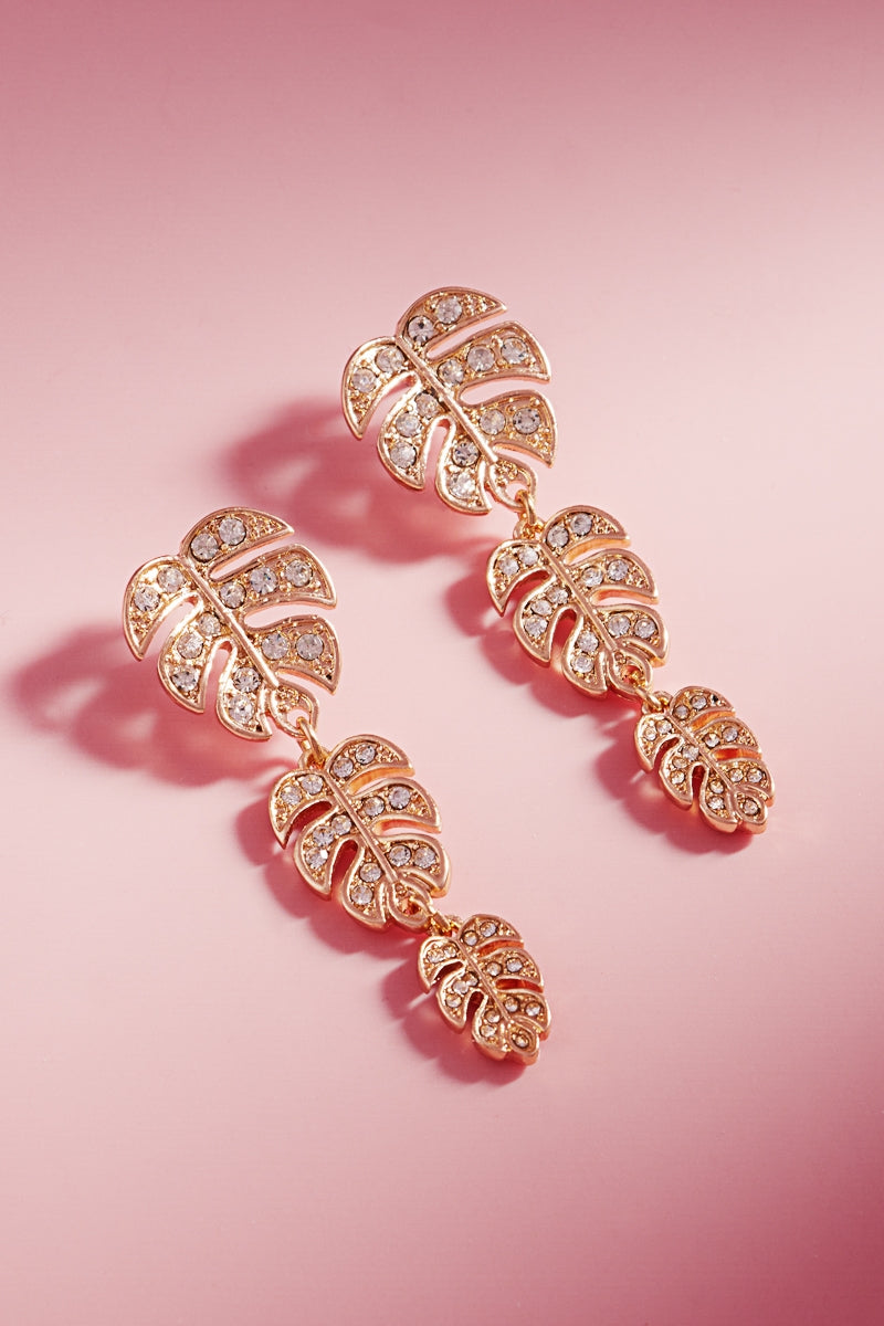 Flower Monstera Stone Pave Post Earrings