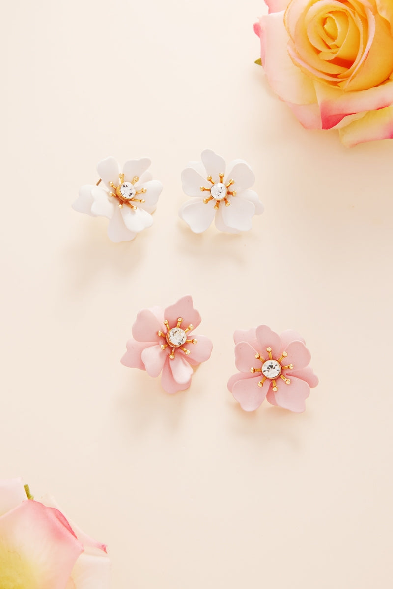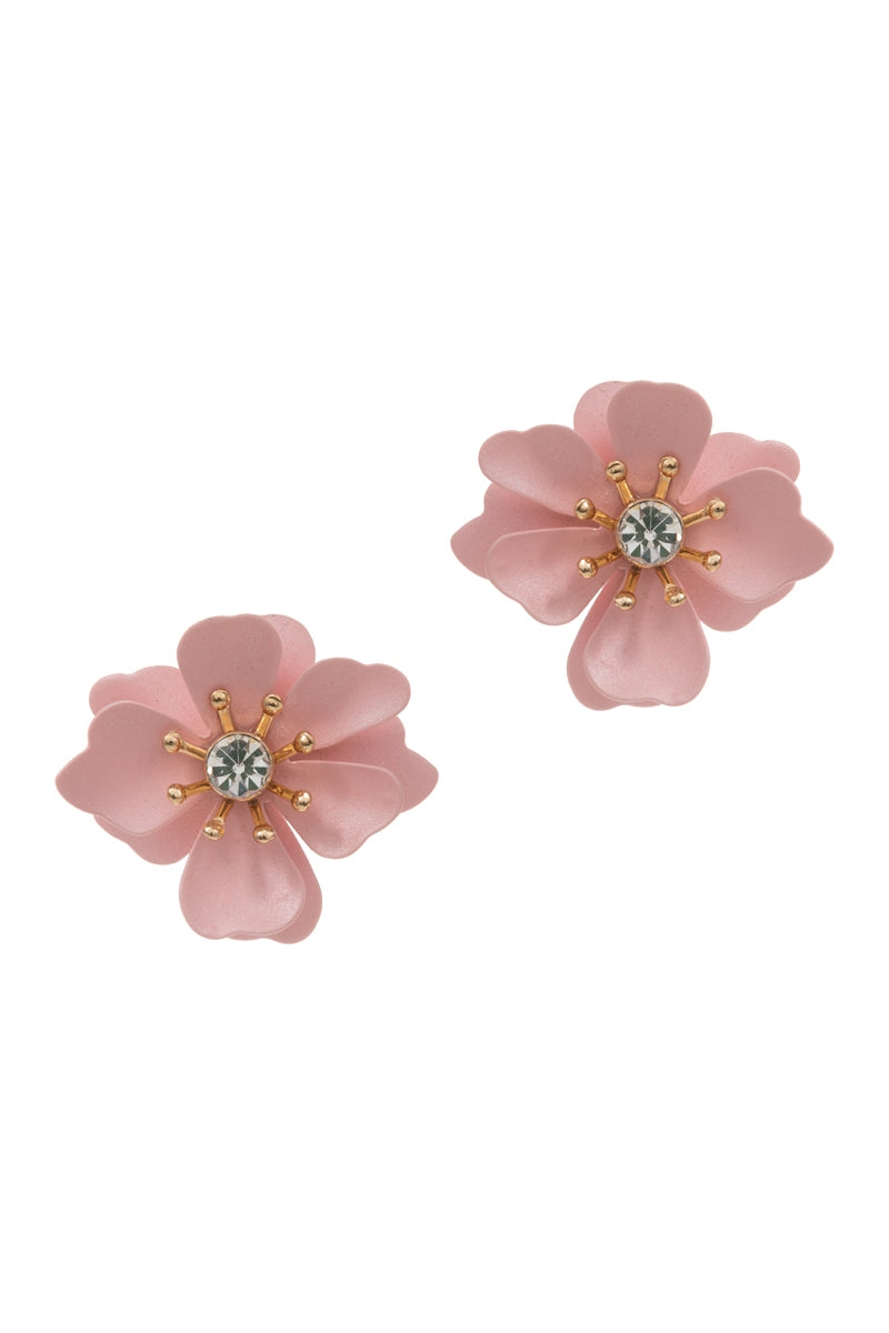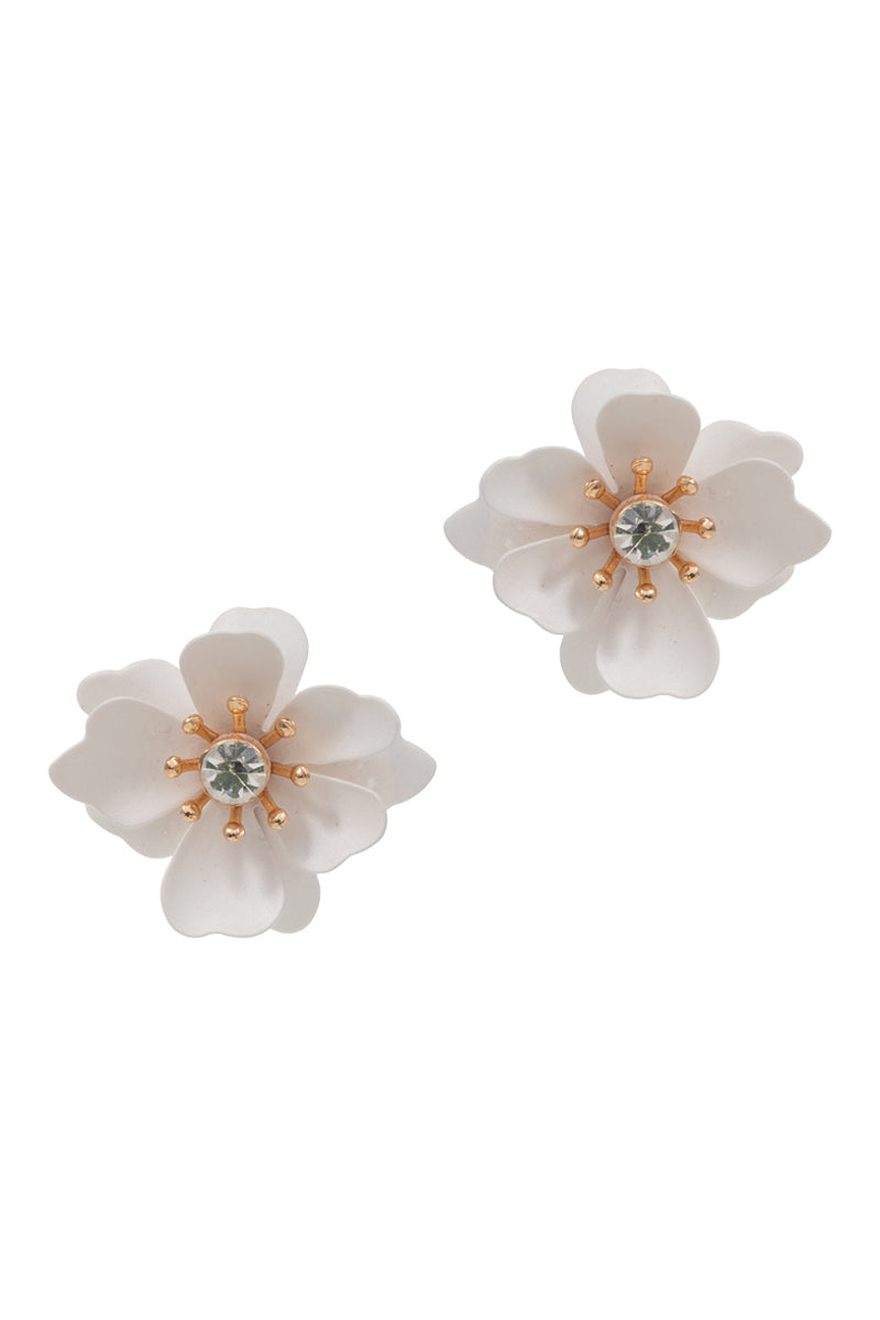 Flower Pearlized Coating Rhine Stone Post Earrings