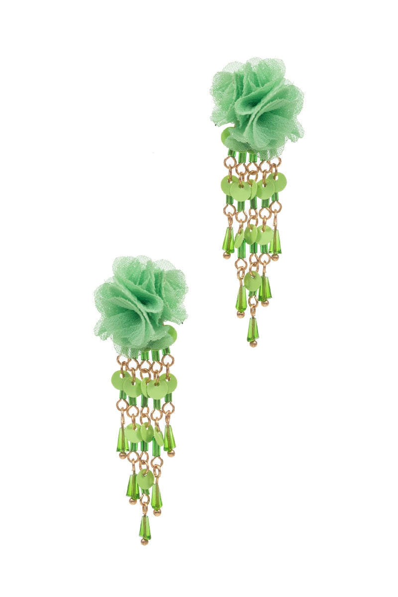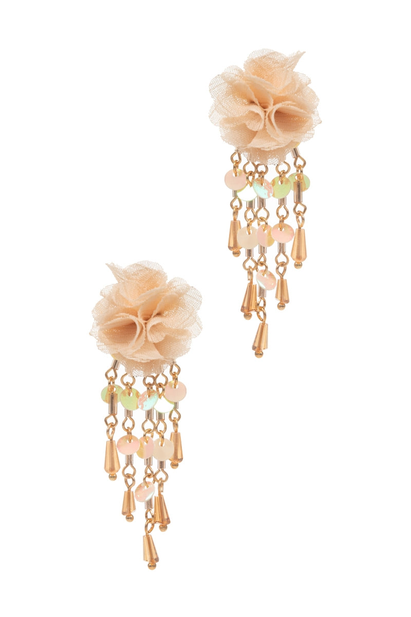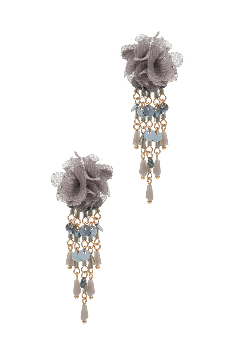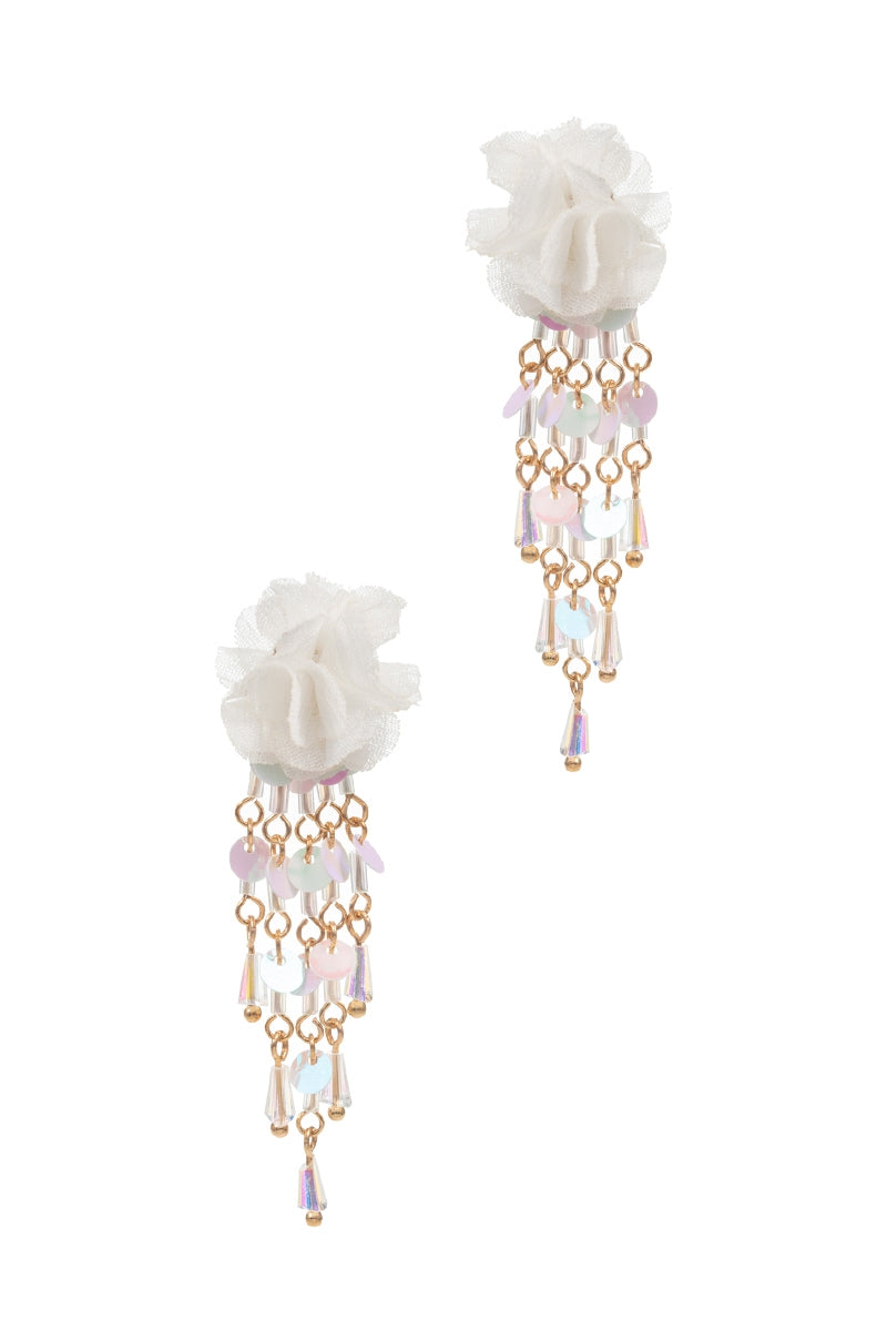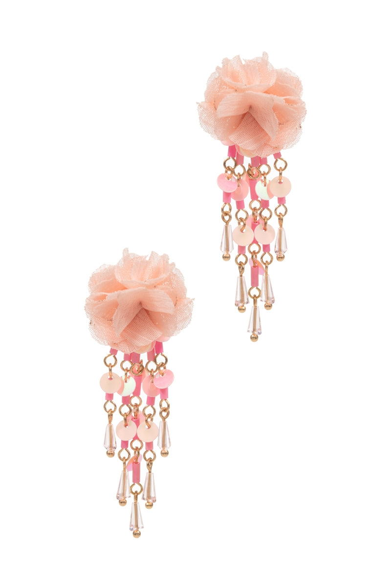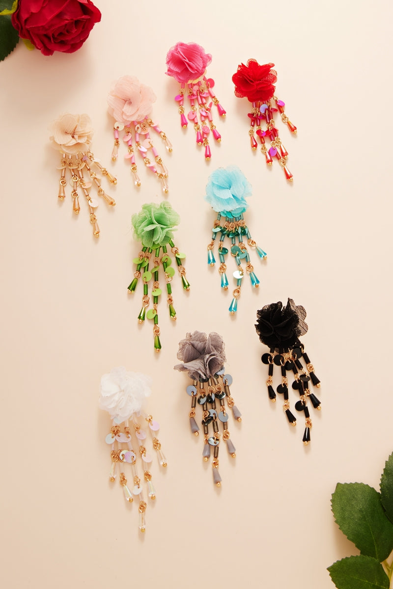 Flower Pompom Sequin Glassbead Tassel Post Earrings