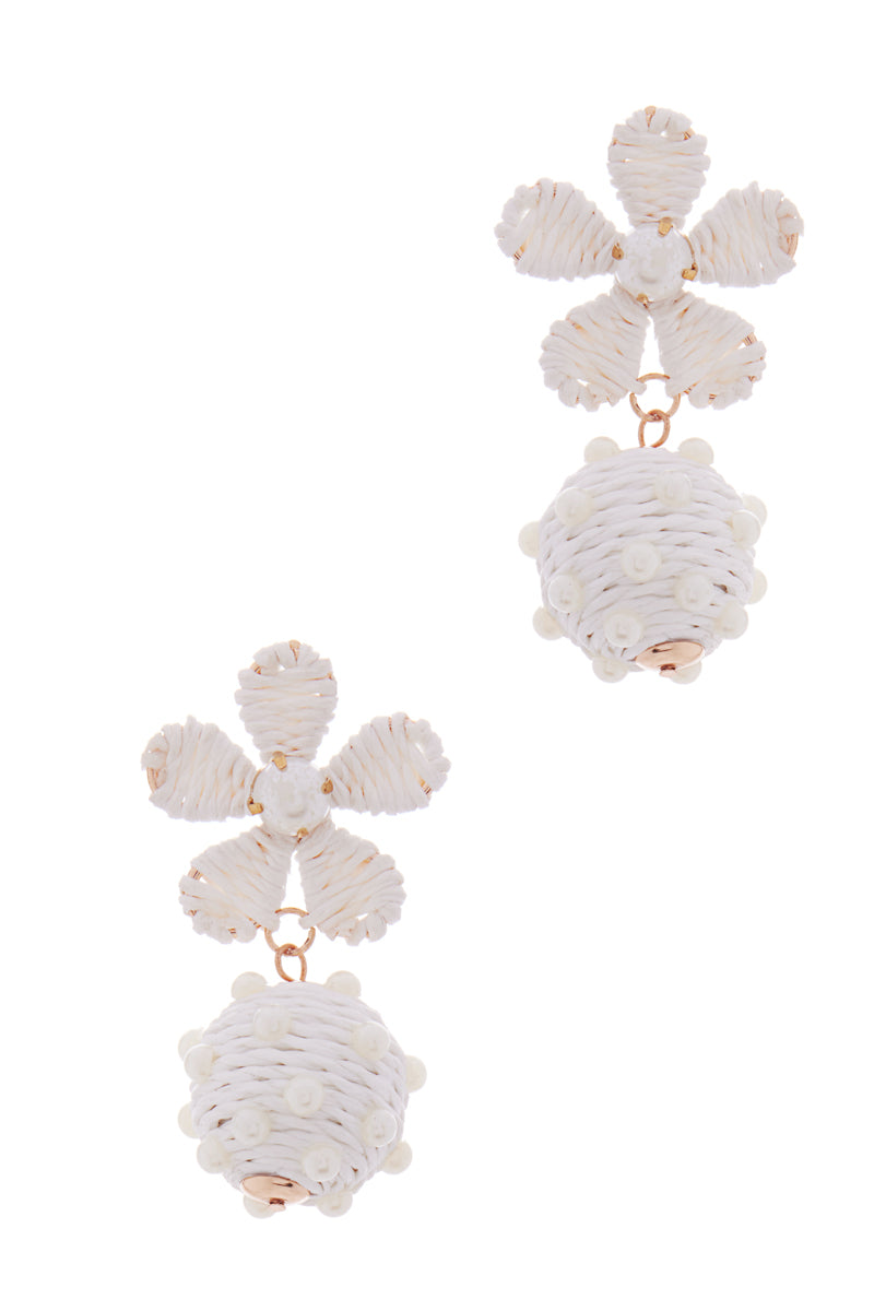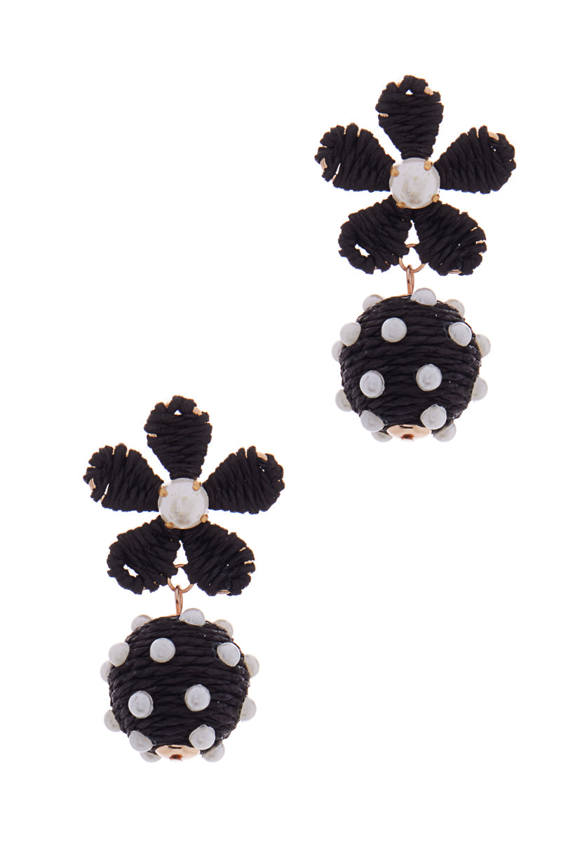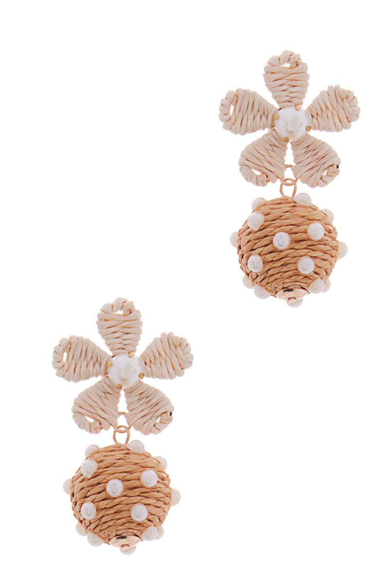 Flower Raffia Wrapped Ball Summer Post Earrings
