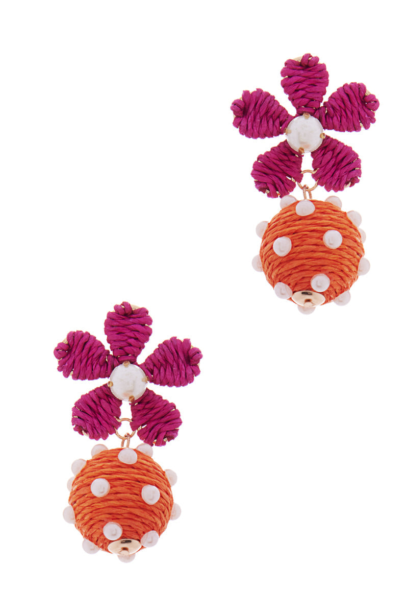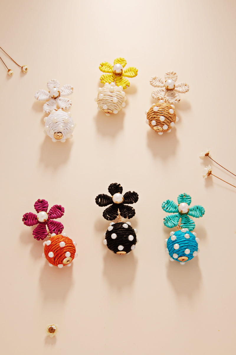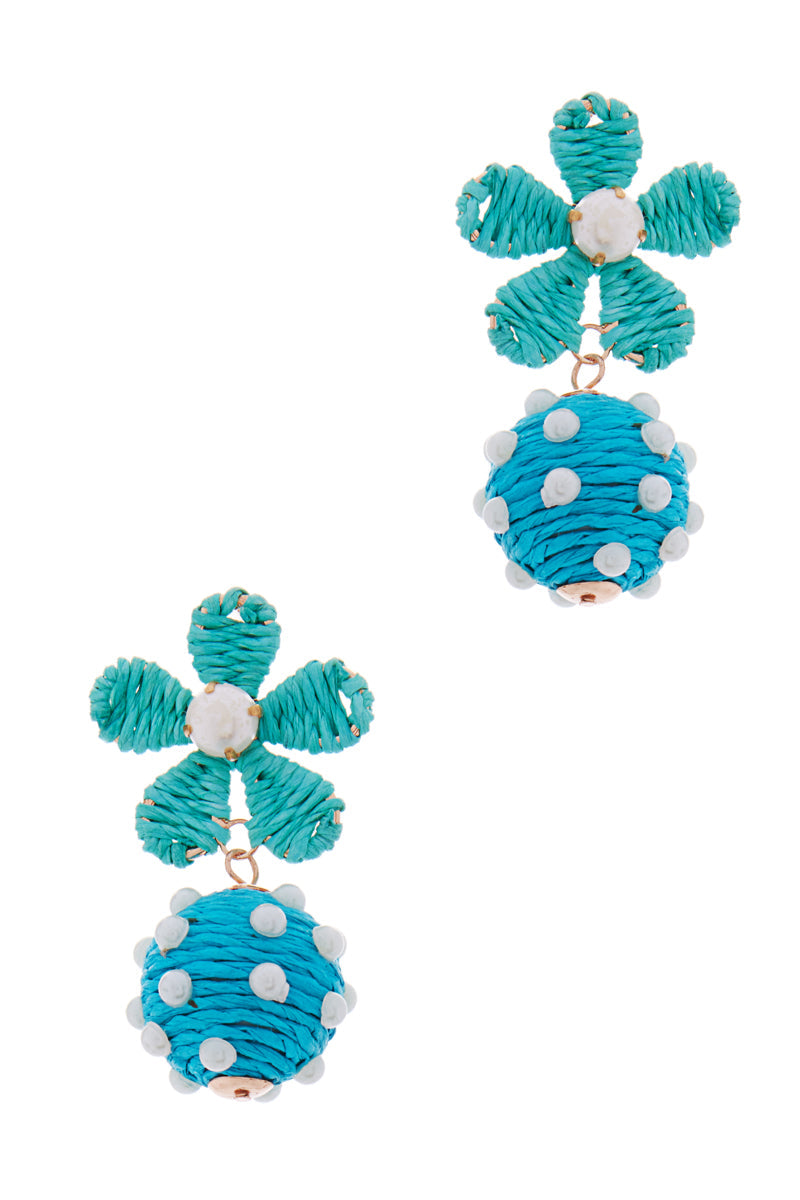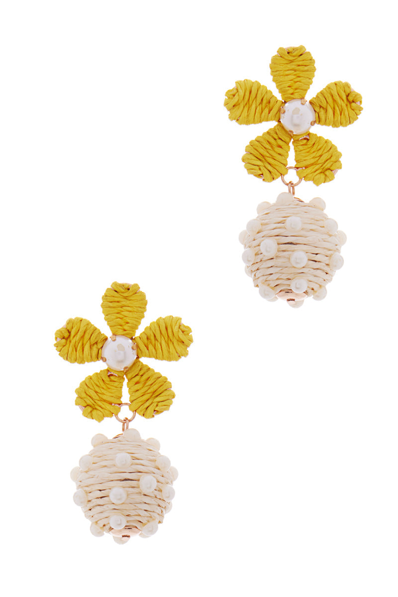 Flower Raffia Wrapped Ball Summer Post Earrings