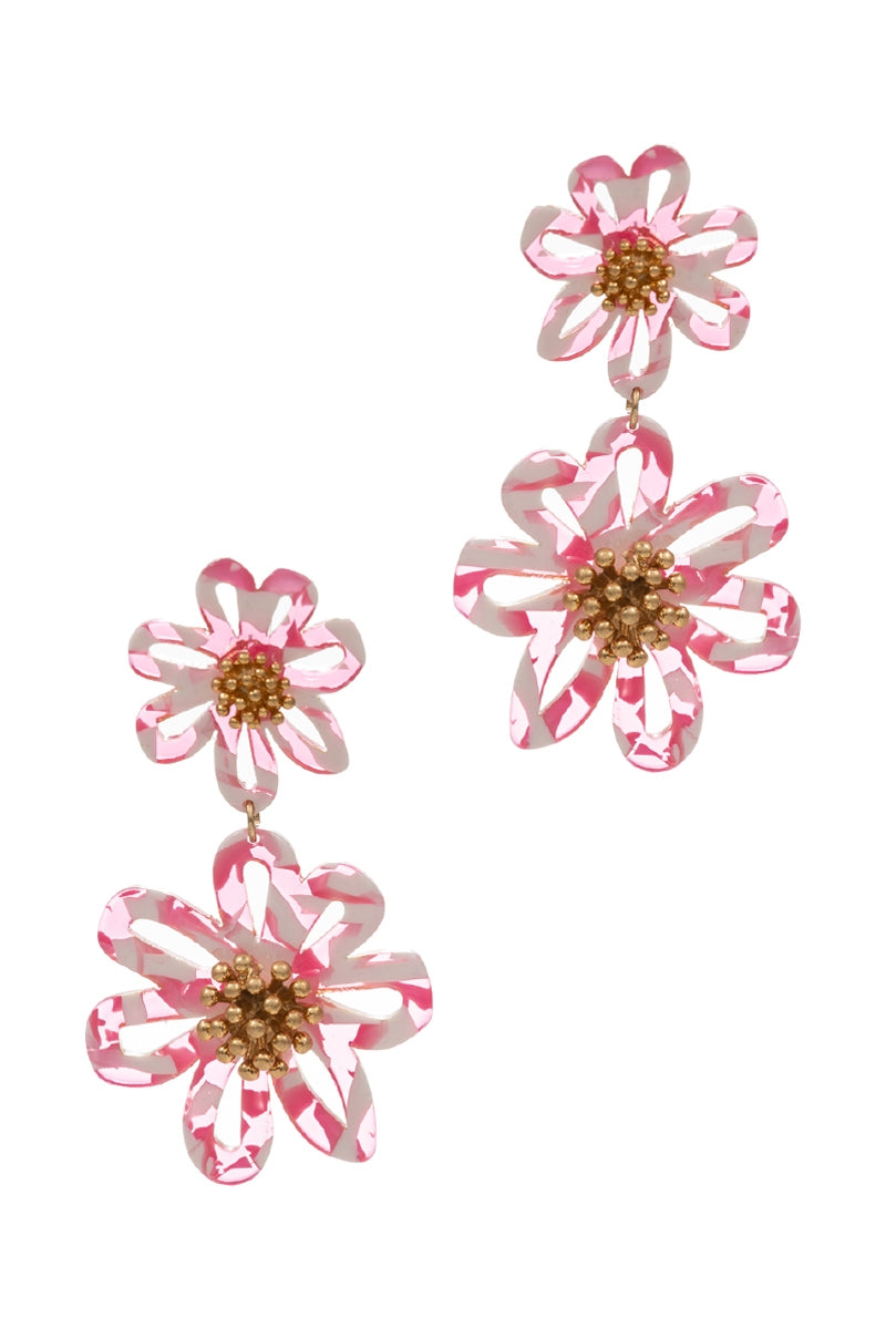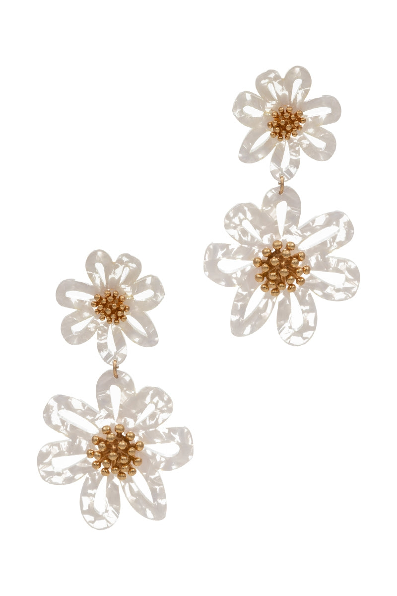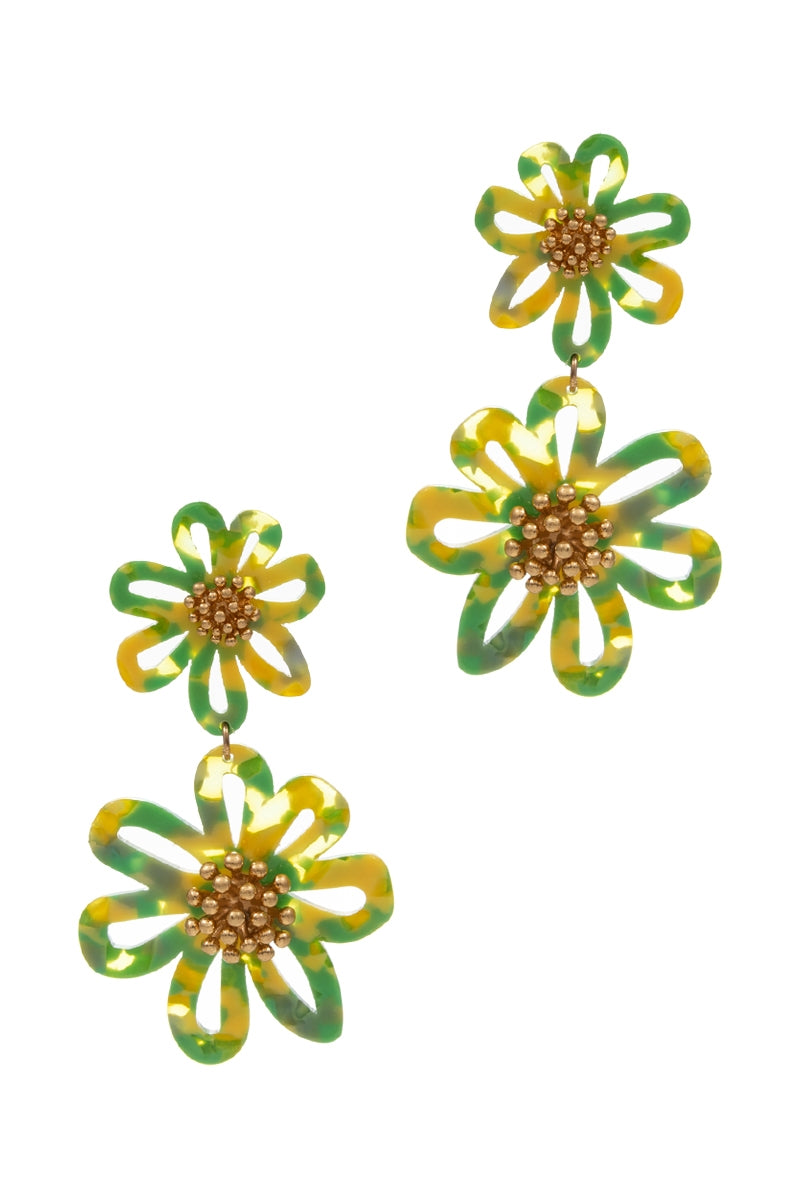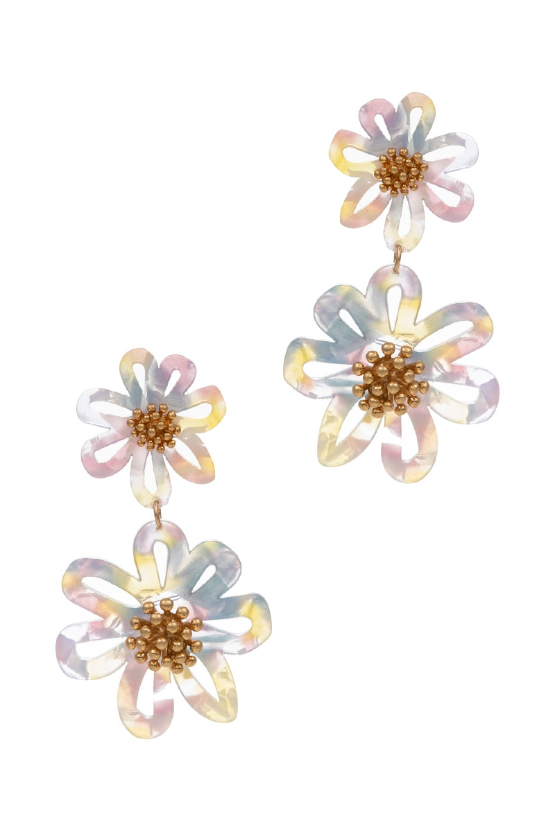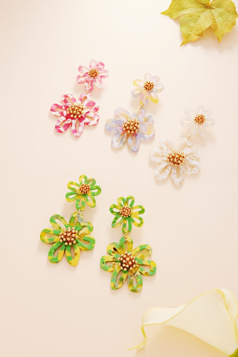 Flower Shaped 2Drop Acetate Post Earrings