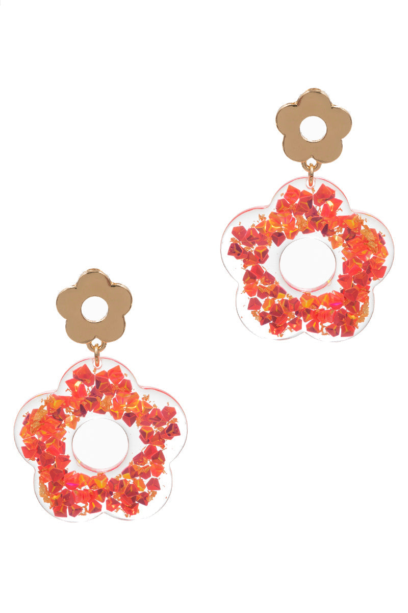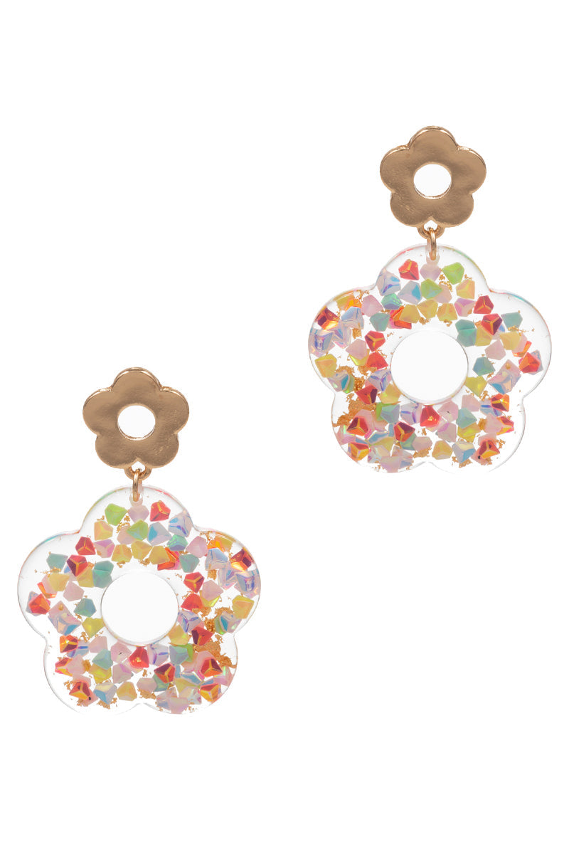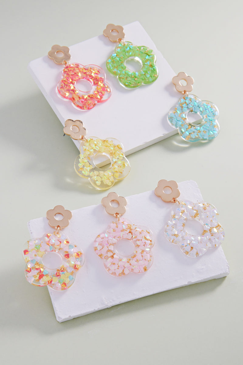 Flower Shaped Glitter Summer Post Earrings