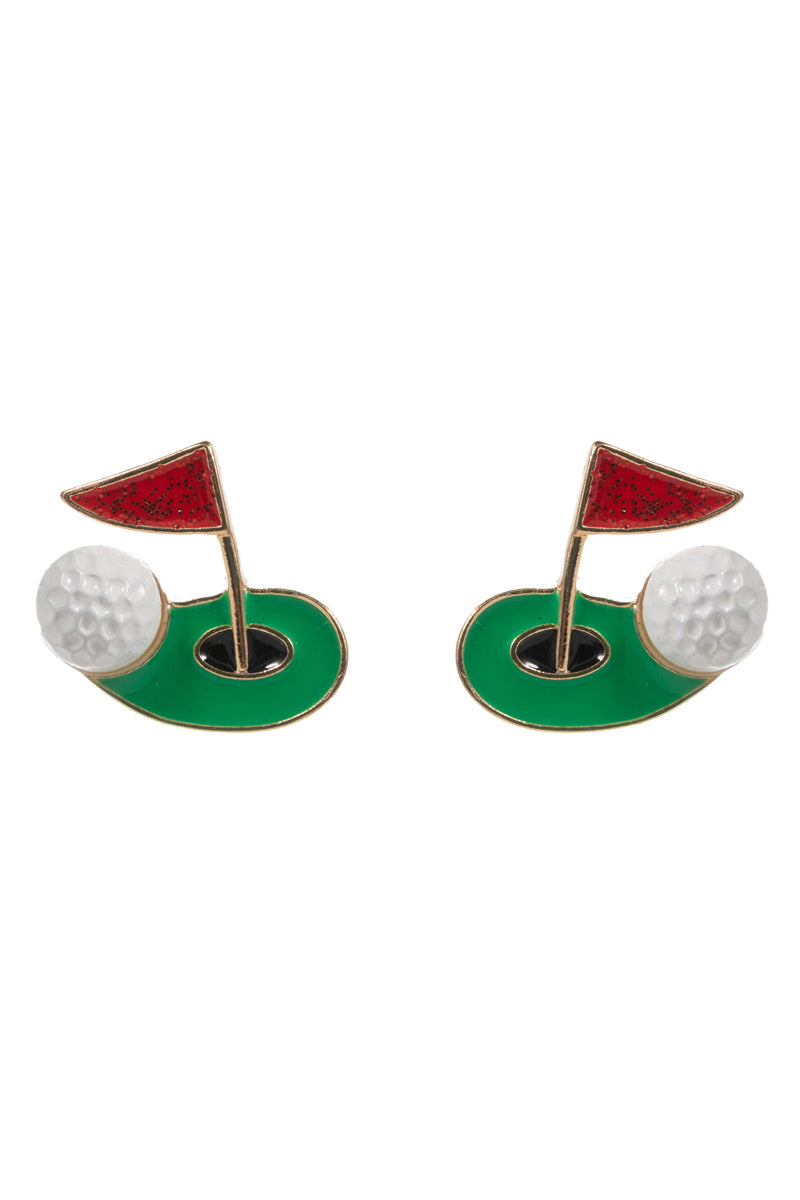 Game Day Golf Ball And Flag Enamel Post Earrings