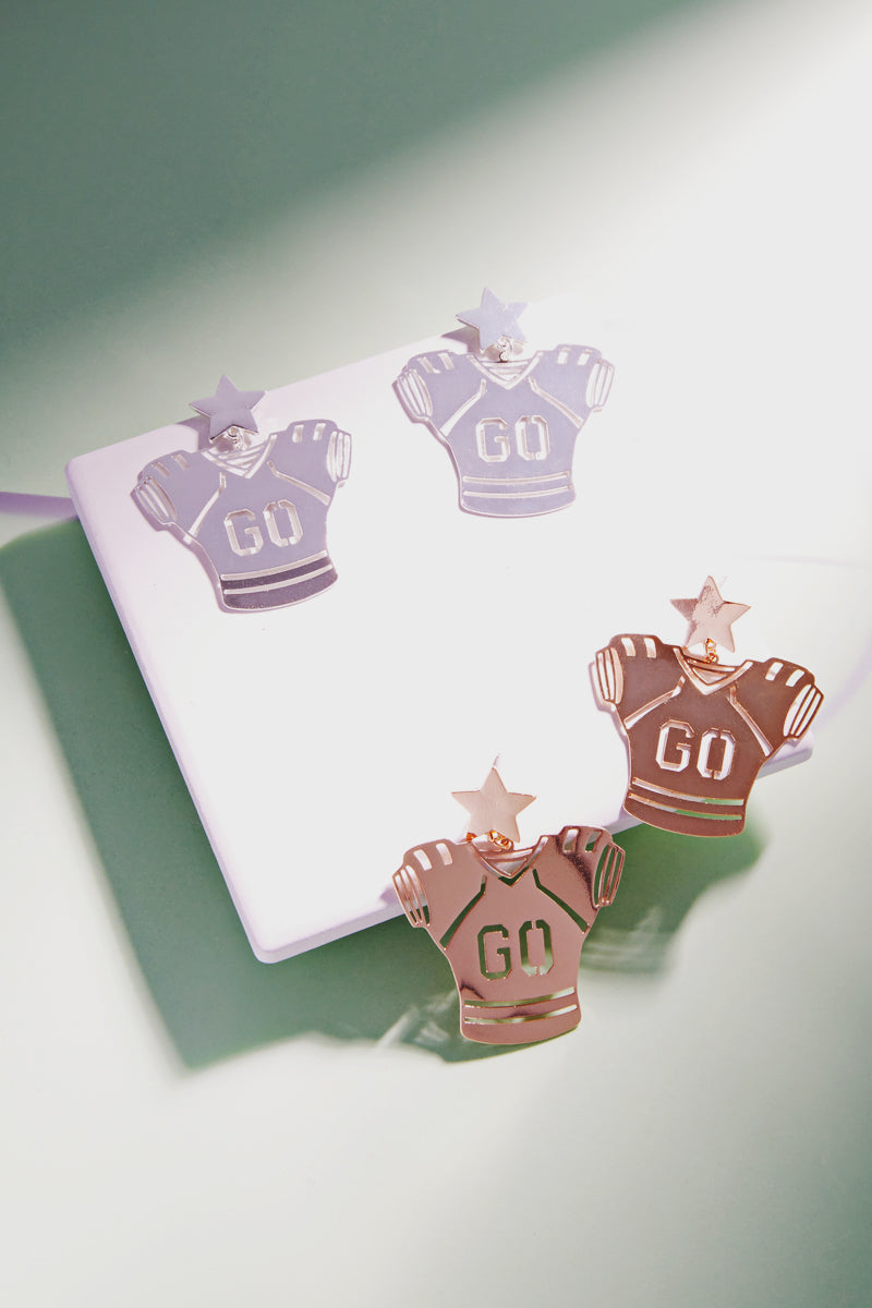Get game-day ready with our 1.18 inch brass football uniform shaped post earrings. Made from sturdy metal, these earrings make the perfect accessory for any football fan.