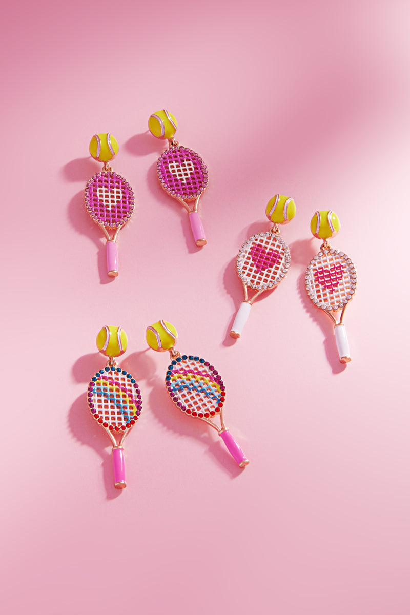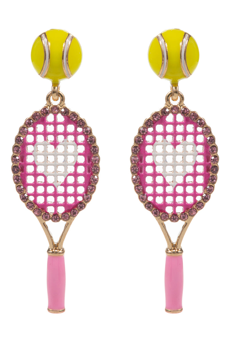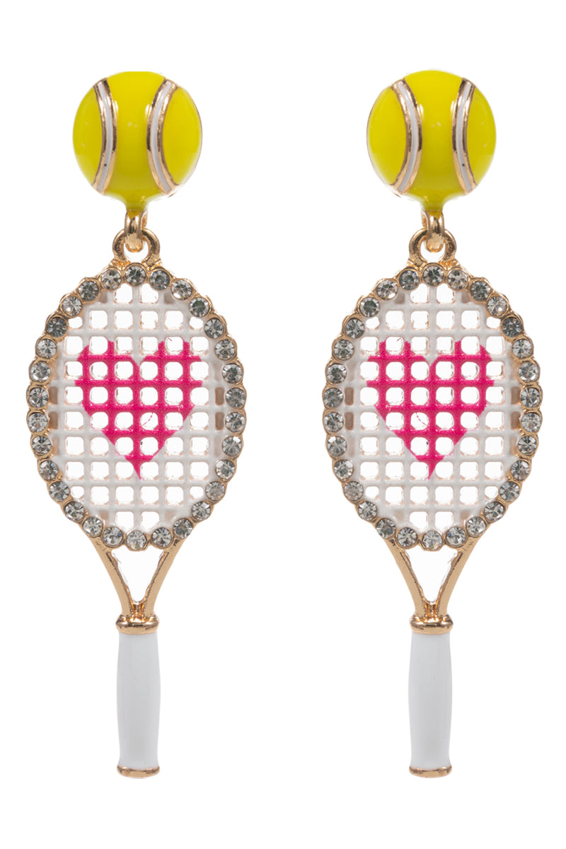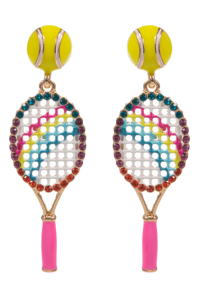 Gameday Tennis Racquet W Ball Enamel Post Earrings