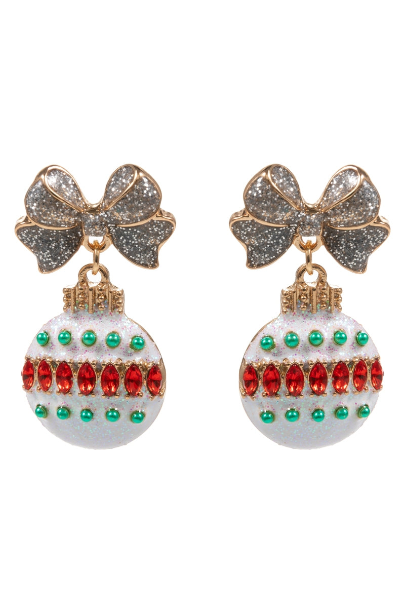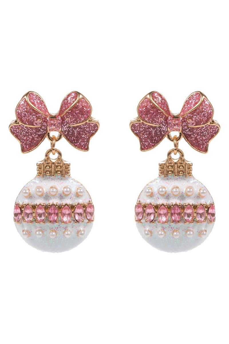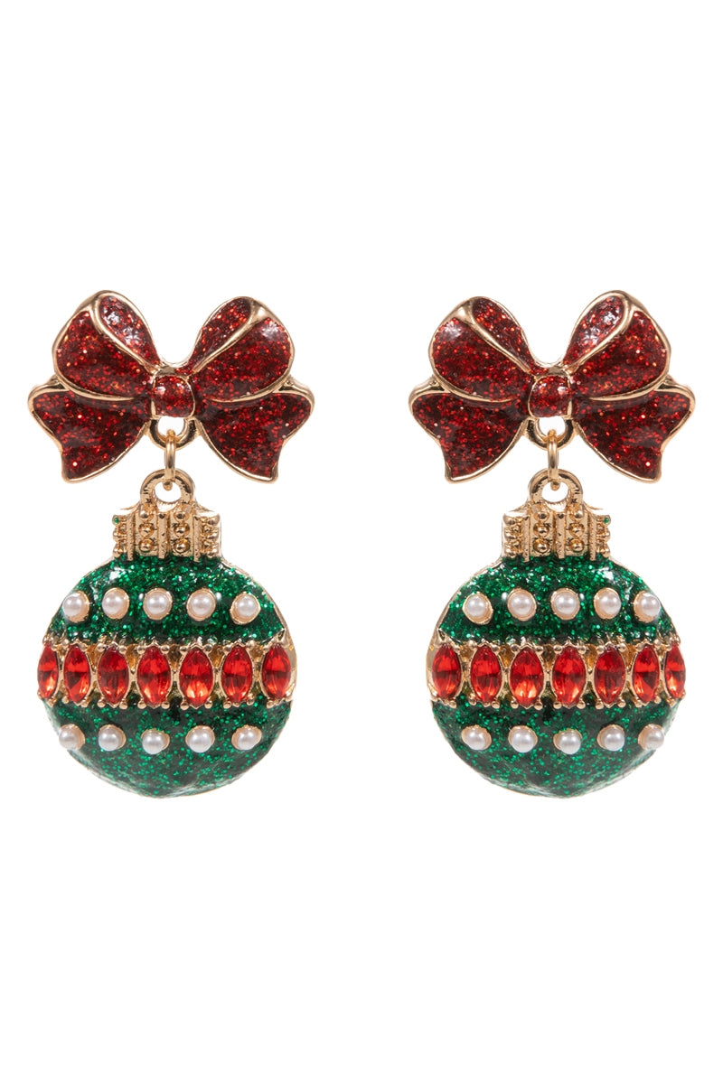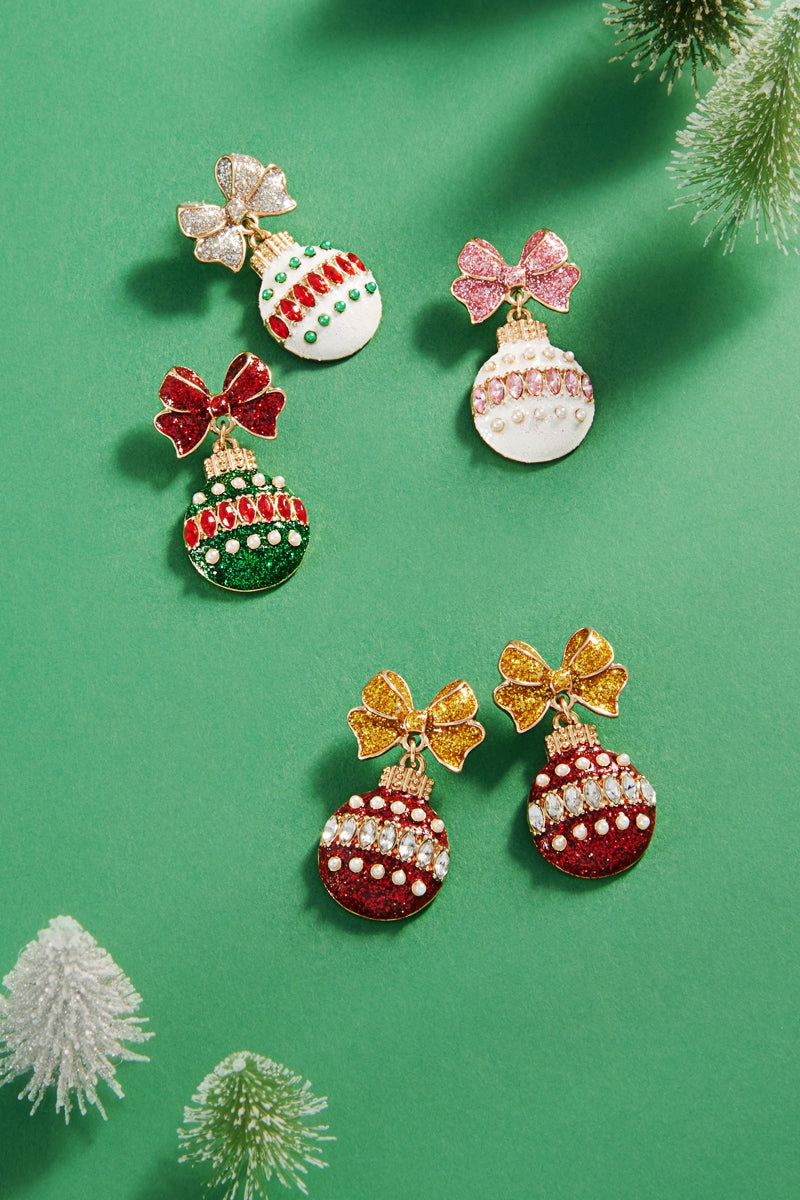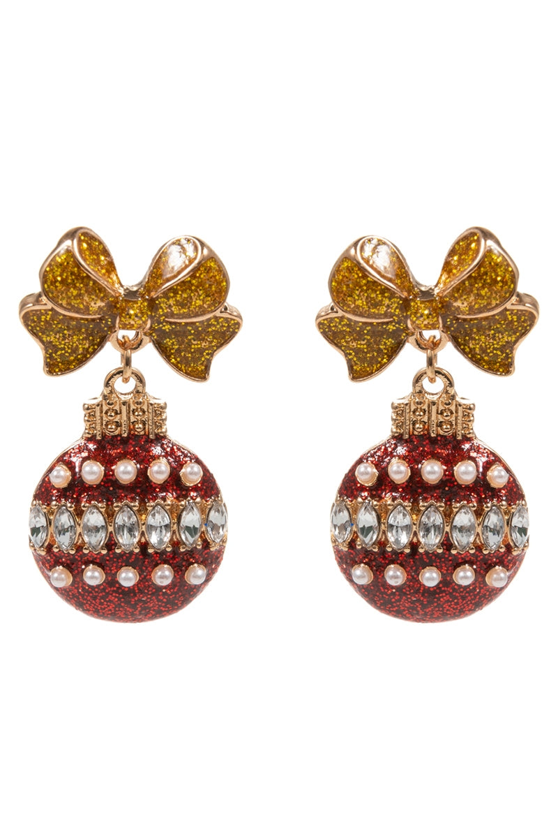 Sparkle bright this season with these glittery ornament earrings featuring radiant rhinestones and pearl accents.