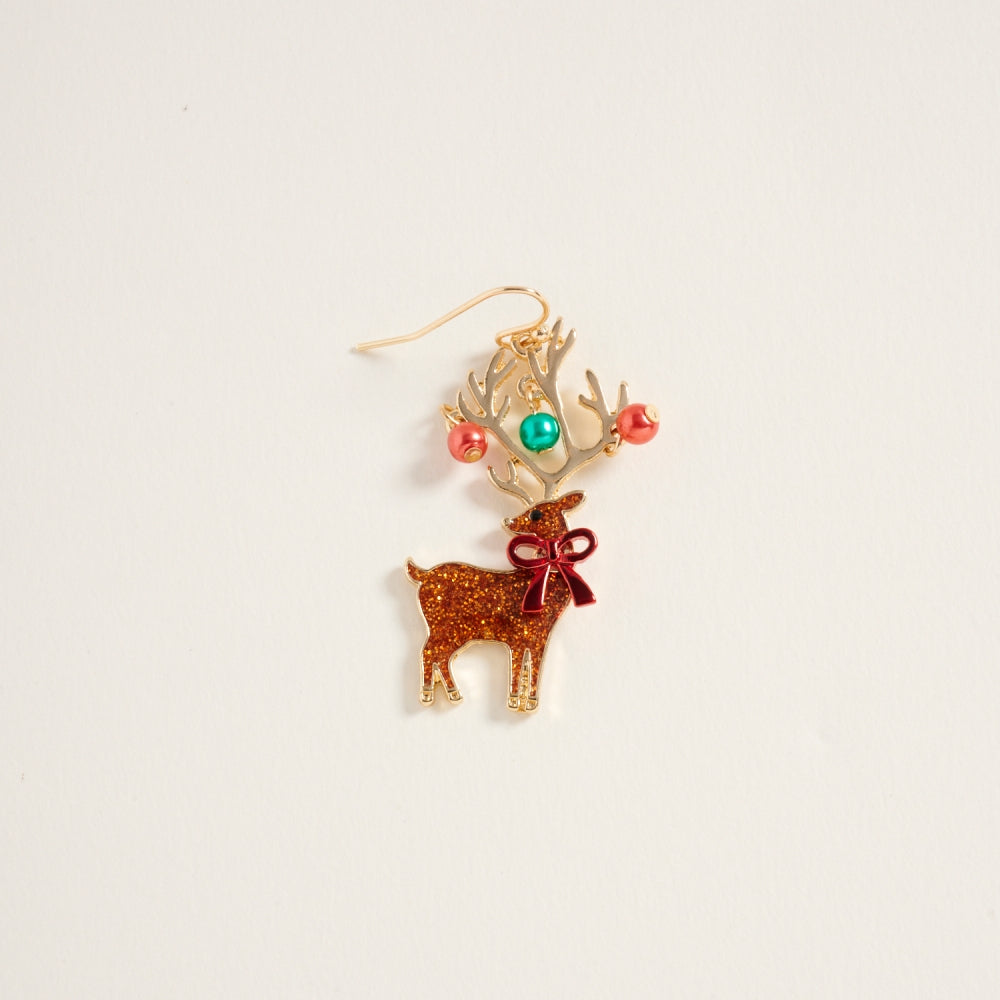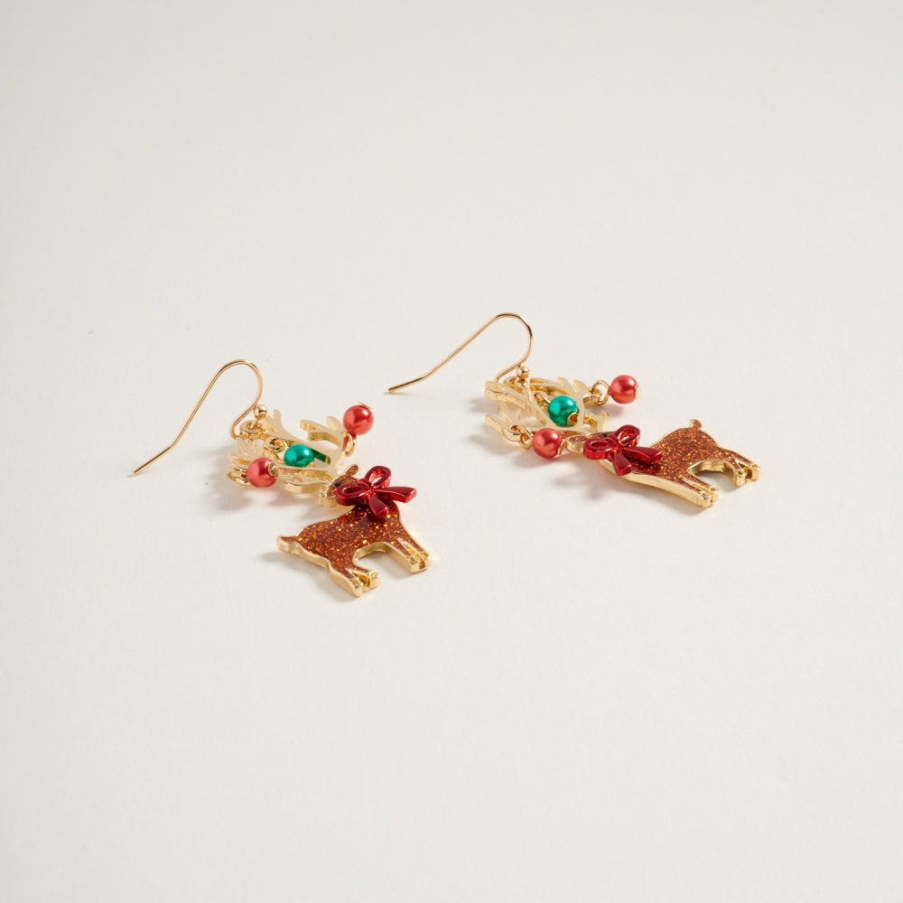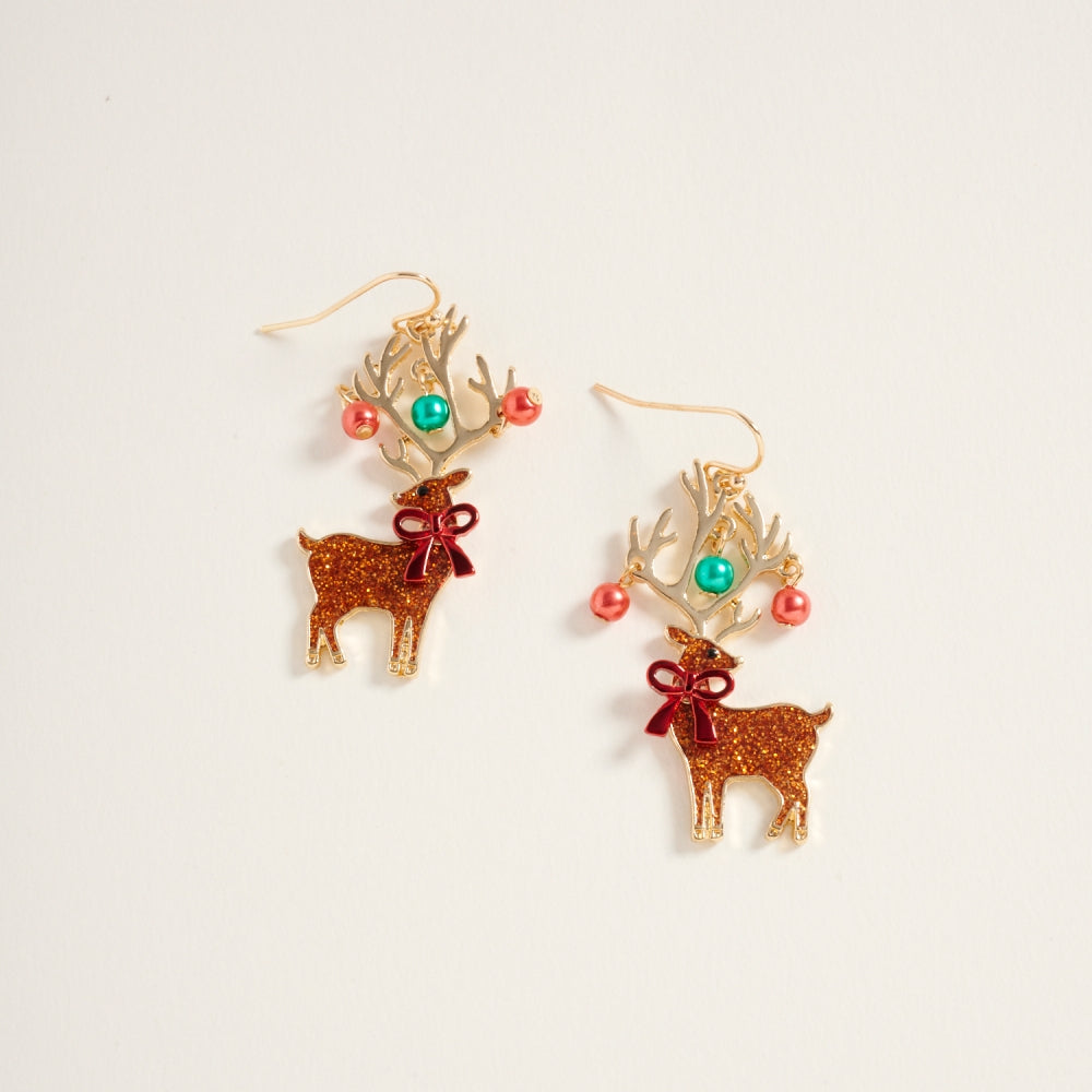 Glitter Christmas Reindeer Pearl Hook Earrings