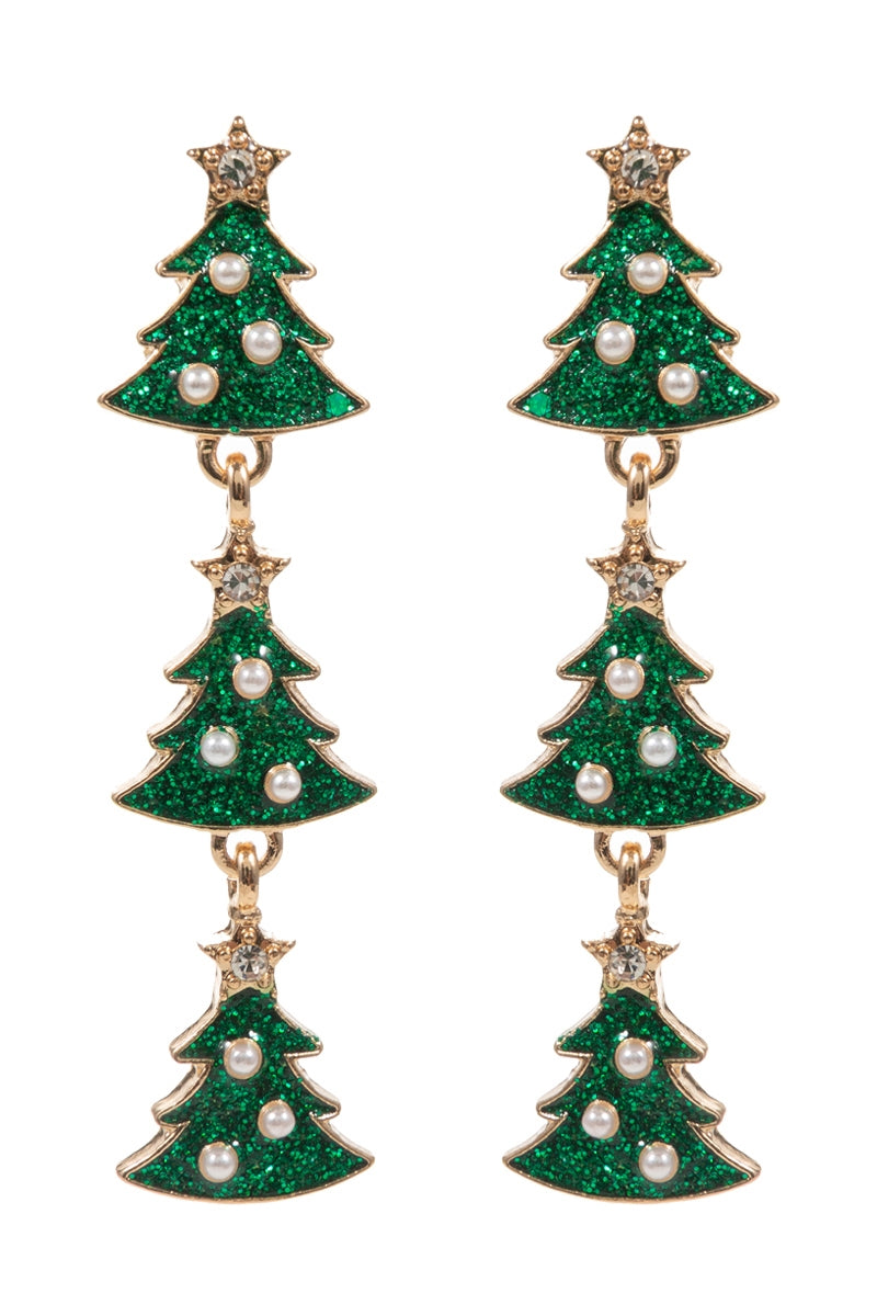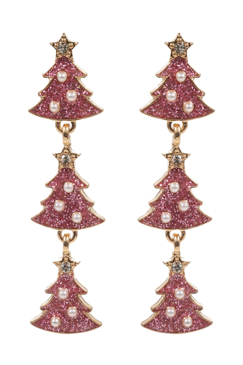 Glitter Christmas Tree Pearl Stones Post Earrings