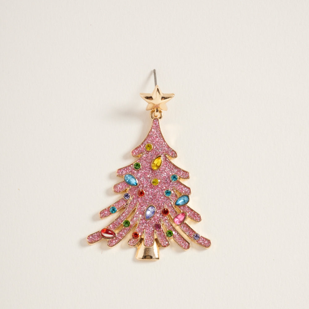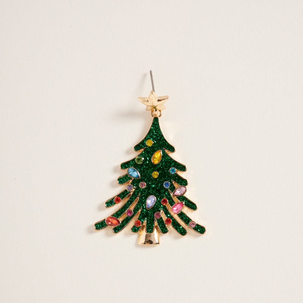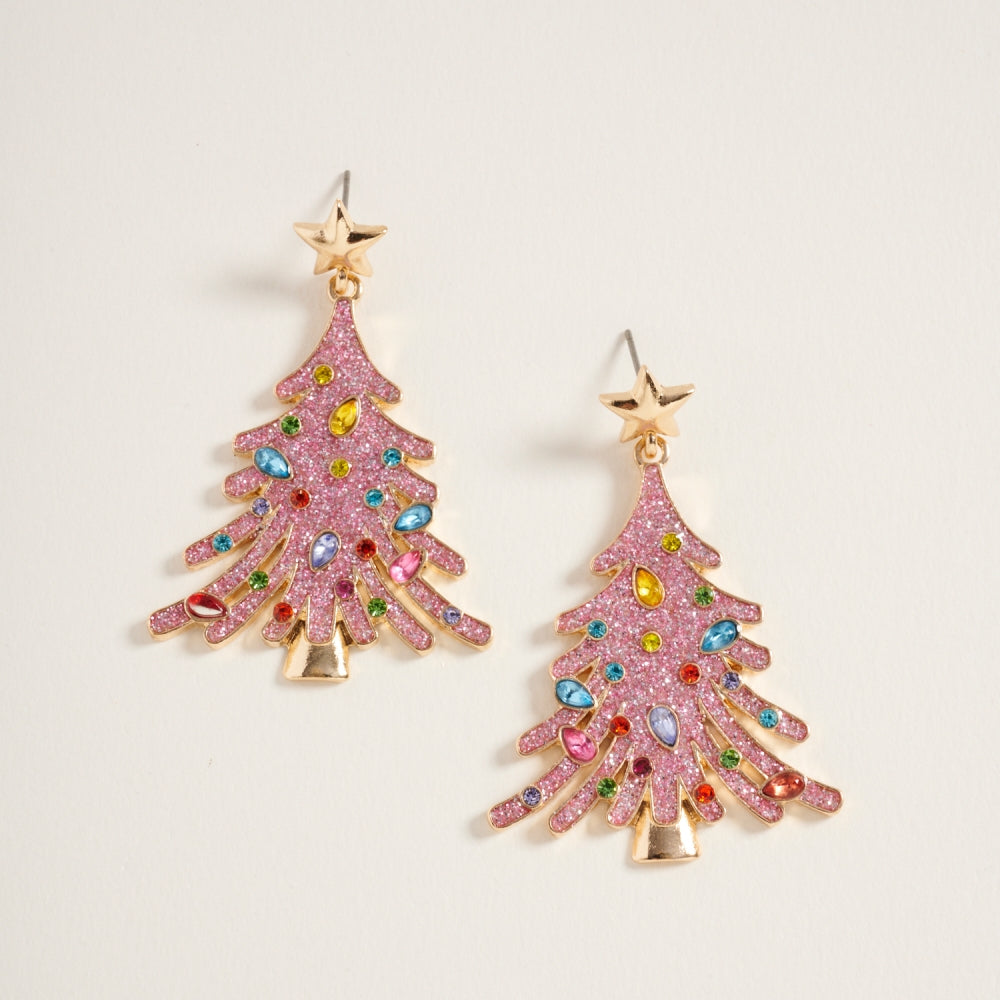 Glitter Christmas Tree w Rhinestone Post Earrings