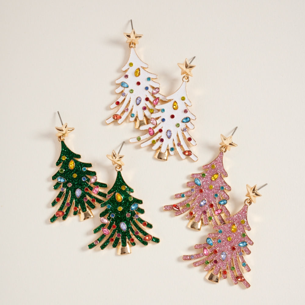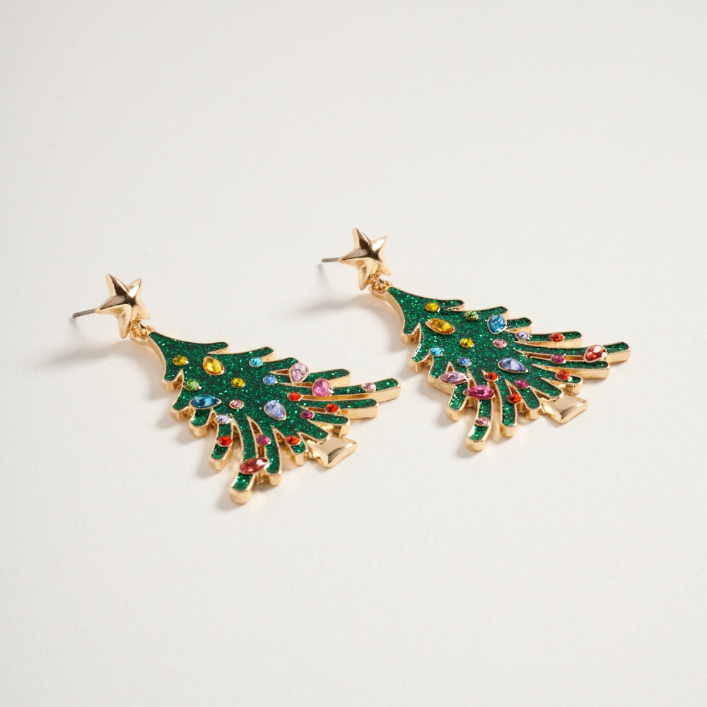 Sparkle all season long with these glittery Christmas tree post earrings, accented with radiant rhinestones for extra festive shine.