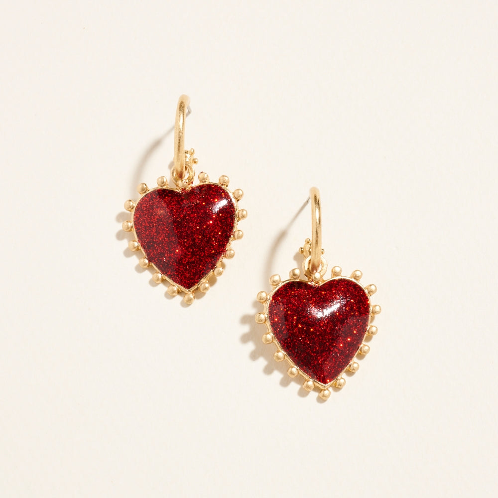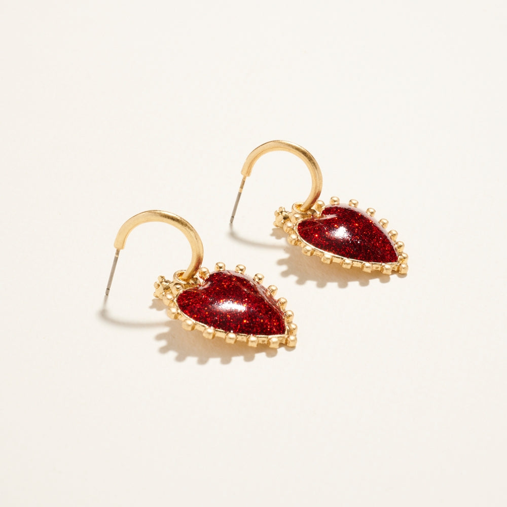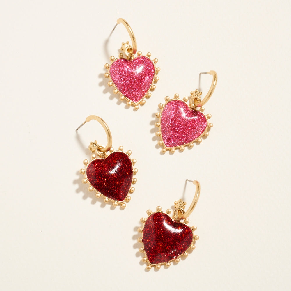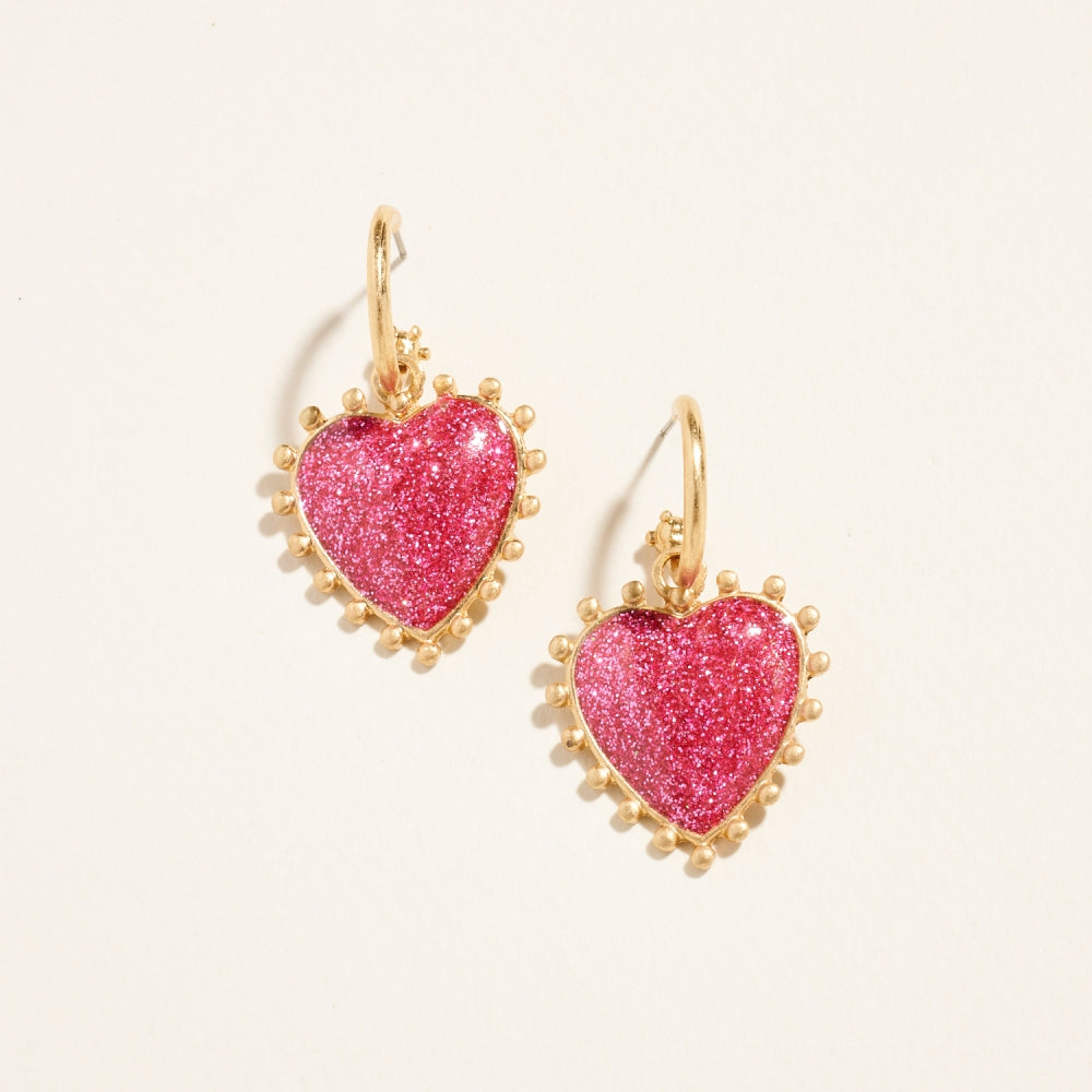 Glitter Heart Shaped Post Hoop Earrings Jewelry
