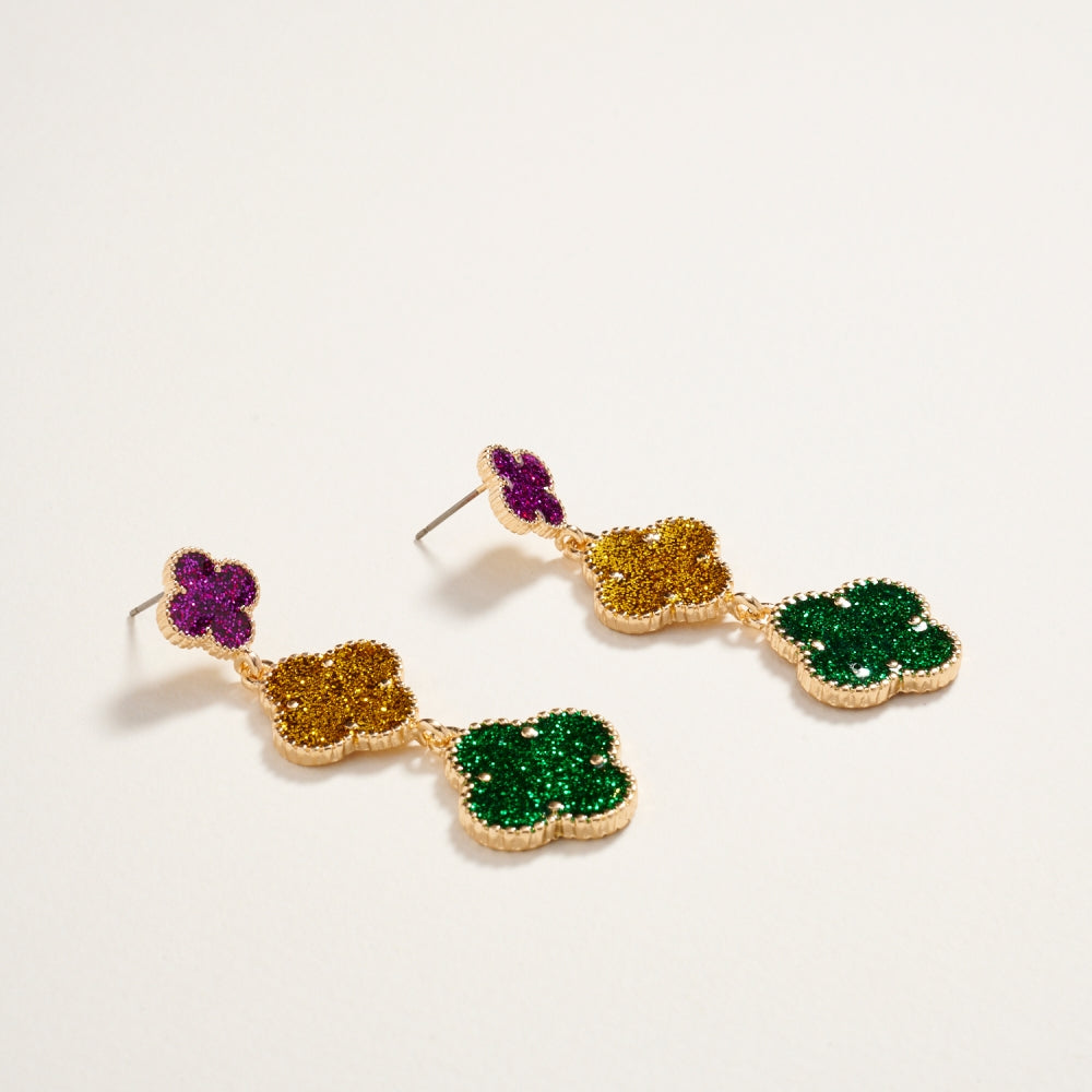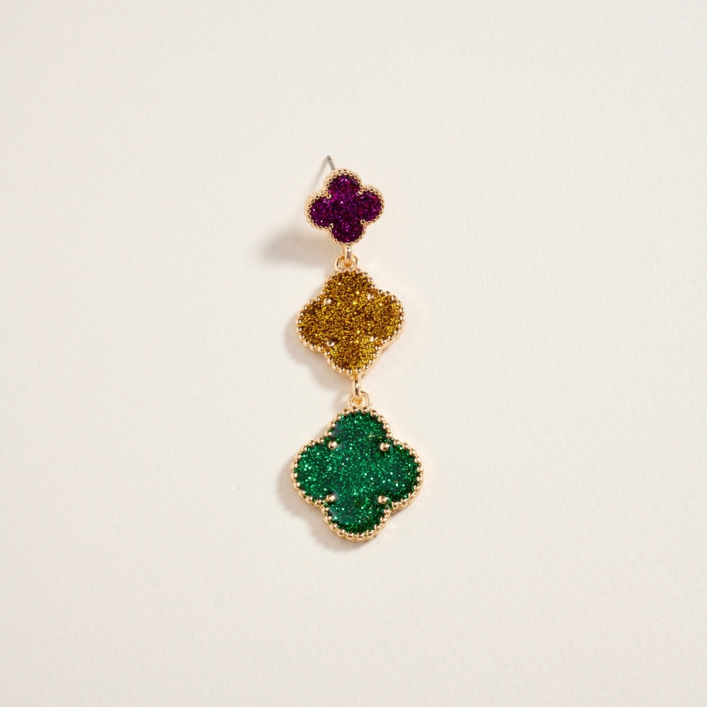 Glitter Mardi Gras Clover Link Drop Post Earrings