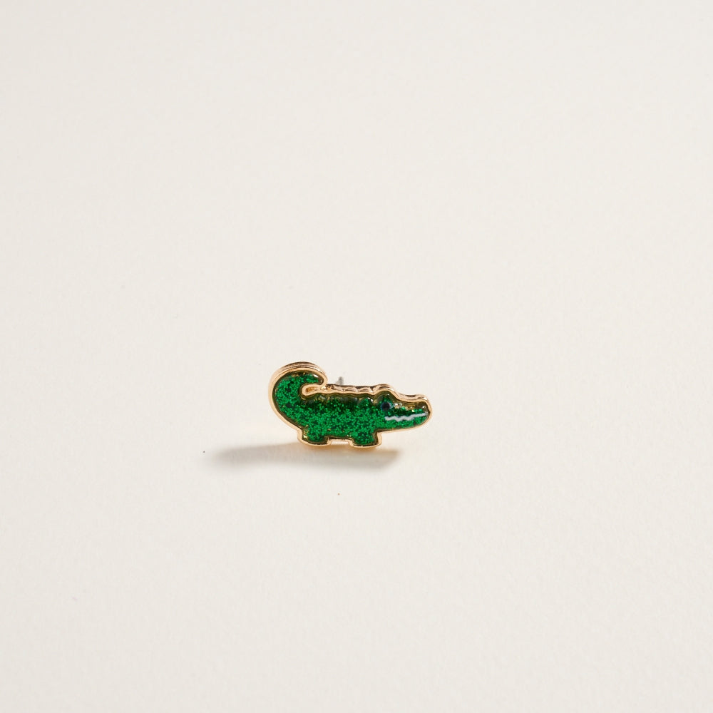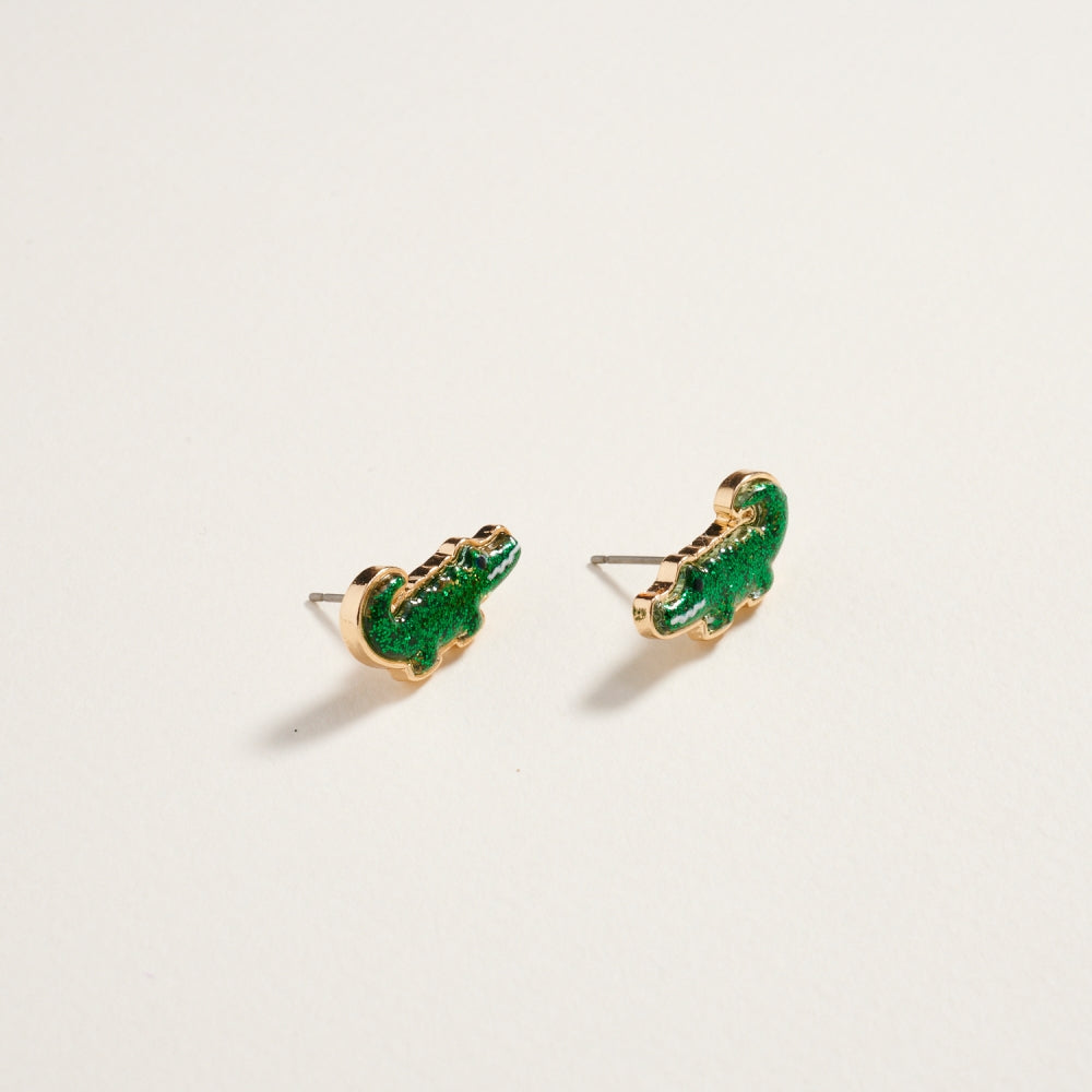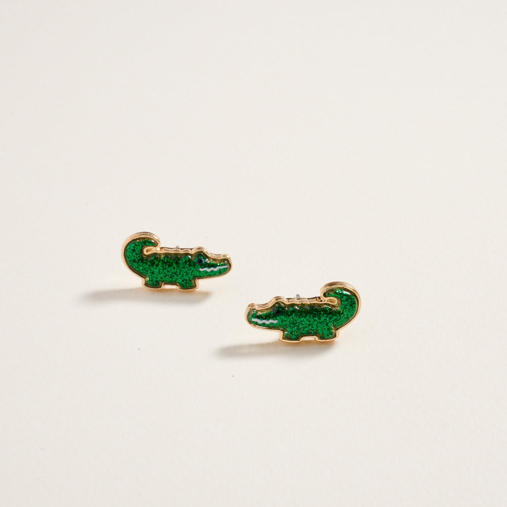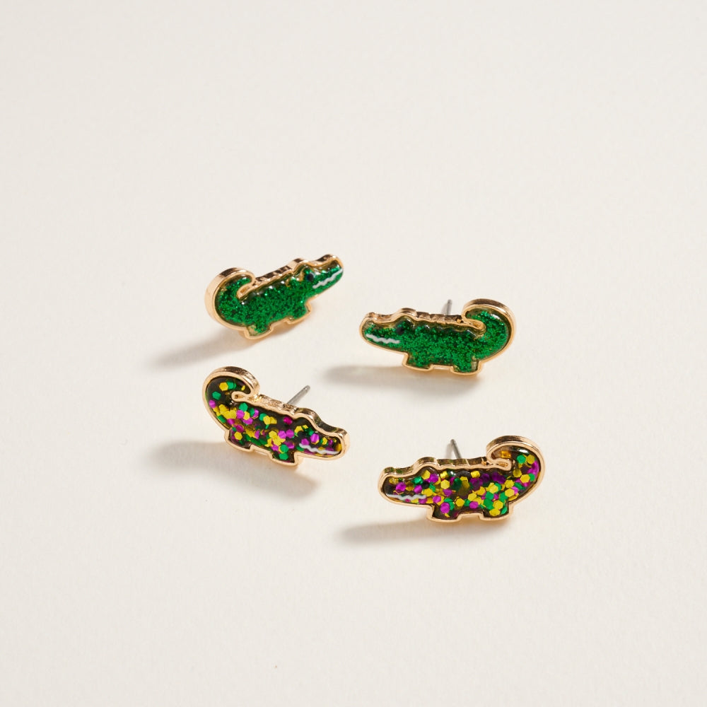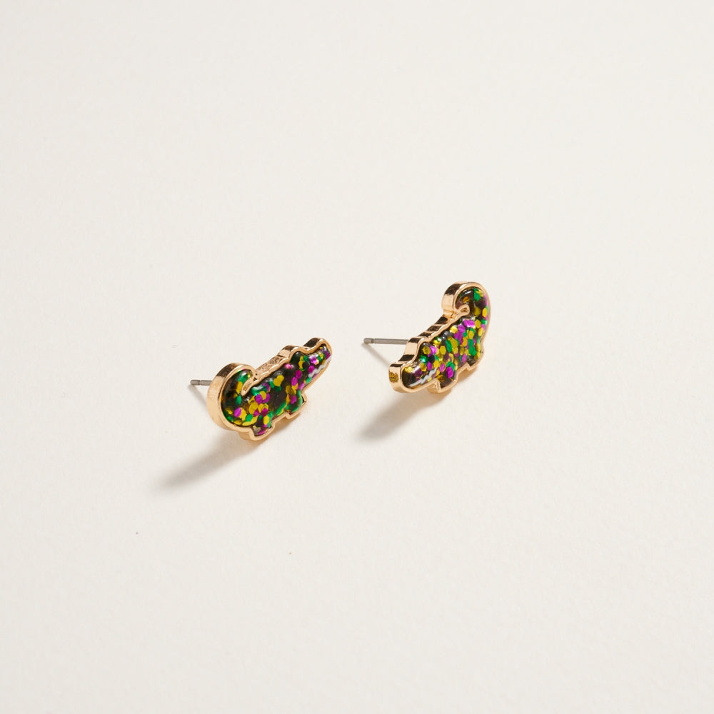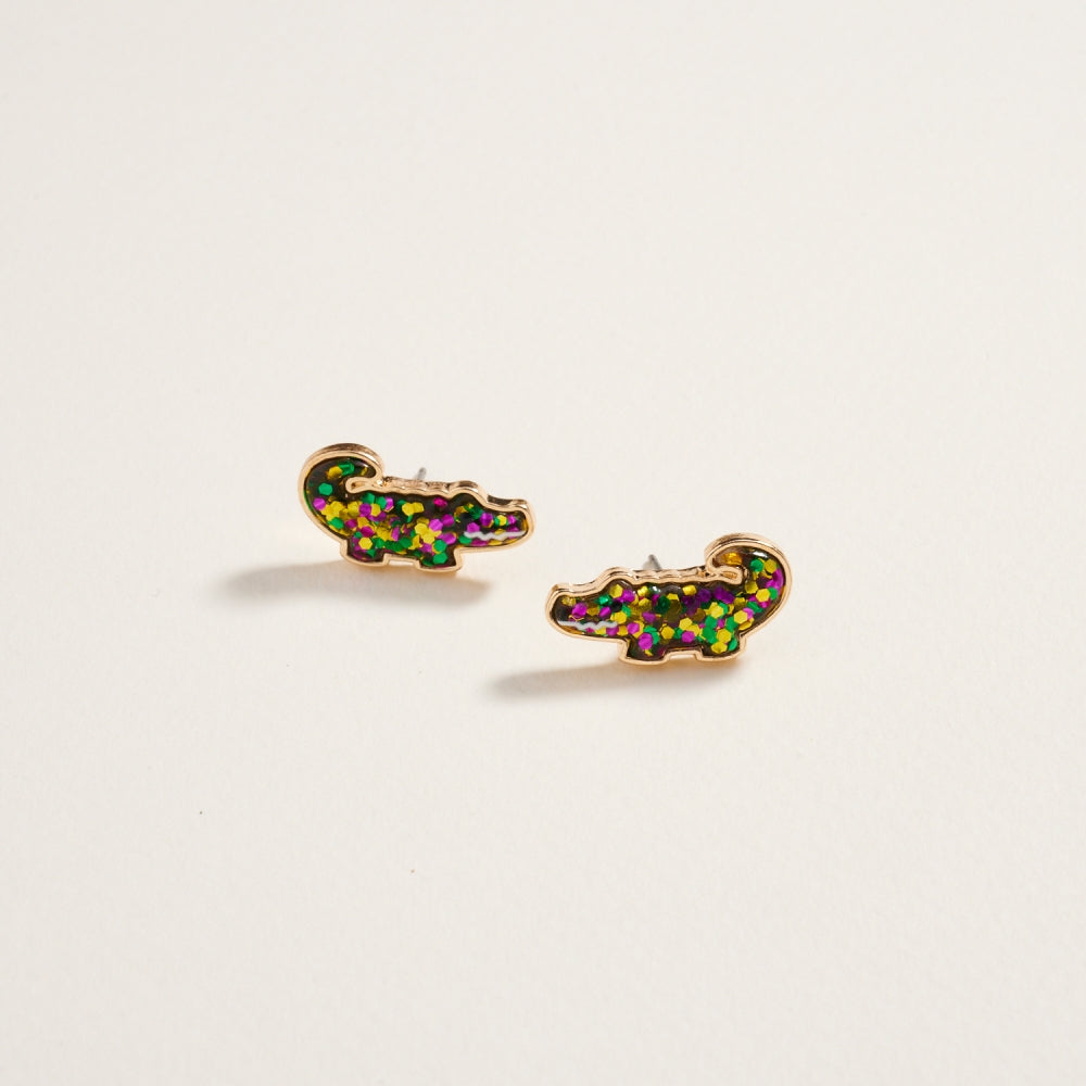 Glitter Mardi Gras Crocodile Post Earrings Jewelry
