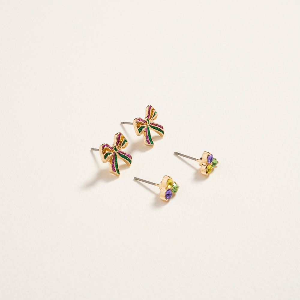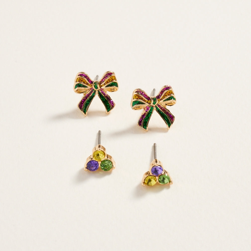 Complete your Mardi Gras look with these glittered ribbon bow earrings. This 2-piece post set captures the joy of the season with sparkling details in iconic carnival hues.