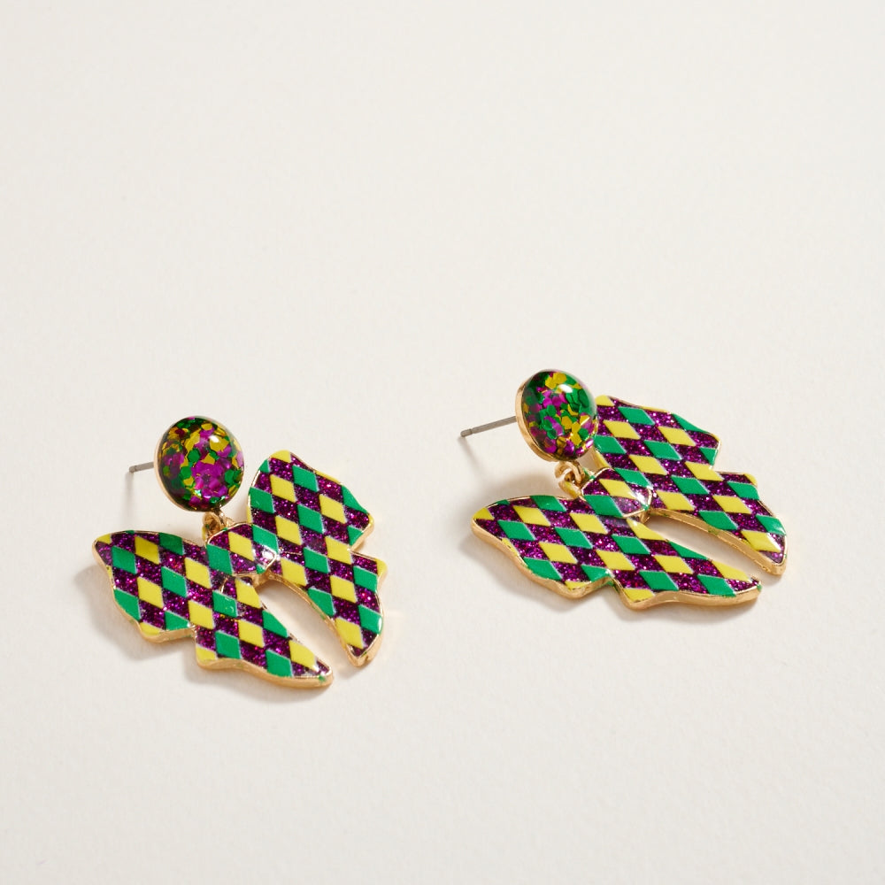 #Mardigras #Mardi #Gras #Carnival #Parade #Beads #Masquerade #Jester #Bourbon #NOLA #Fleurdelis #Fleur #Mask #Boot #Lobster #Ribbon #Bow #Streetcars #Crown #Foolscap #Capnbells #Purple #Green #Gold #Drop #Stud #Dangle #Hoop #Earrings #Jewelry #Silver #Holiday #Rhinestone #Pearl #Champagne