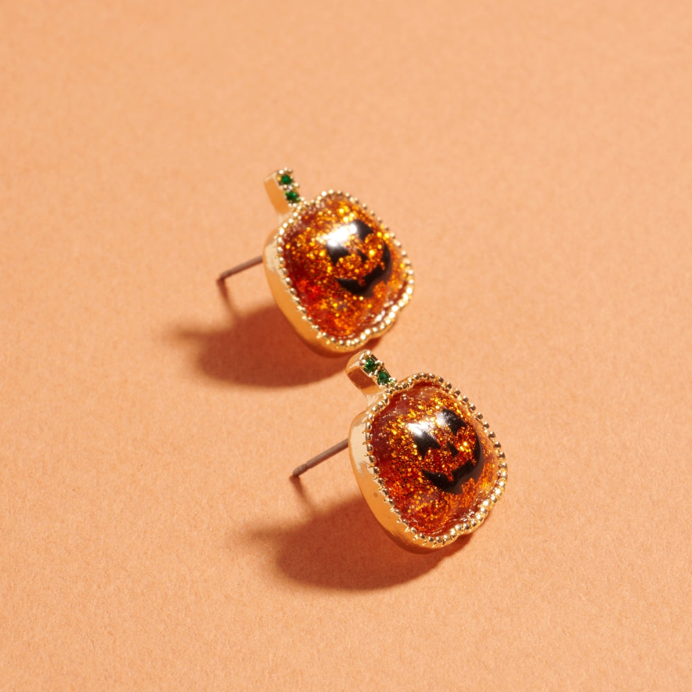 Glitter Pumpkin Rhinestone Post Earrings Halloween