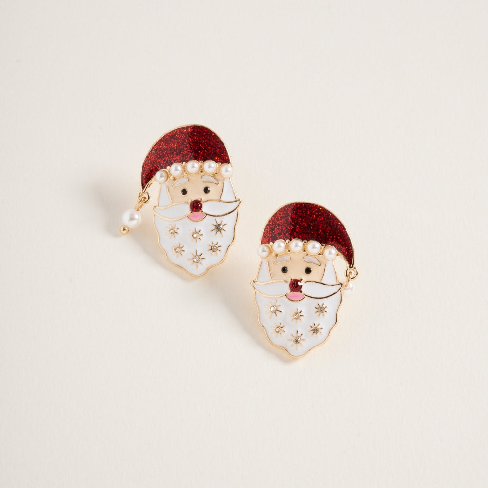 Glitter Santa Face Pearl Rhinestone Post Earrings