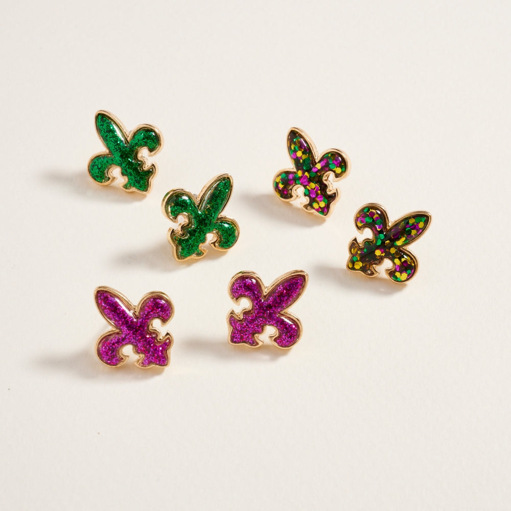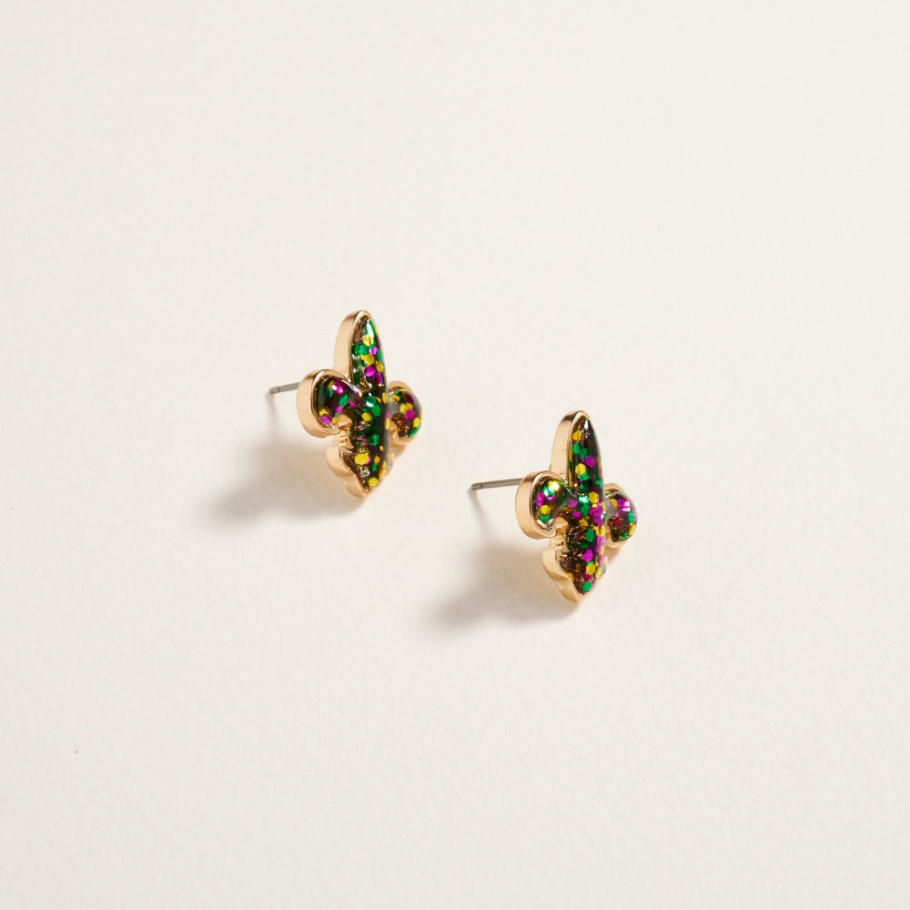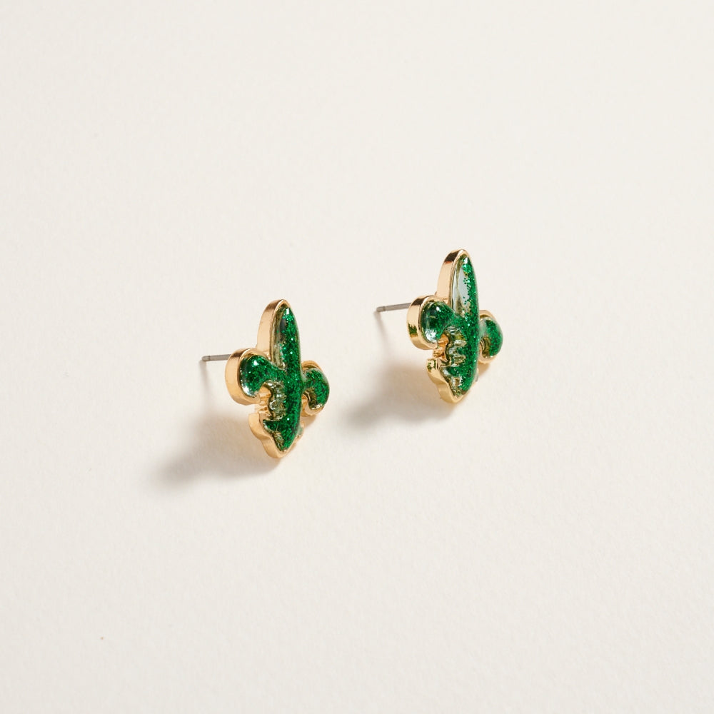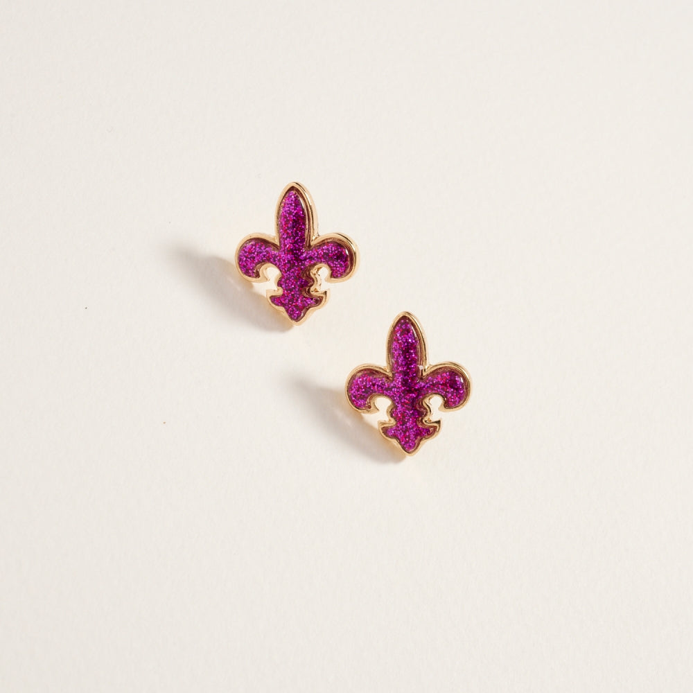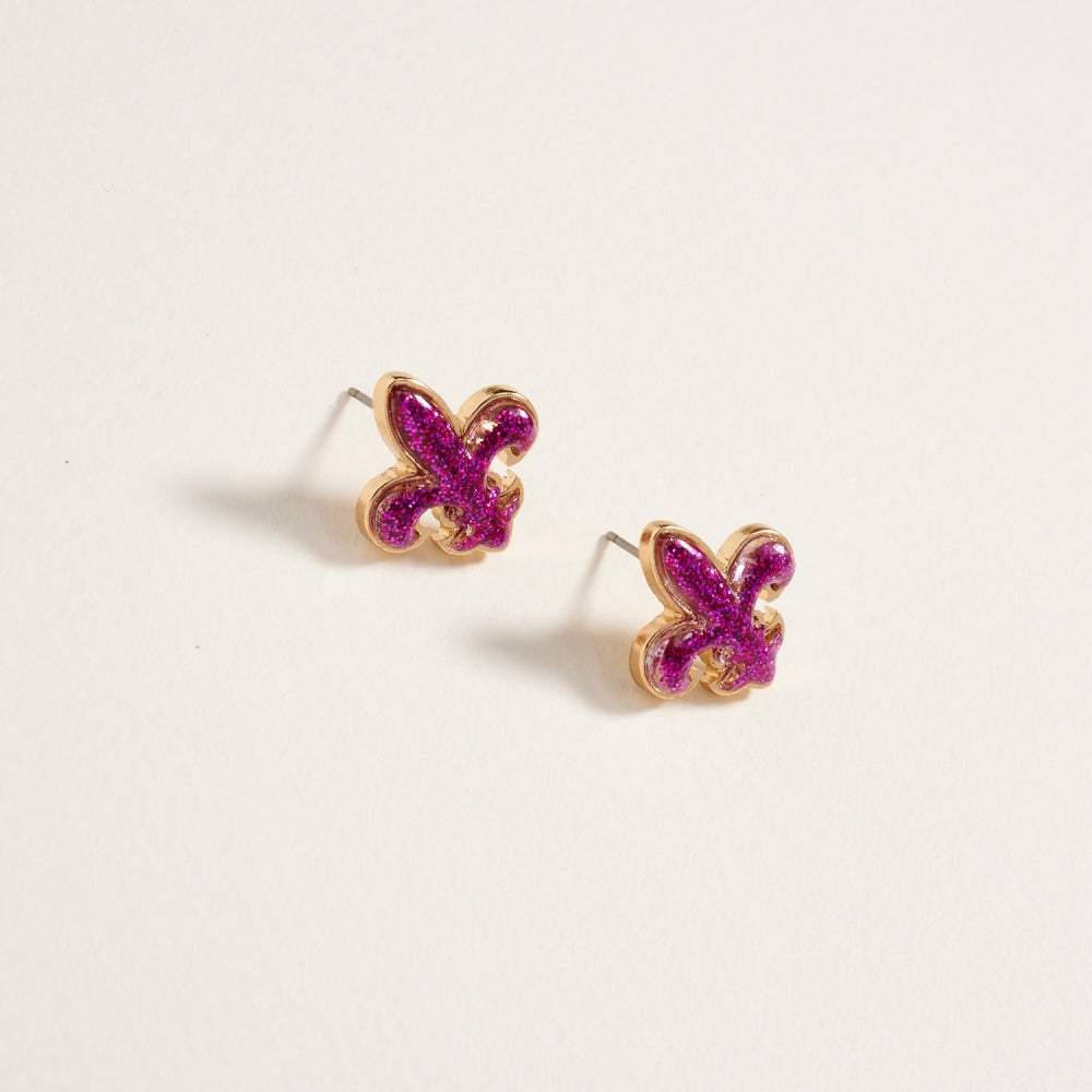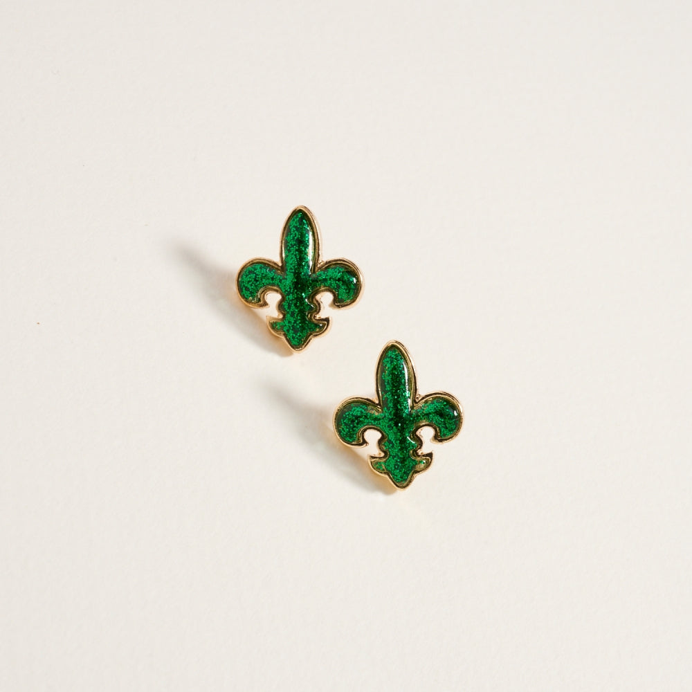 Celebrate tradition and shine with these glittered fleur de lis post earrings. Lightweight and eye catching, theyre an easy way to show your spirit with classic Southern charm.