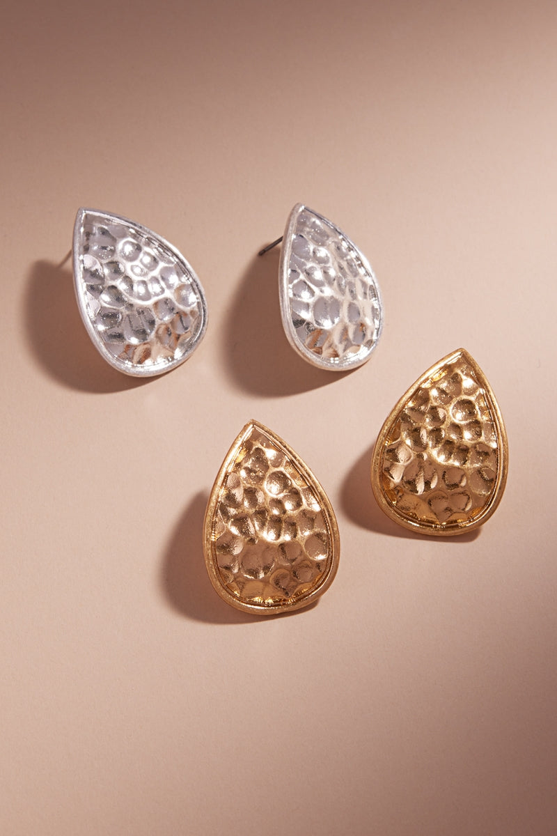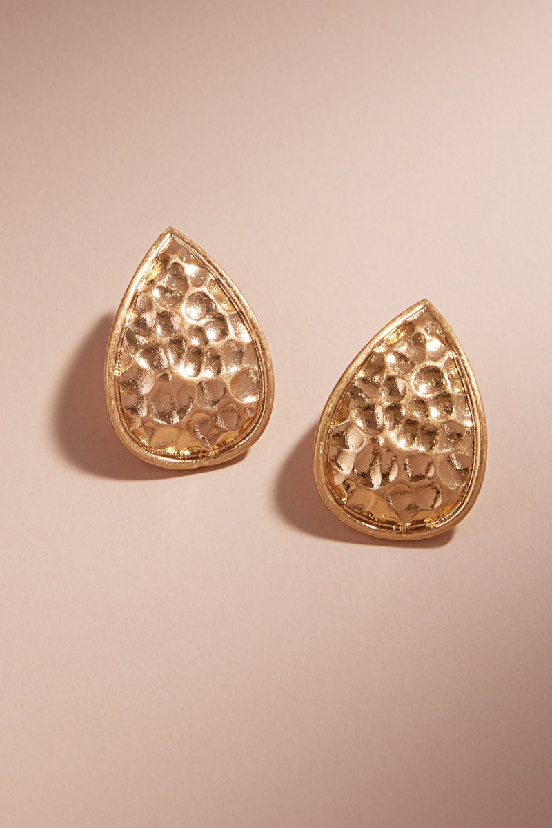 Hammered Teardrop Vintage Metal Post Earrings