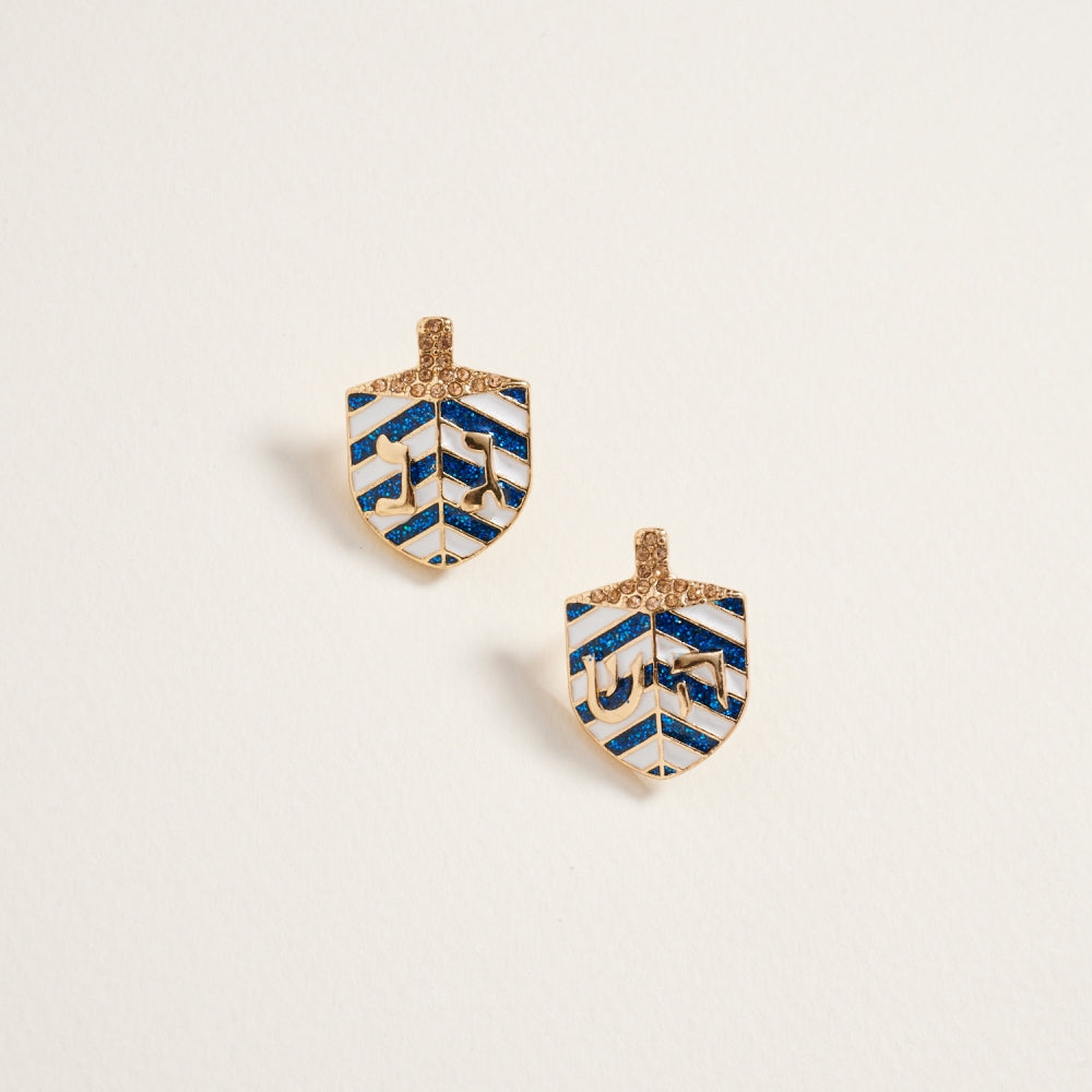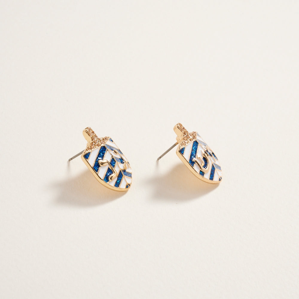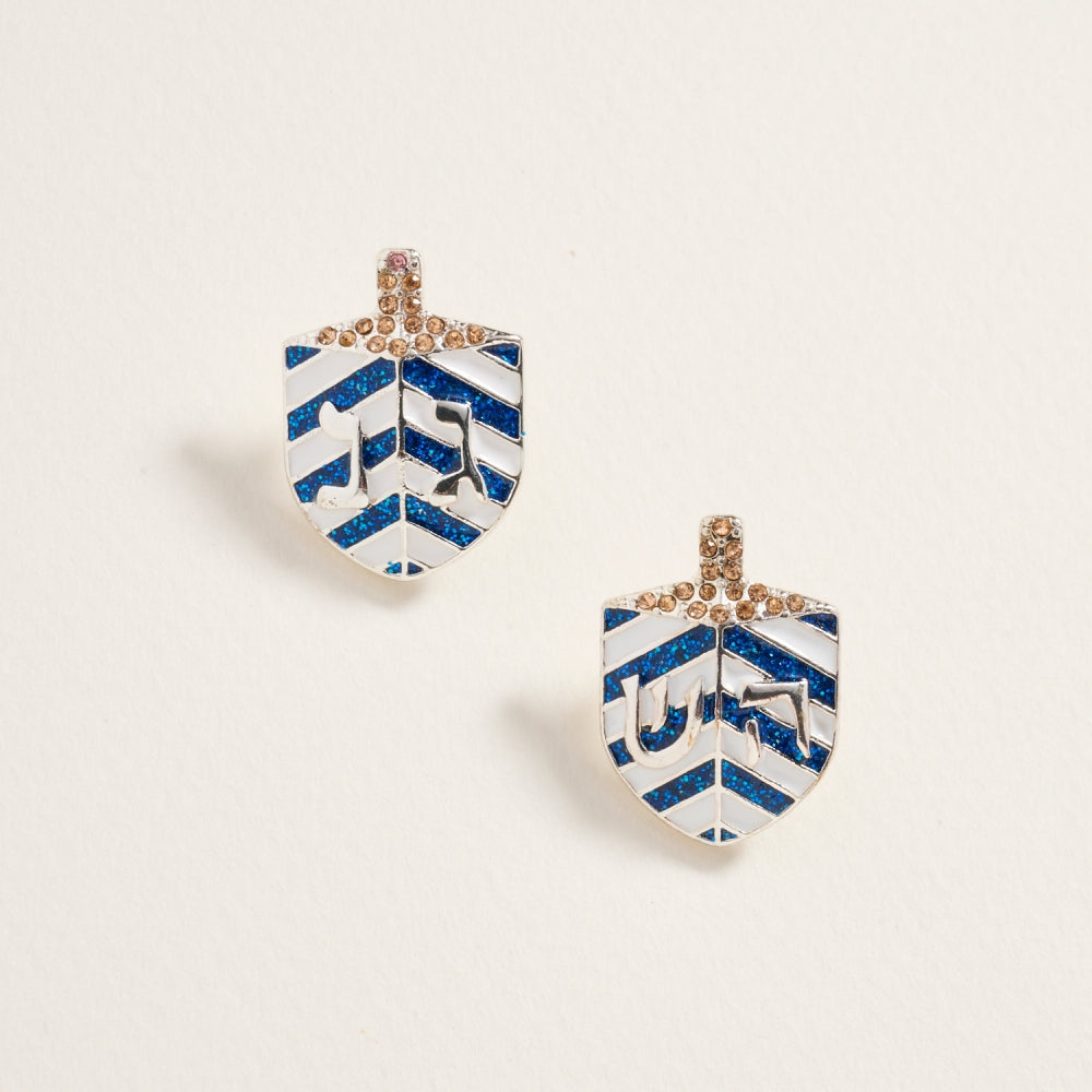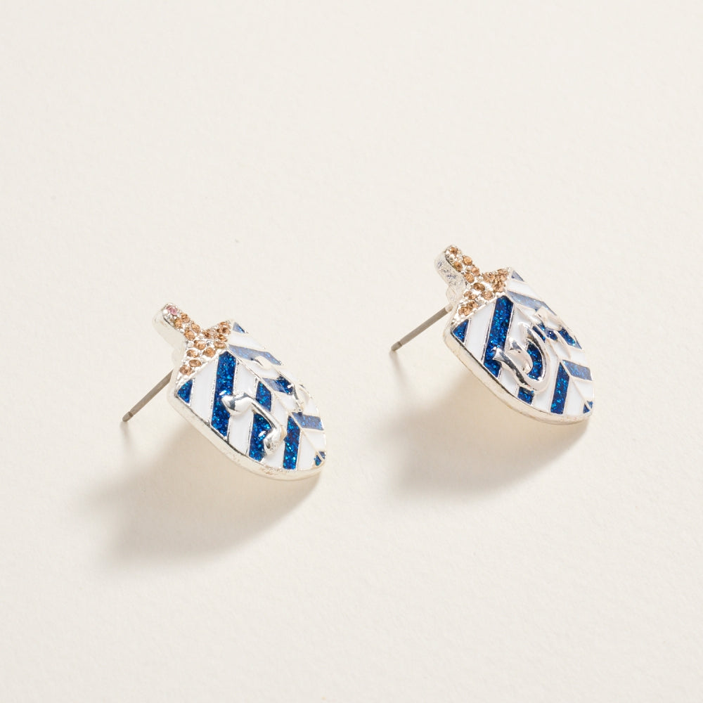 Hanukkah Glitter Dreidel Rhinestone Post Earrings