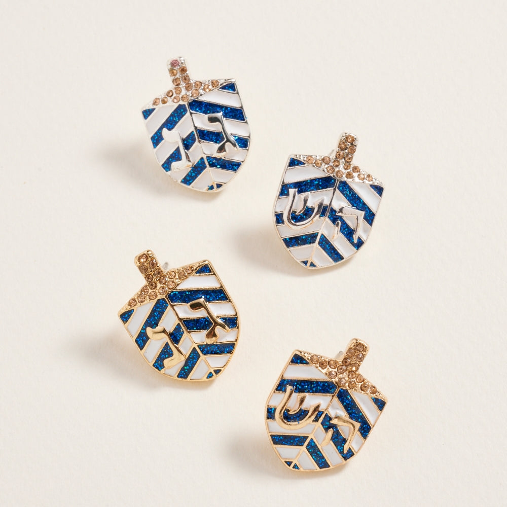 A classic Hanukkah symbol gets a glam upgrade with these rhinestone-studded dreidel post earrings. Lightweight and full of sparkle, they’re a joyful addition to your holiday jewelry box.