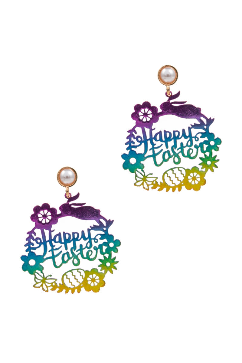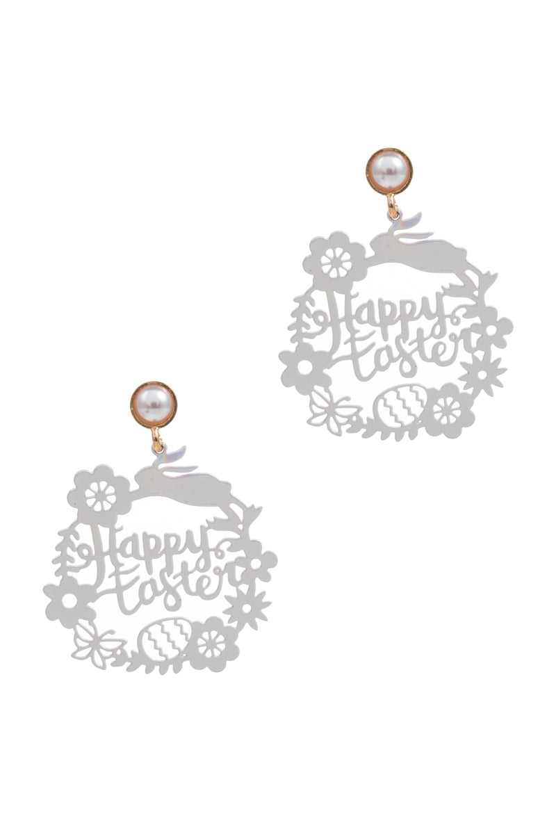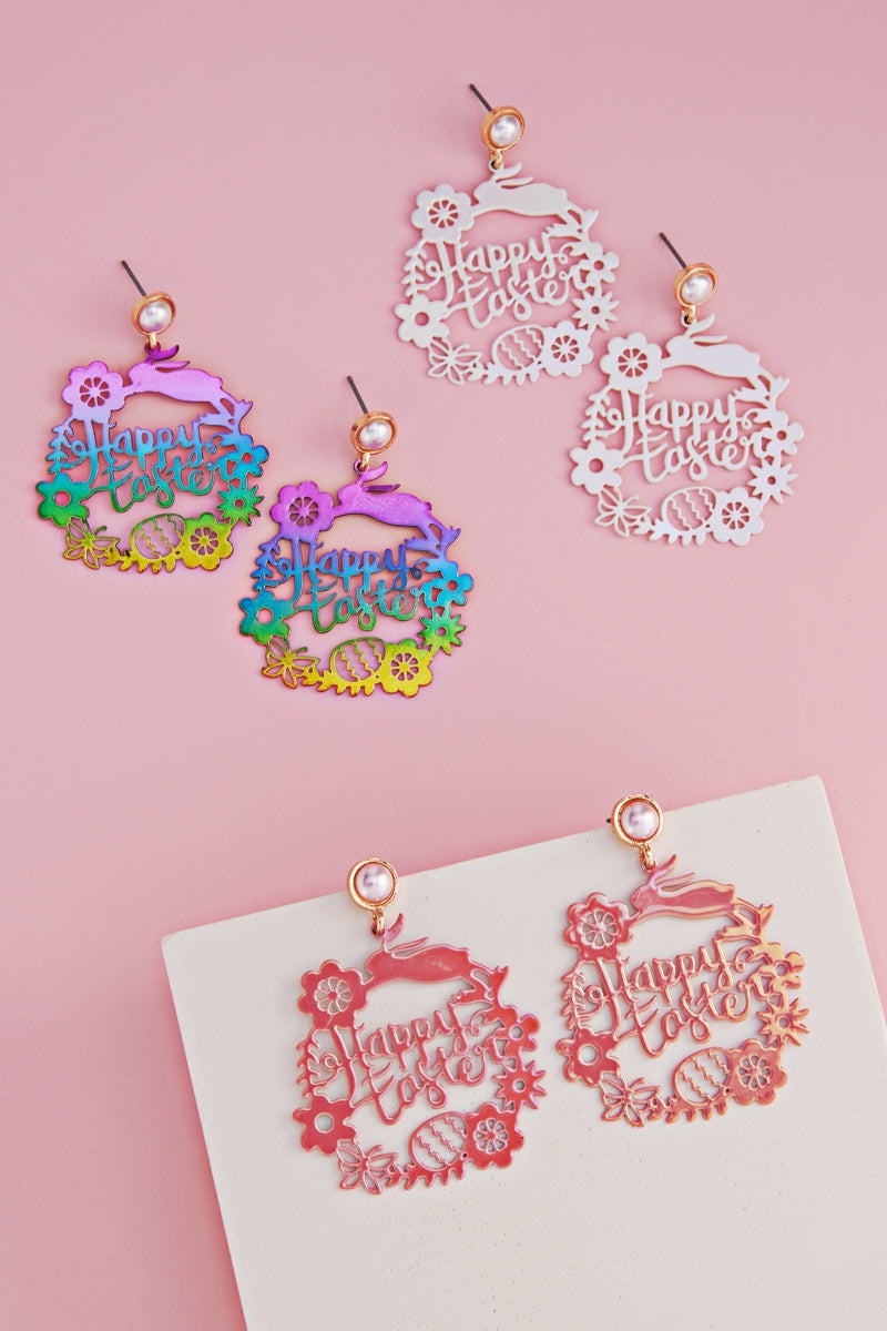 Happy Easter Brass Metal Post Earrings