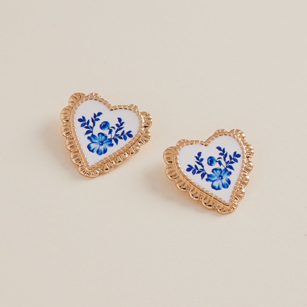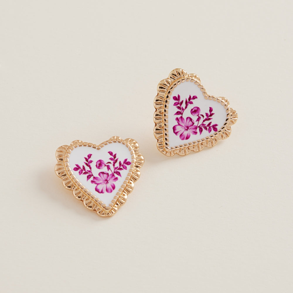 Heart Enamel Casting Flower Pattern Post Earrings