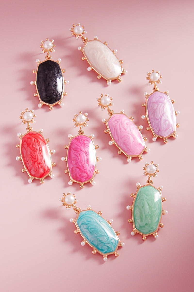 Expertly crafted, these hypoallergenic titanium post earrings feature a unique 2 inch hexagon shape with colorful enamel coating. Designed for sensitive ears, these earrings offer both style and comfort. Perfect for everyday wear or special occasions.