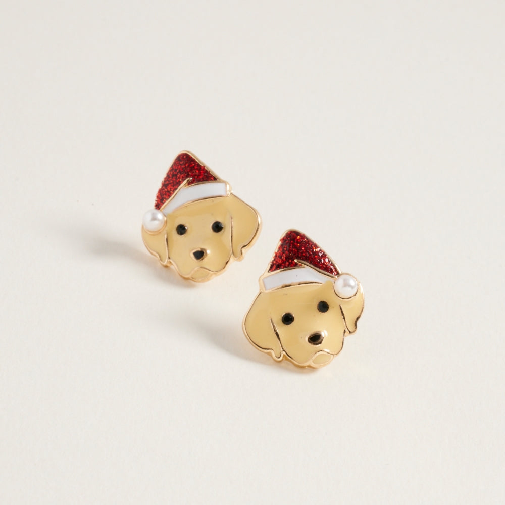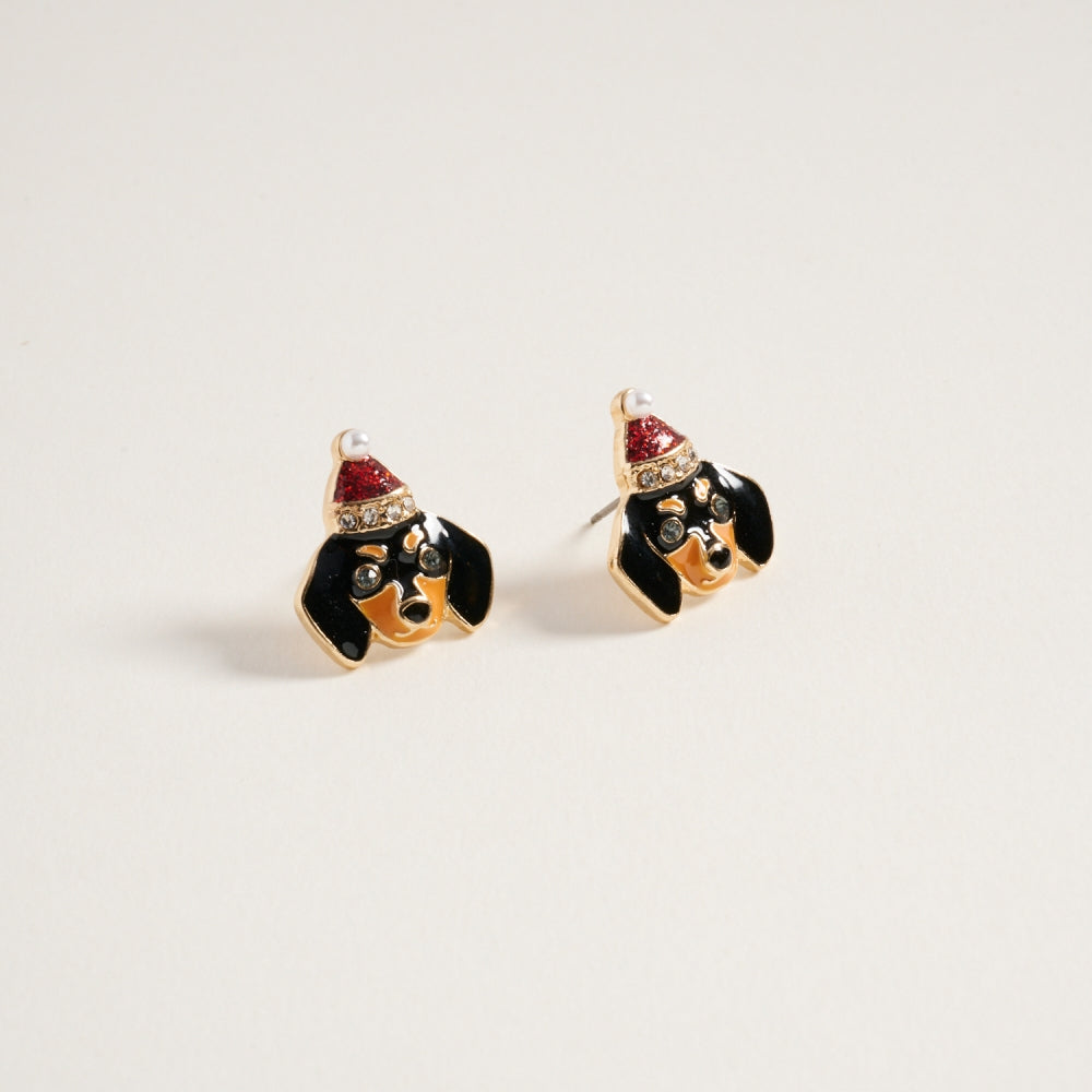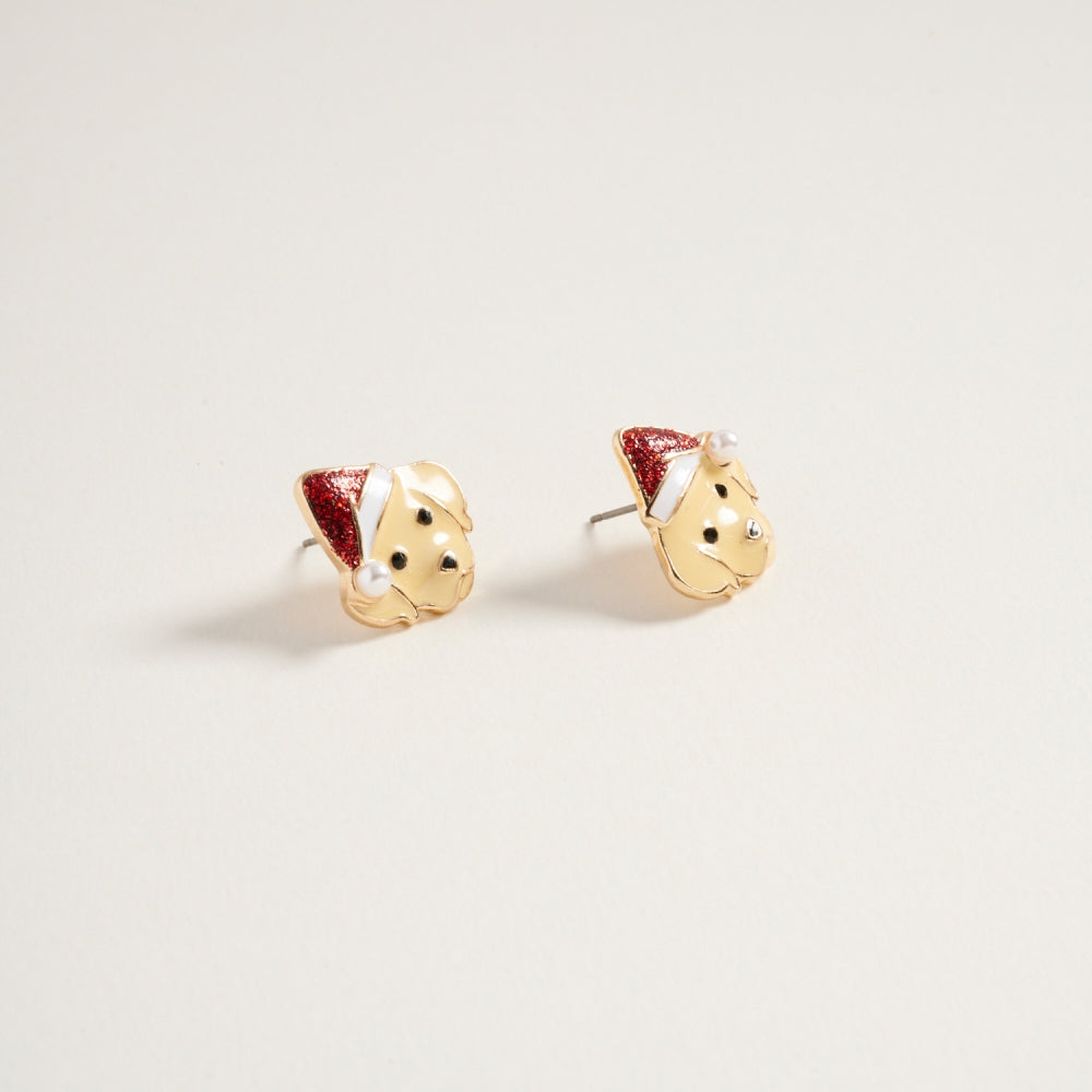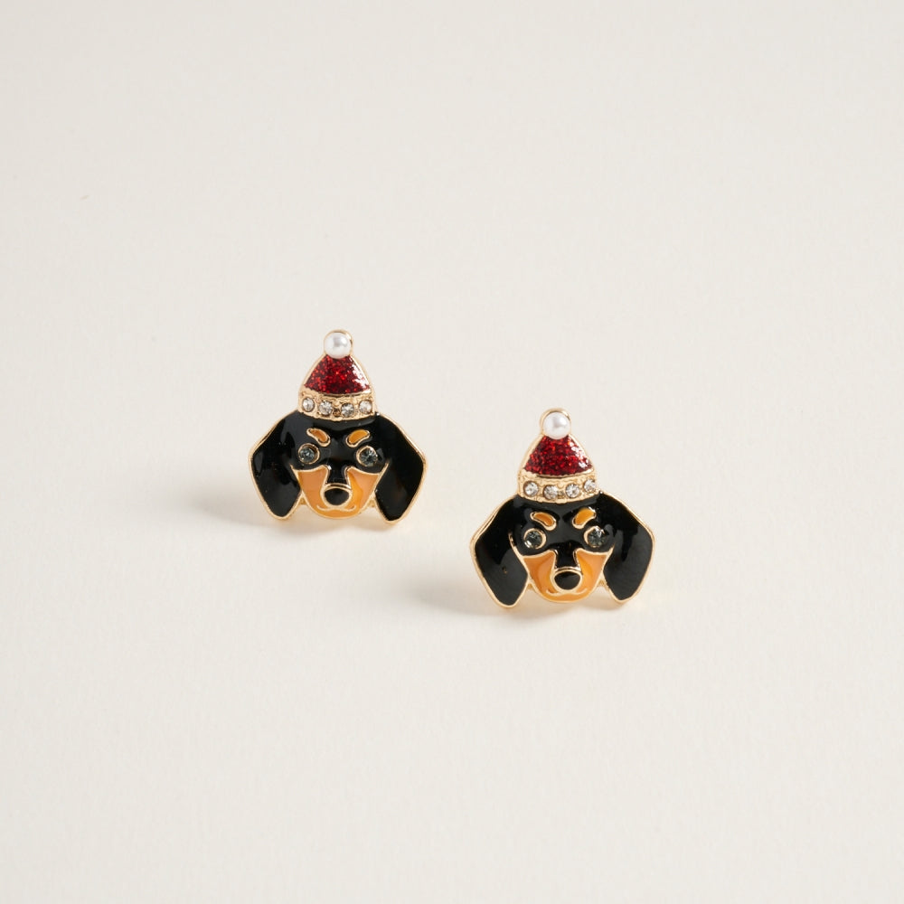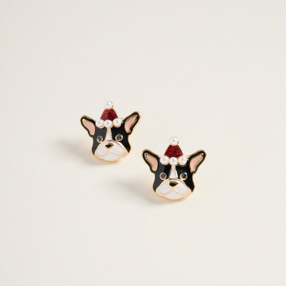 Holiday Christmas Dogs in Santa Hat Post Earrings