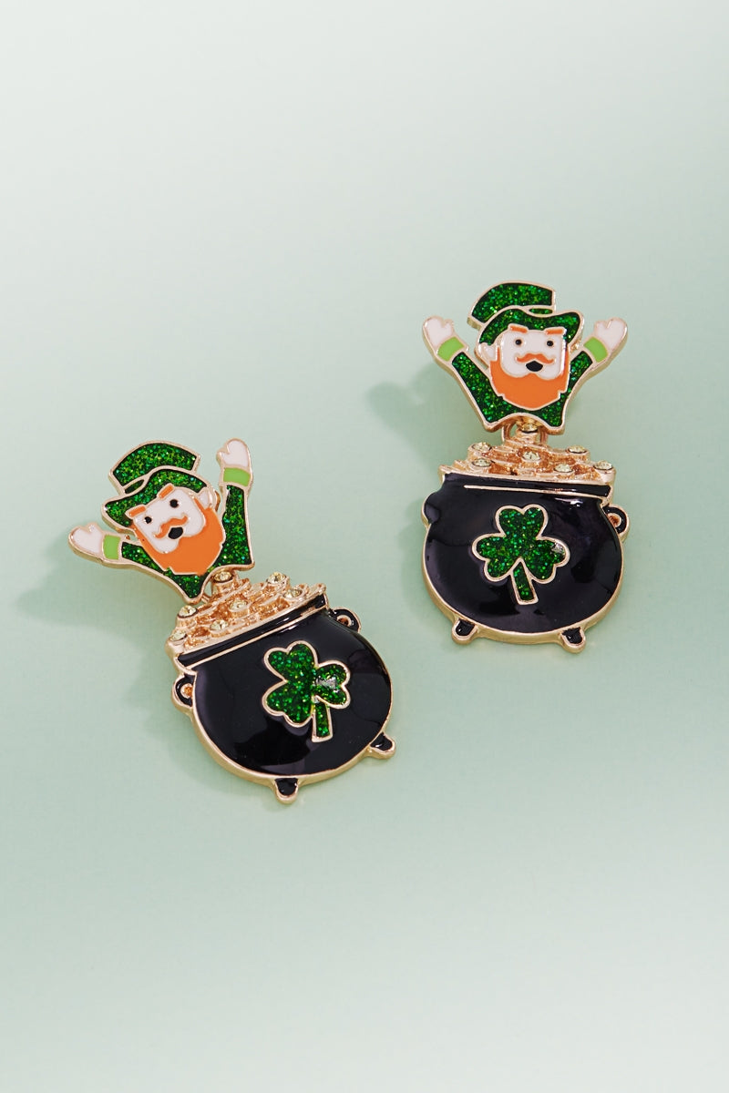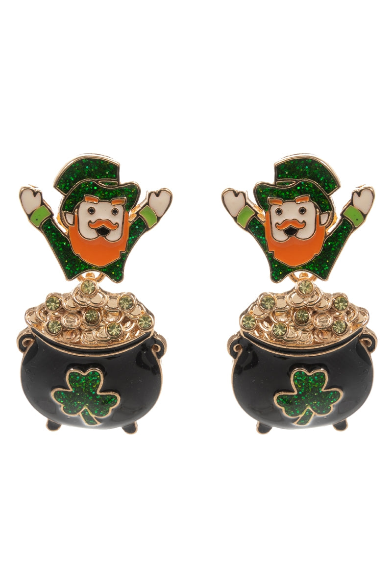 Leprechaun Enamel Pot Gold Titanium Post Earrings