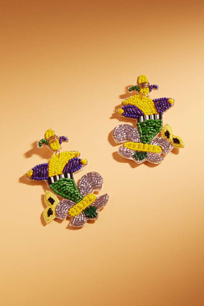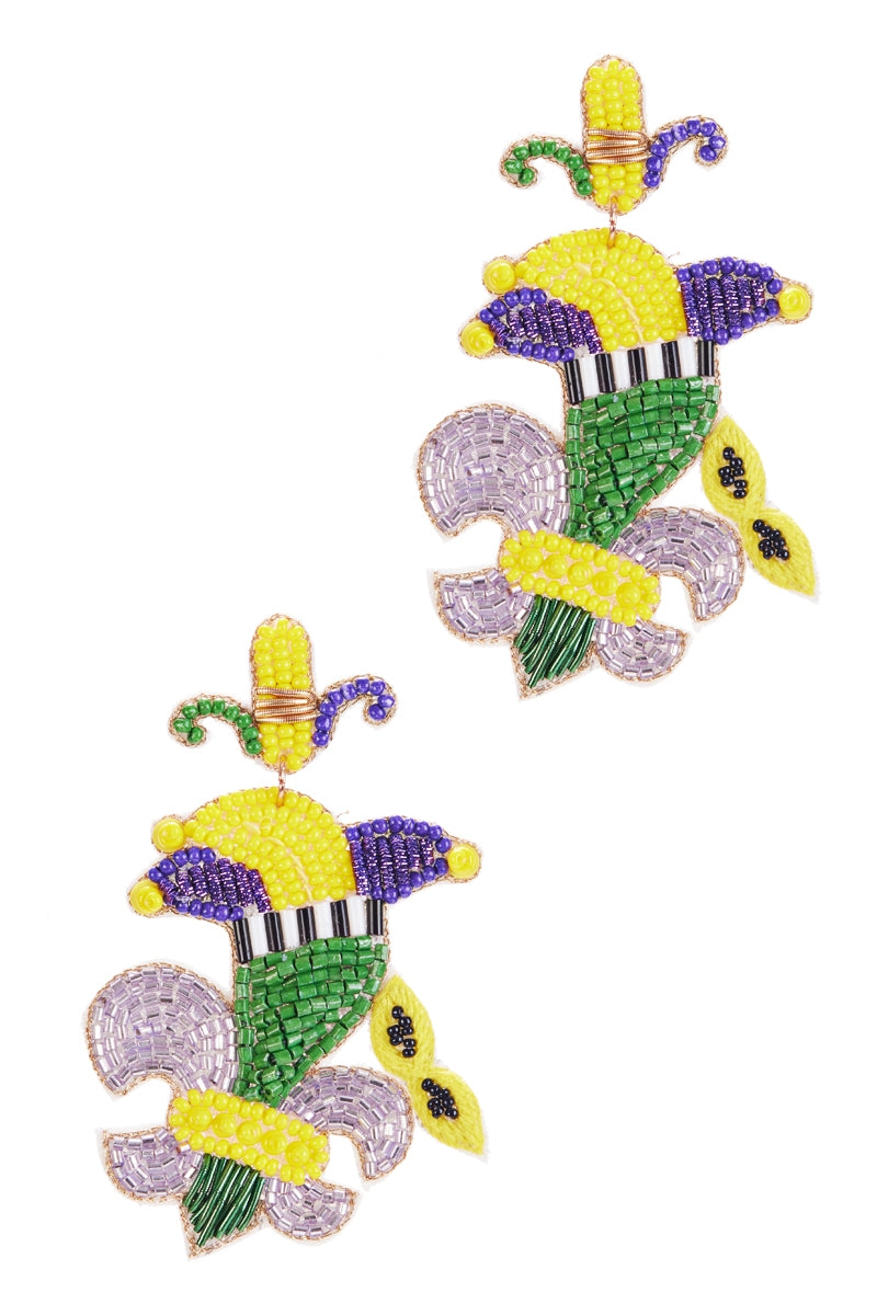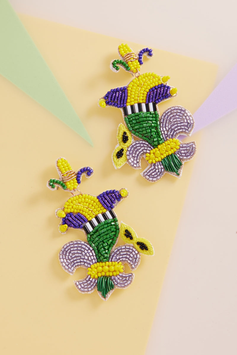 These 3-inch Mardi Gras clown post earrings are a vibrant addition to any outfit. Made with quality materials, these earrings are perfect for adding a touch of fun and whimsy to your look. The colorful design and lightweight feel make them comfortable to wear all day long.