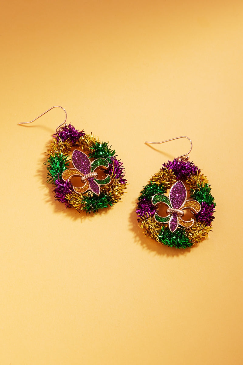 Expertly crafted with 2 inch teardrop shape, these Mardi Gras color earrings feature metallic thread and enamel for a dazzling look. Made with hypoallergenic titanium posts, they are perfect for those with sensitive ears. Elevate any outfit and make a statement with these stunning earrings.