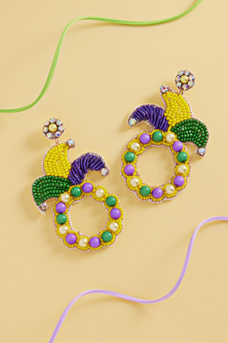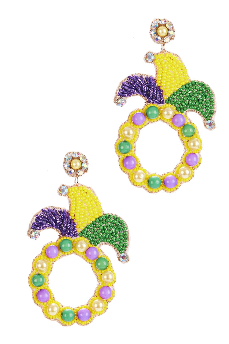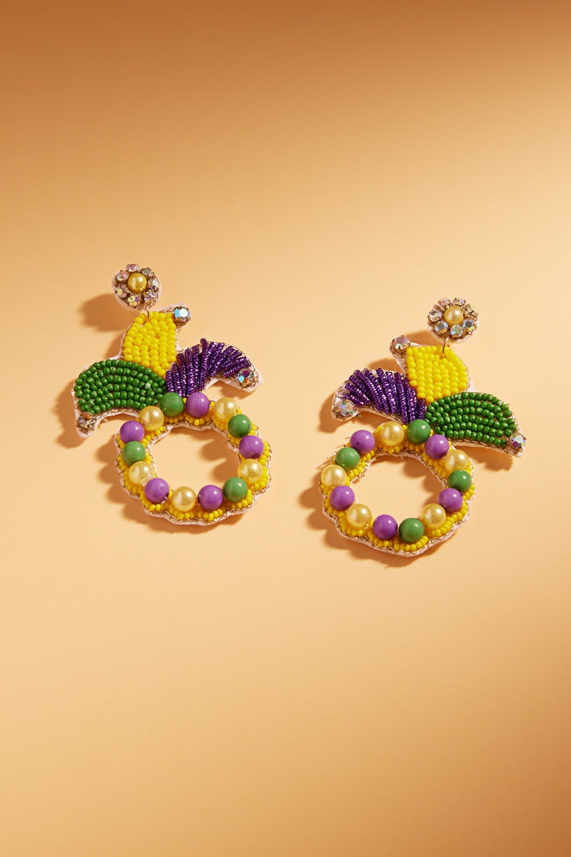 Mardi Gras Crown India Beads Post Earrings