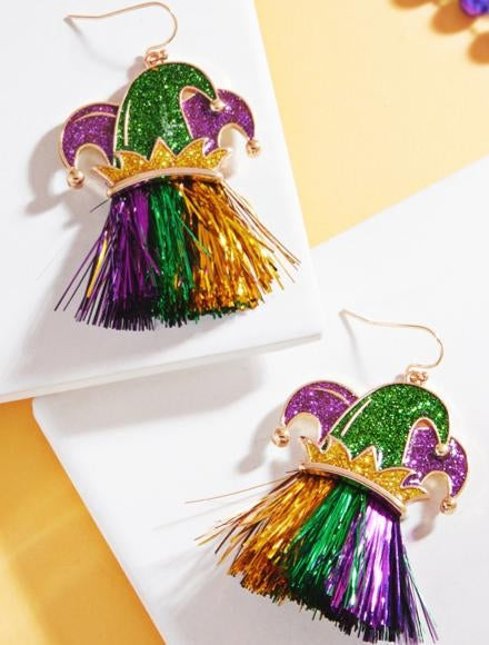 Mardi Gras Metalic Thread Tassel Hook Earrings