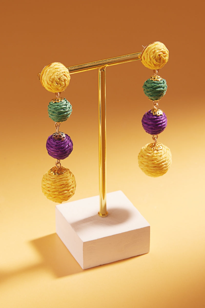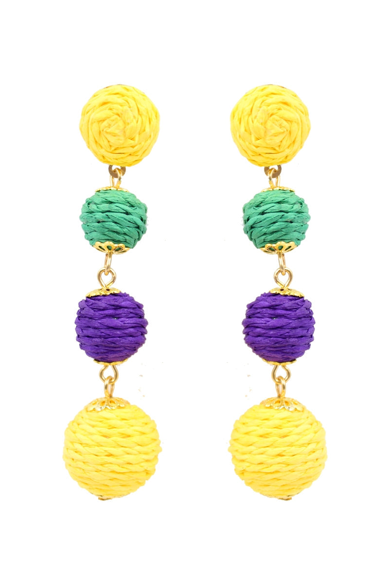Mardi Gras Multi Colored Raffia Post Earrings
