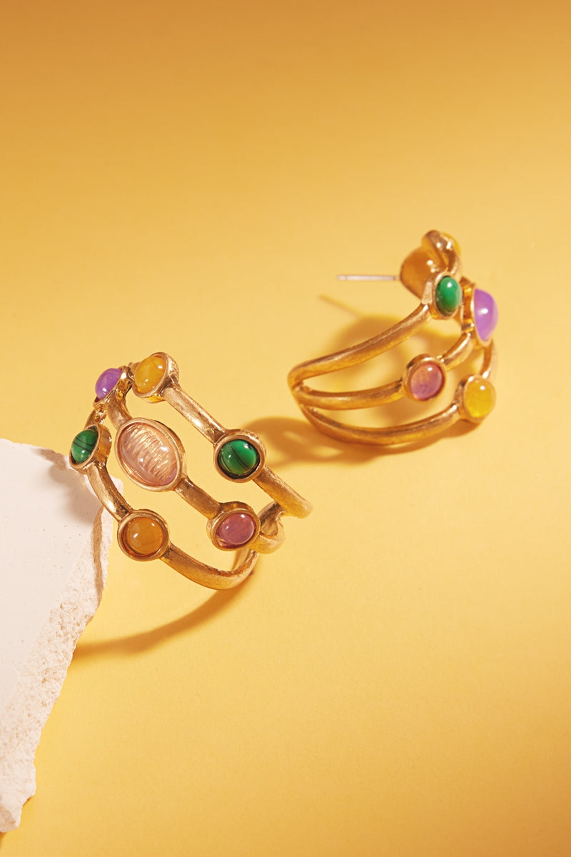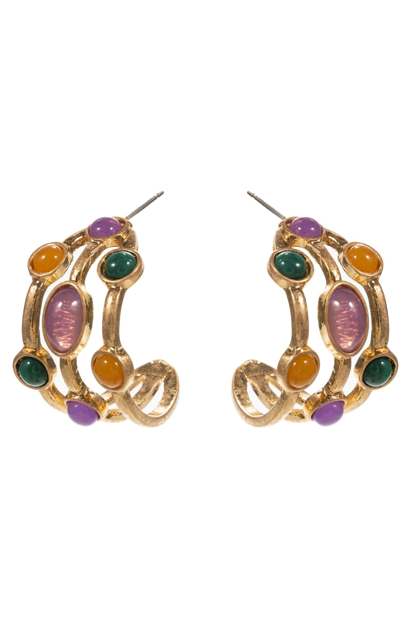 Mardi Gras Multi Vintage Faux Stone Hoop Earrings