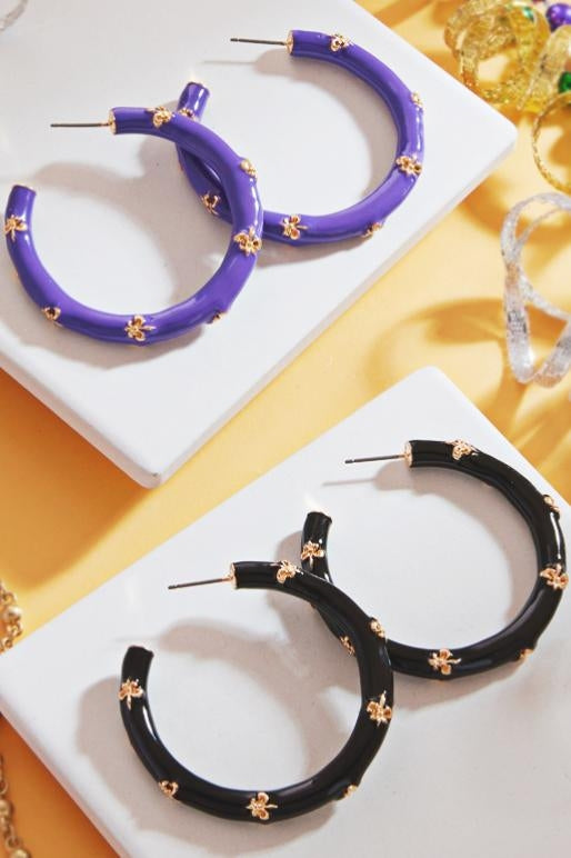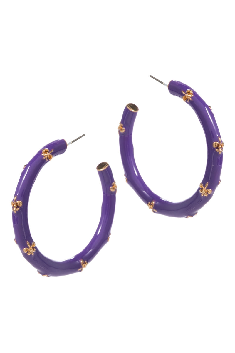 Mardi Gras Round Fleur De Lis Enamel Hoop Earrings