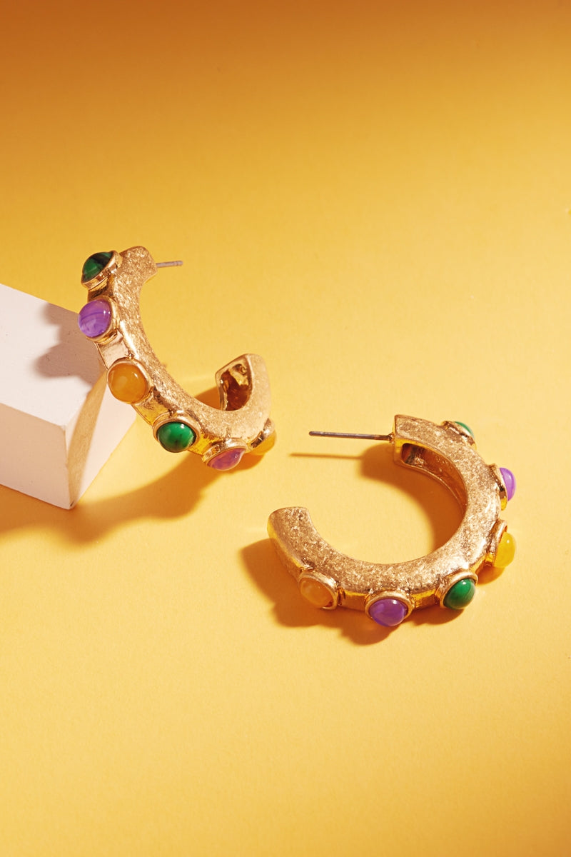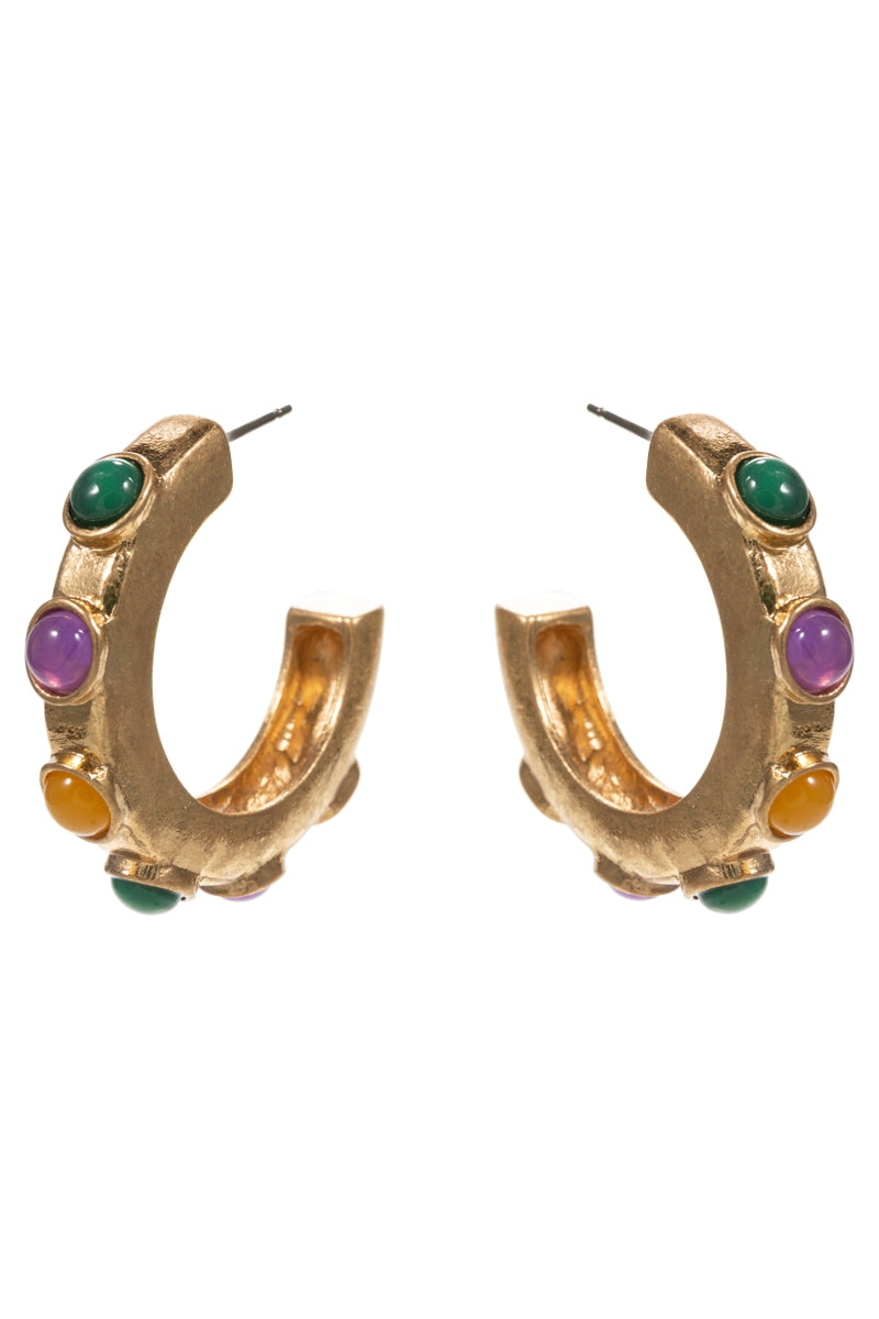 Mardi Gras Round Vintage Faux Stone Hoop Earrings