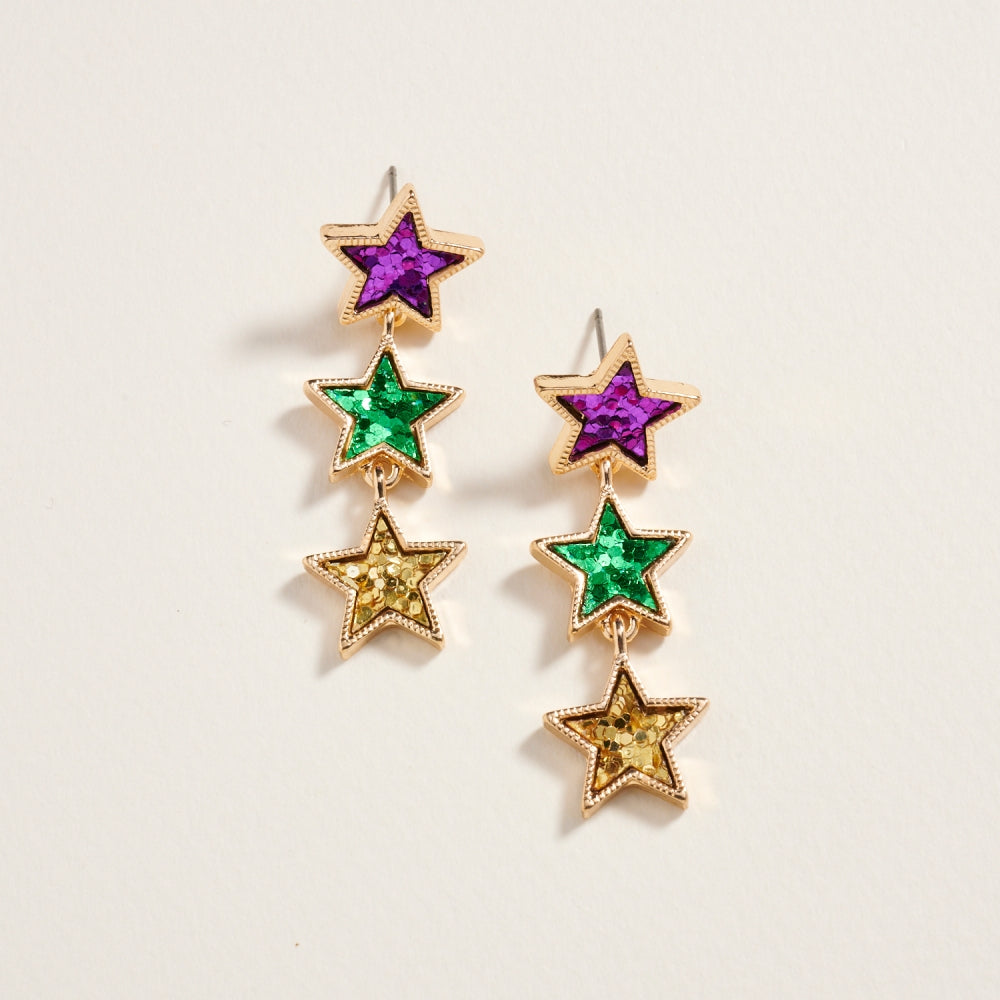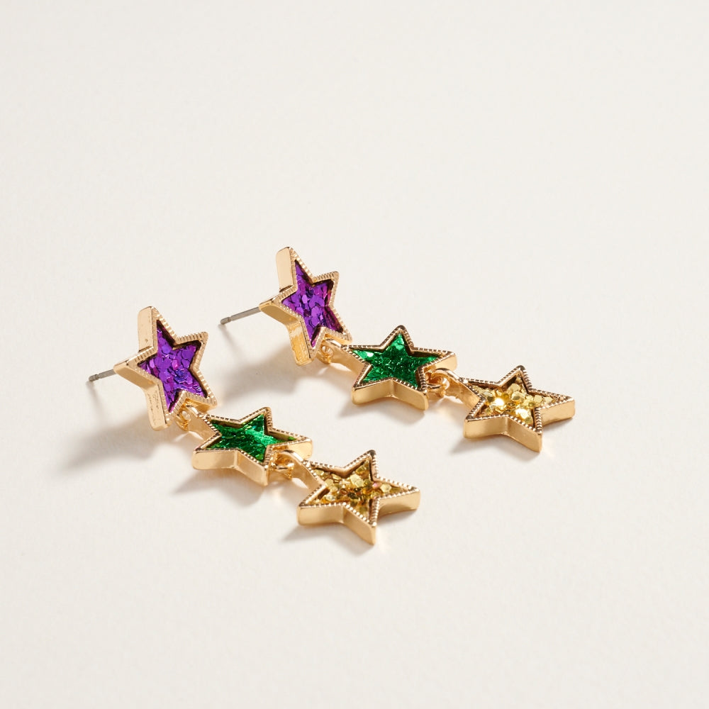 Mardi Gras Sequin Glitter Linked Star Post Earring