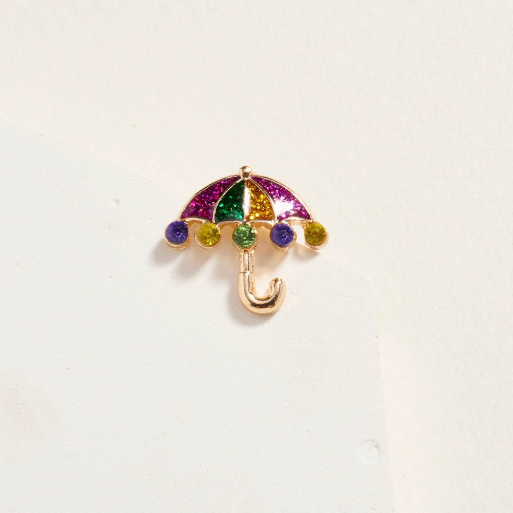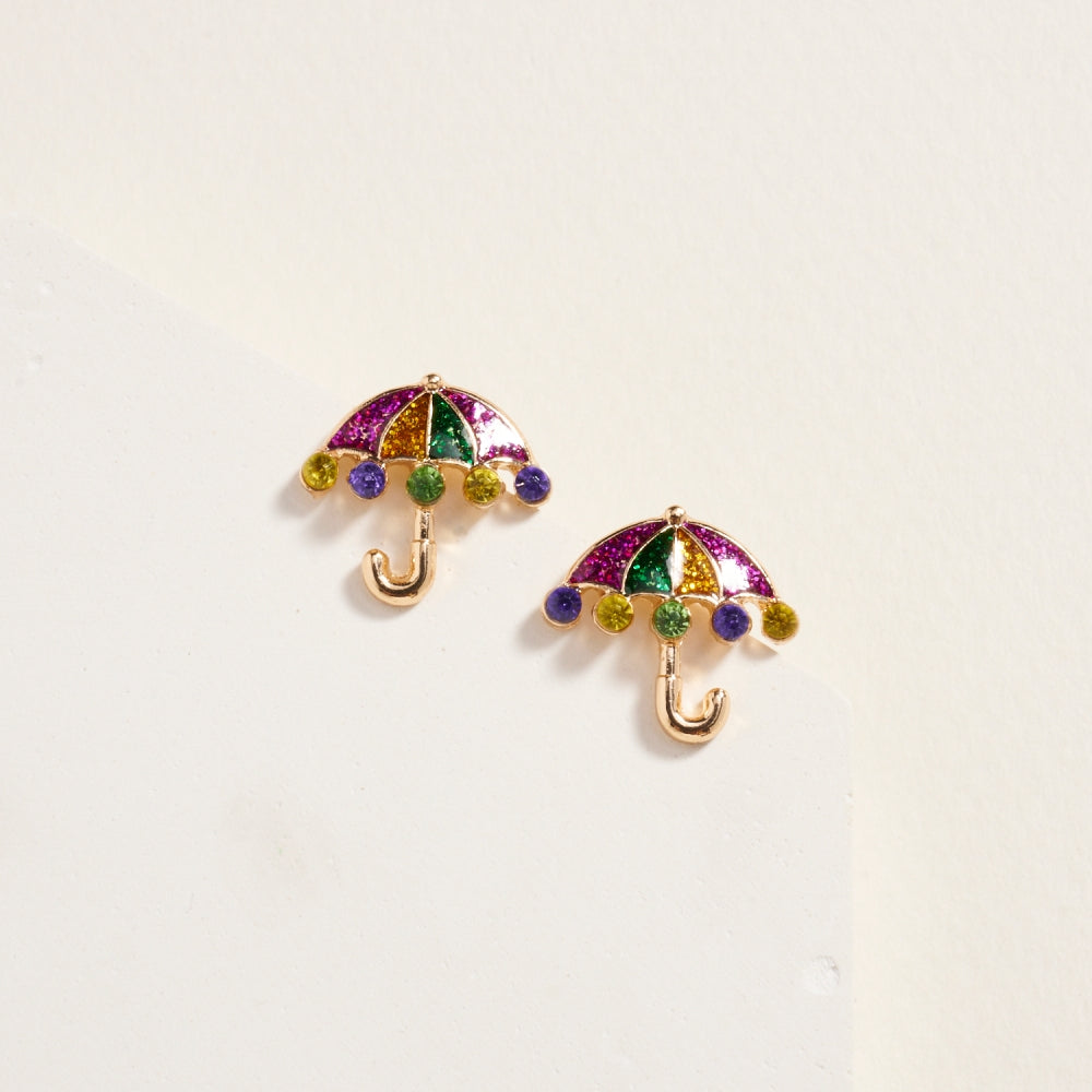 Add a pop of sparkle to your Mardi Gras look with our rhinestone umbrella post earrings. Featuring a vibrant multicolor design inspired by New Orleans flair, these earrings offer both charm and comfort for all-day wear.