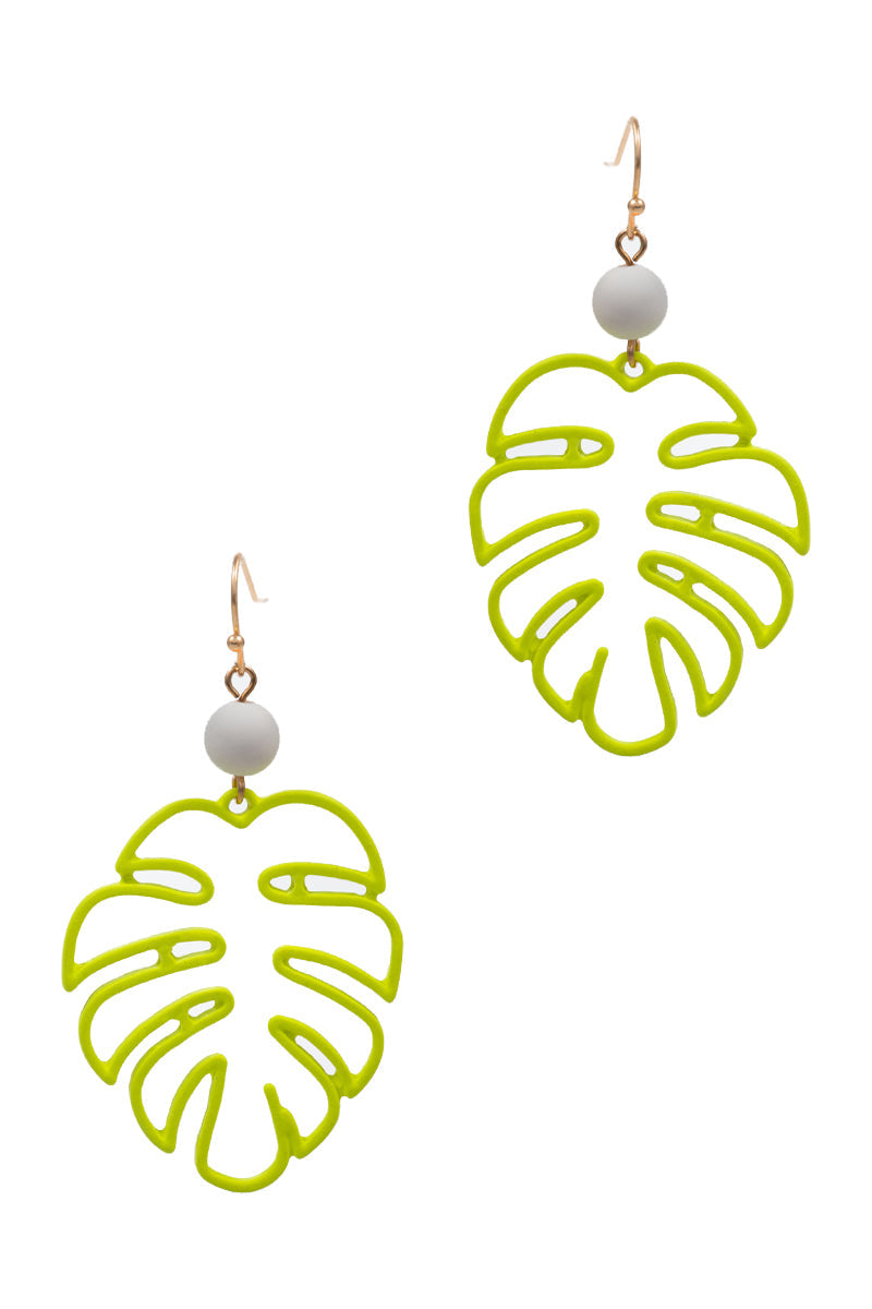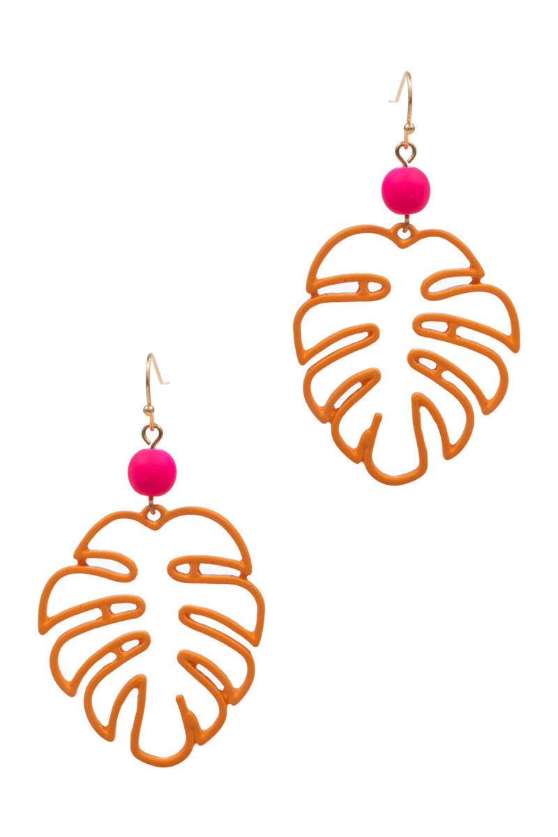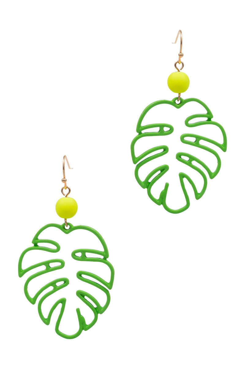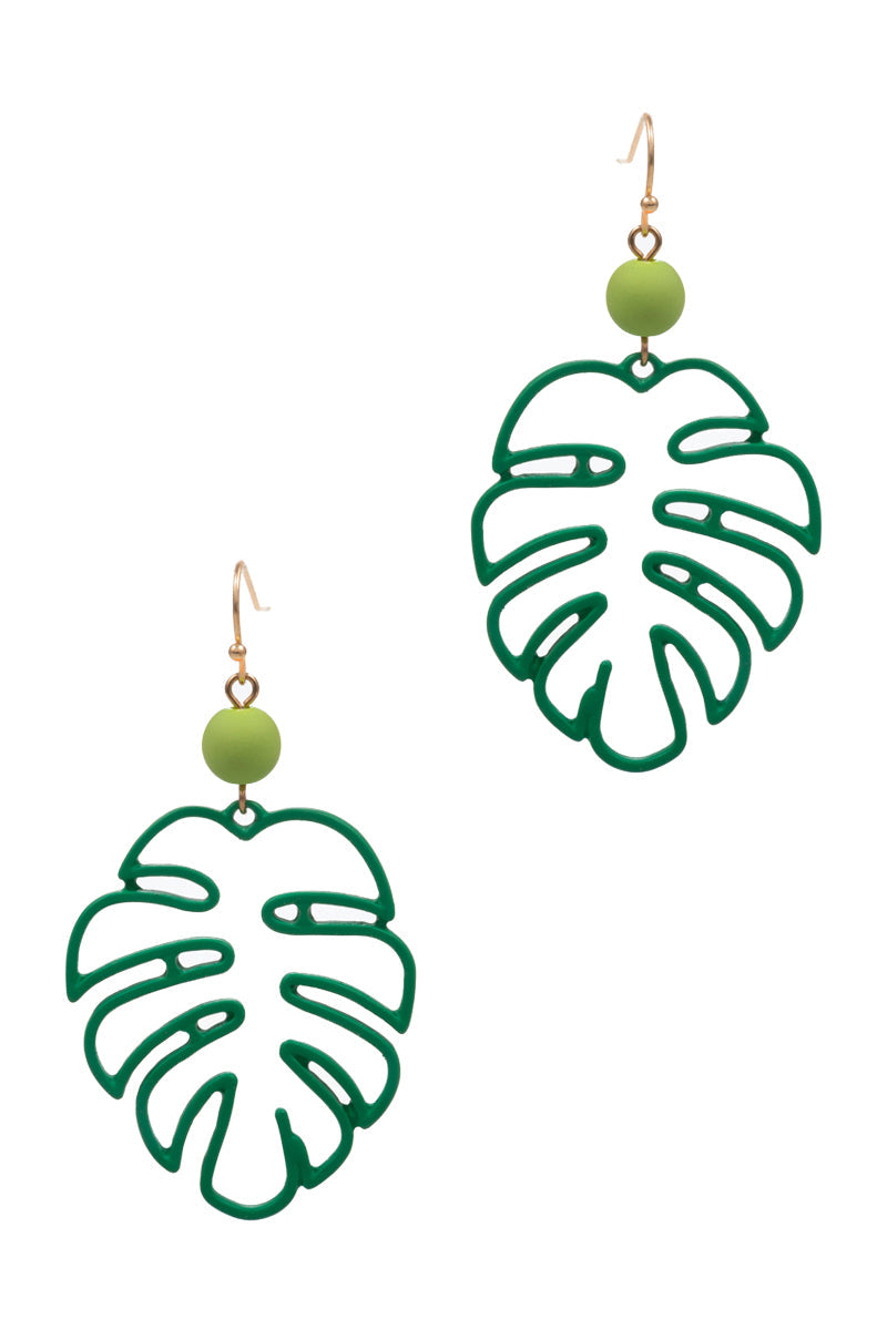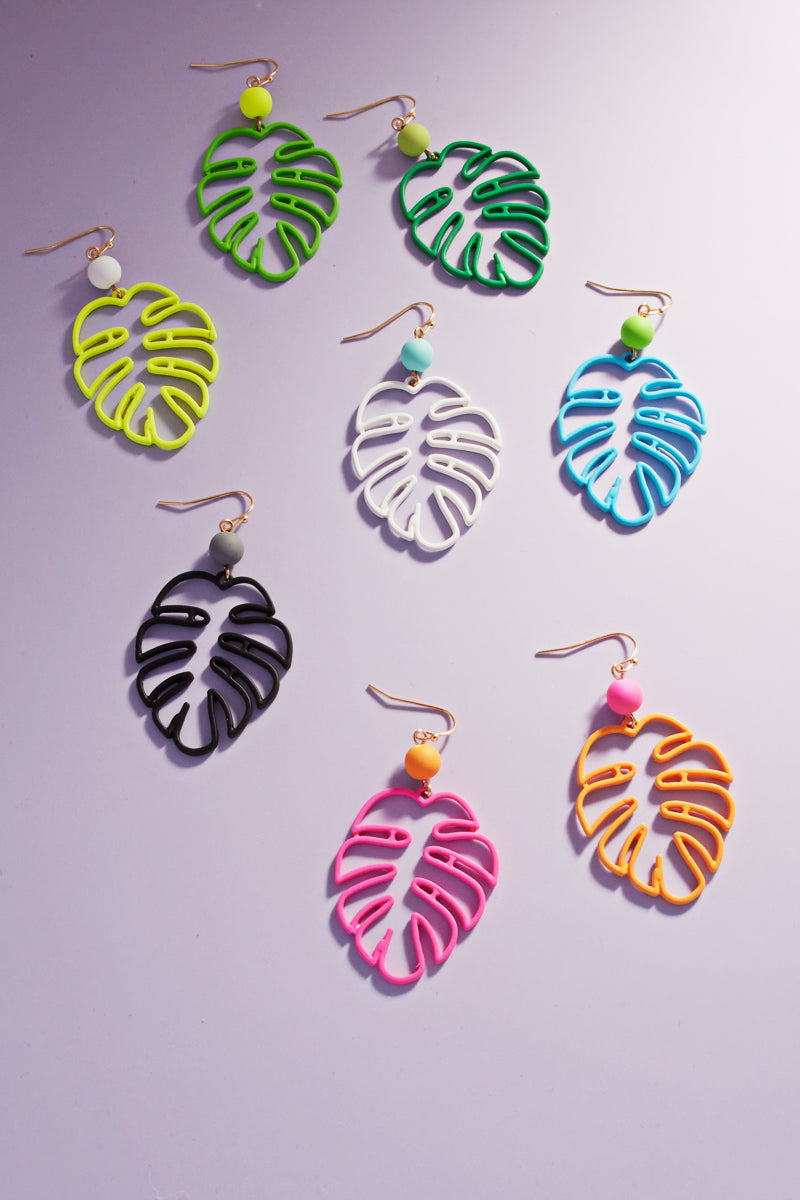 These earrings feature a 2.5-inch monstera leaf design with a color-coated ball hook, adding a touch of nature and style to your look. Expertly crafted with high quality materials, these earrings are a must-have for any fashionista.