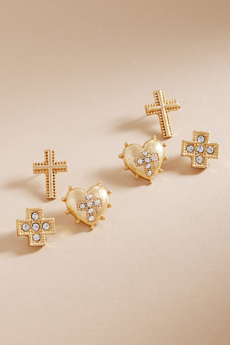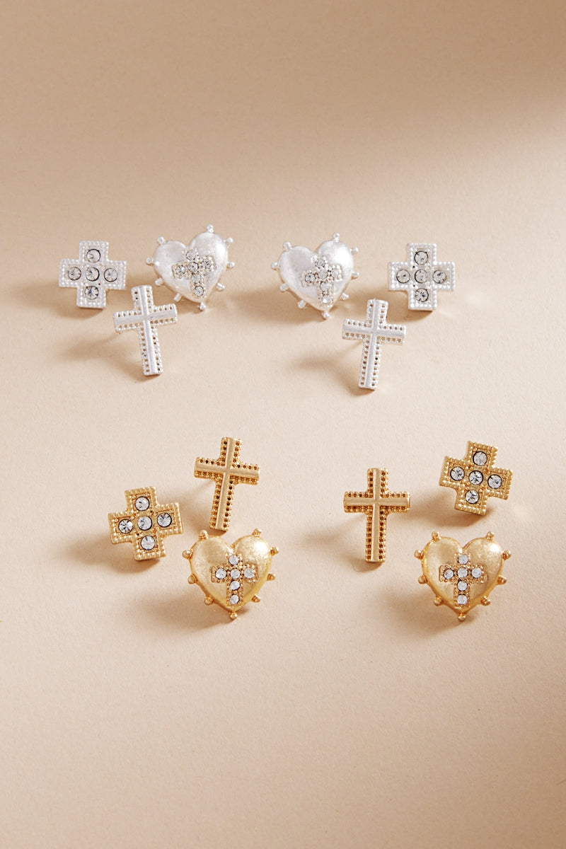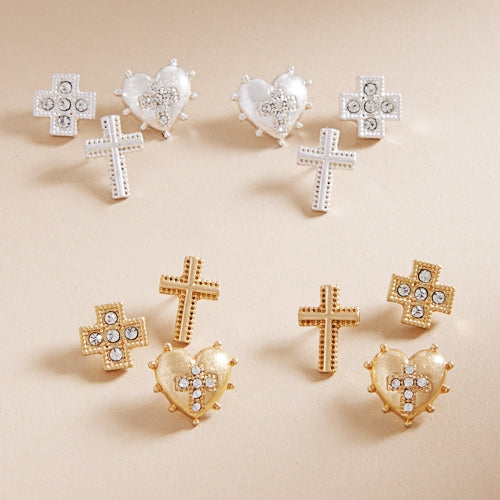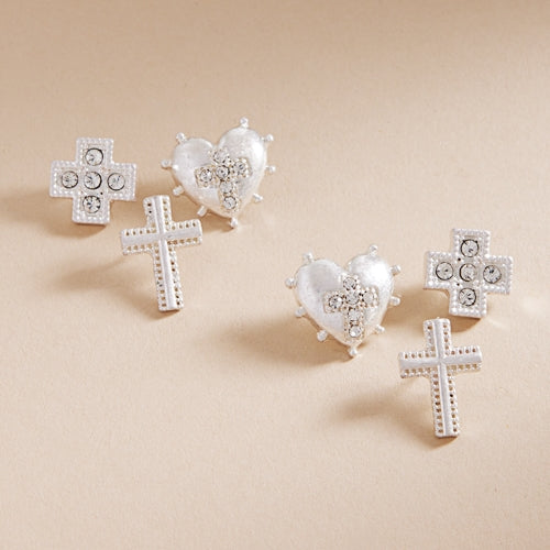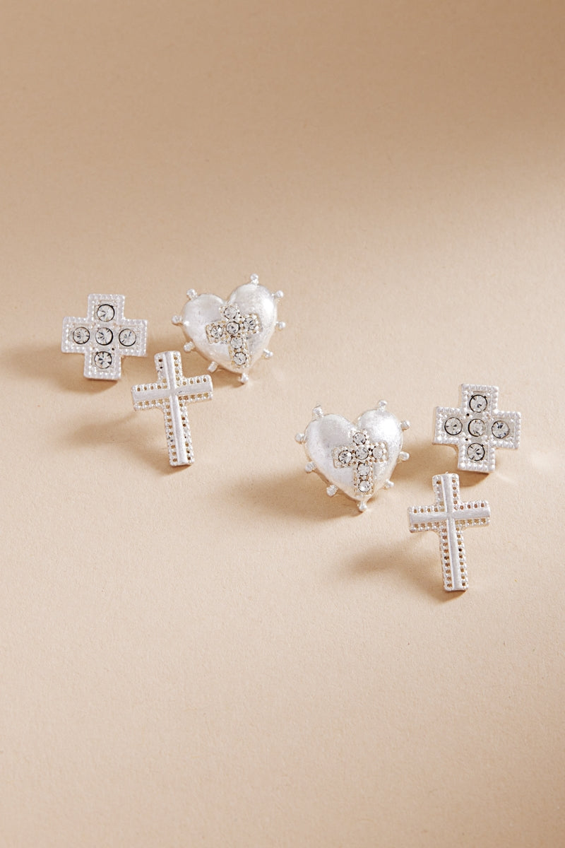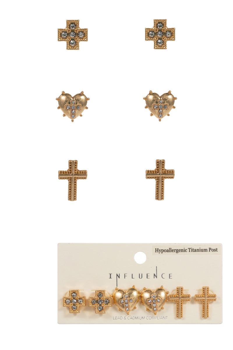 Multi Shaped Cross 3Set Titanium Post Earrings
