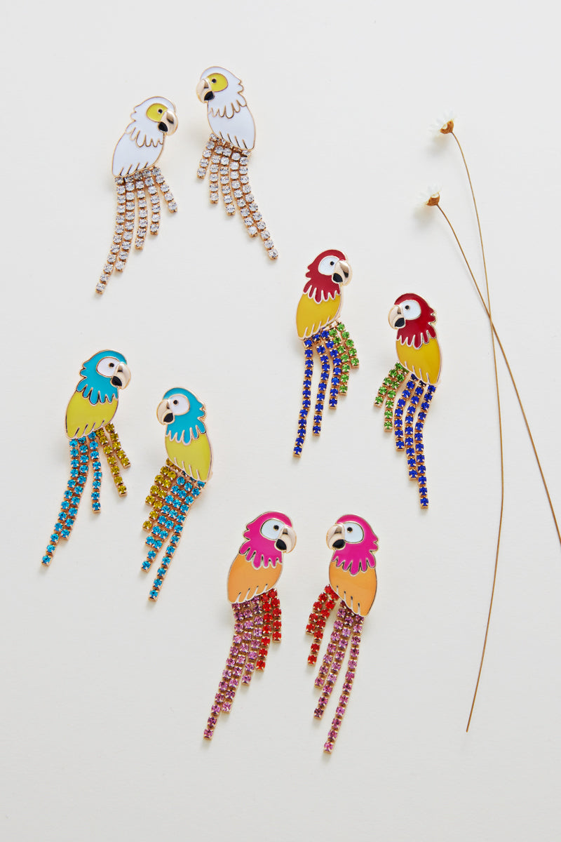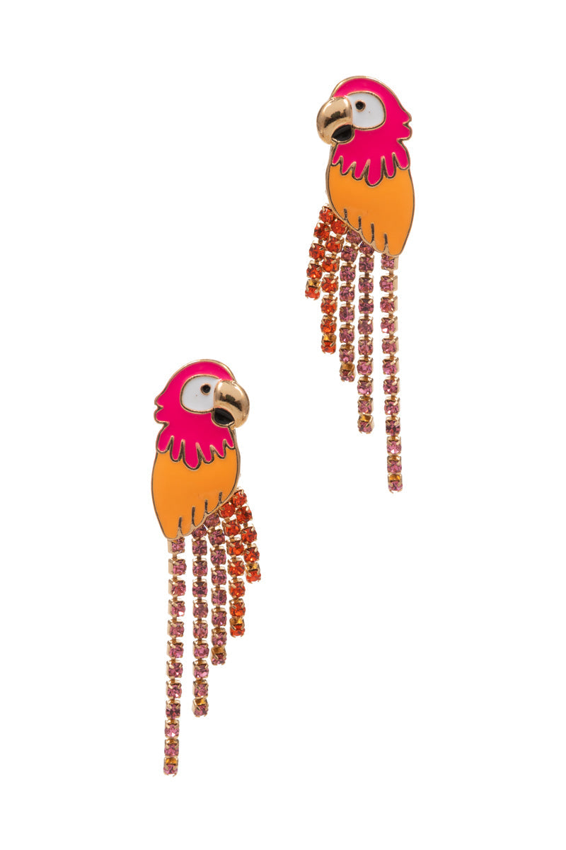 Parrot With Rhinestone Wing Summer Post Earrings